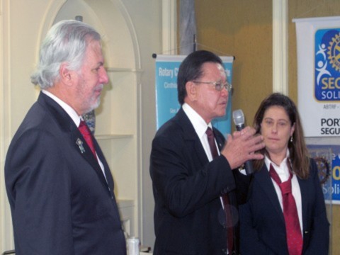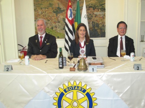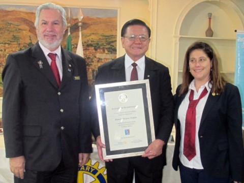 A presidente do RCSP-Sudeste, Cinthia Corrêa da Costa Machado acompanhada do Governador do D-4420 José Joaquim do Amaral Ferreira, em nome de todos os companheiros do clube, entregaram ao companheiro Oswaldo K. Takata um certificado de reconhecimento pela significativa doação à Fundação Rotária.