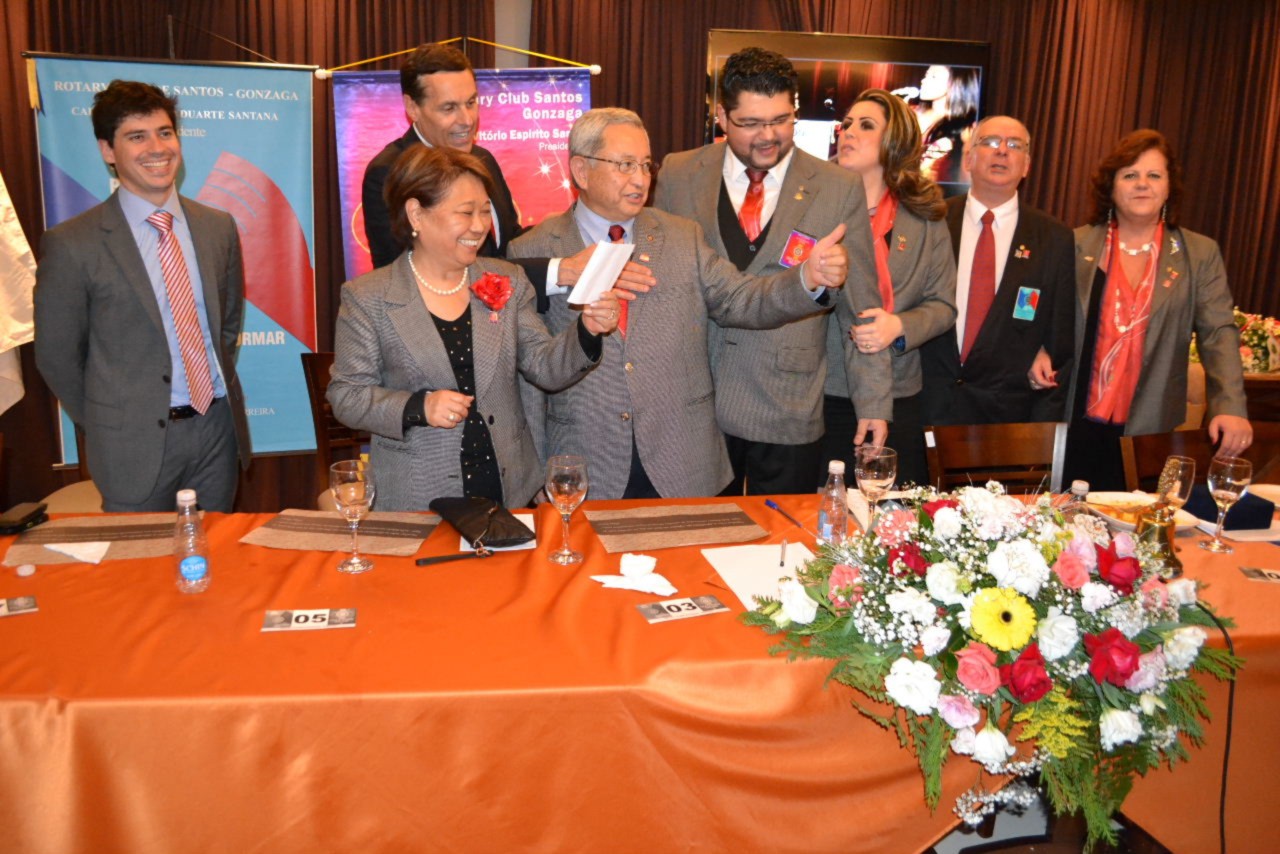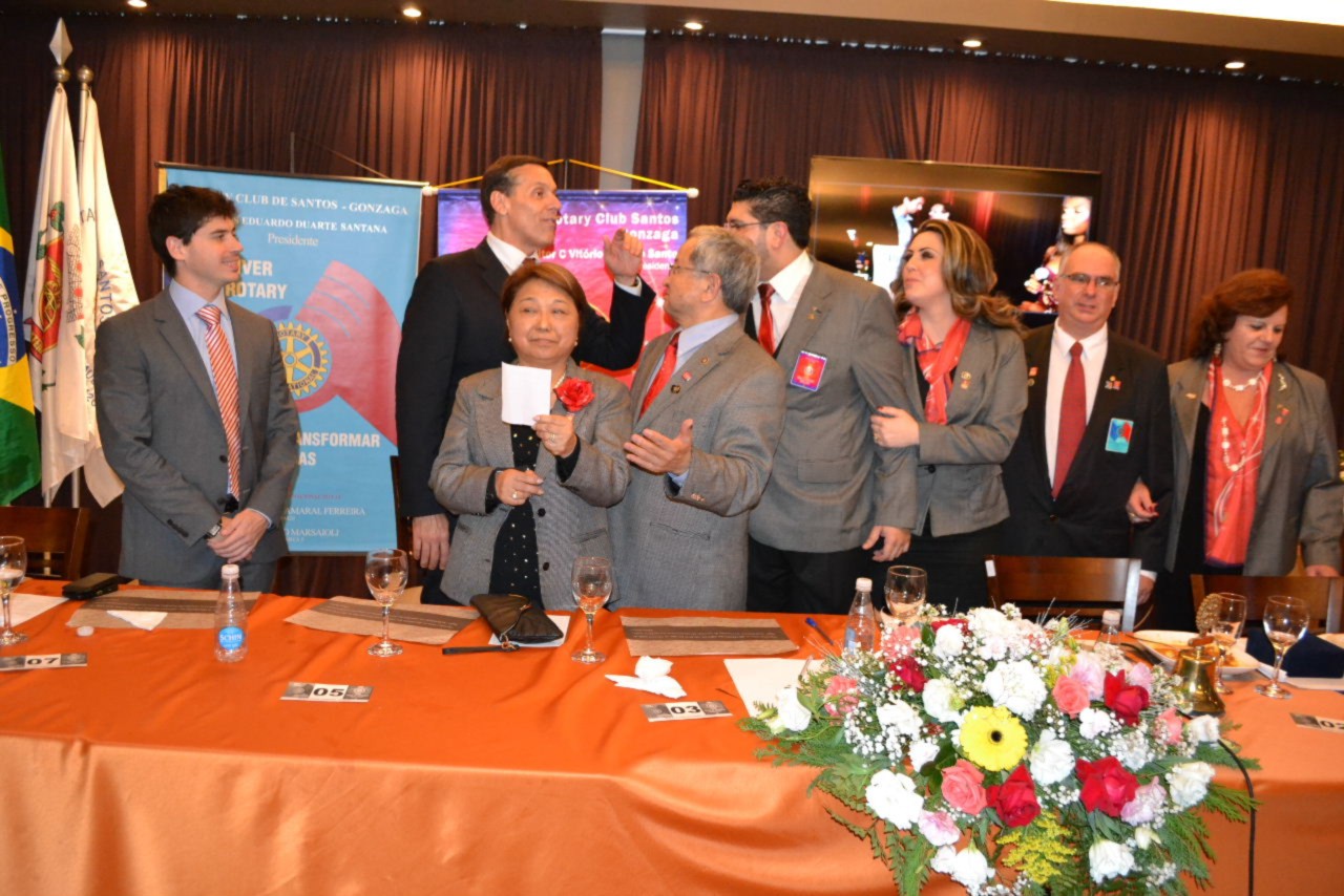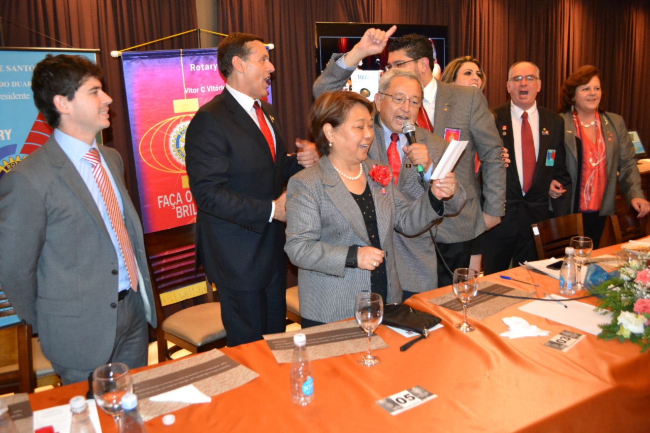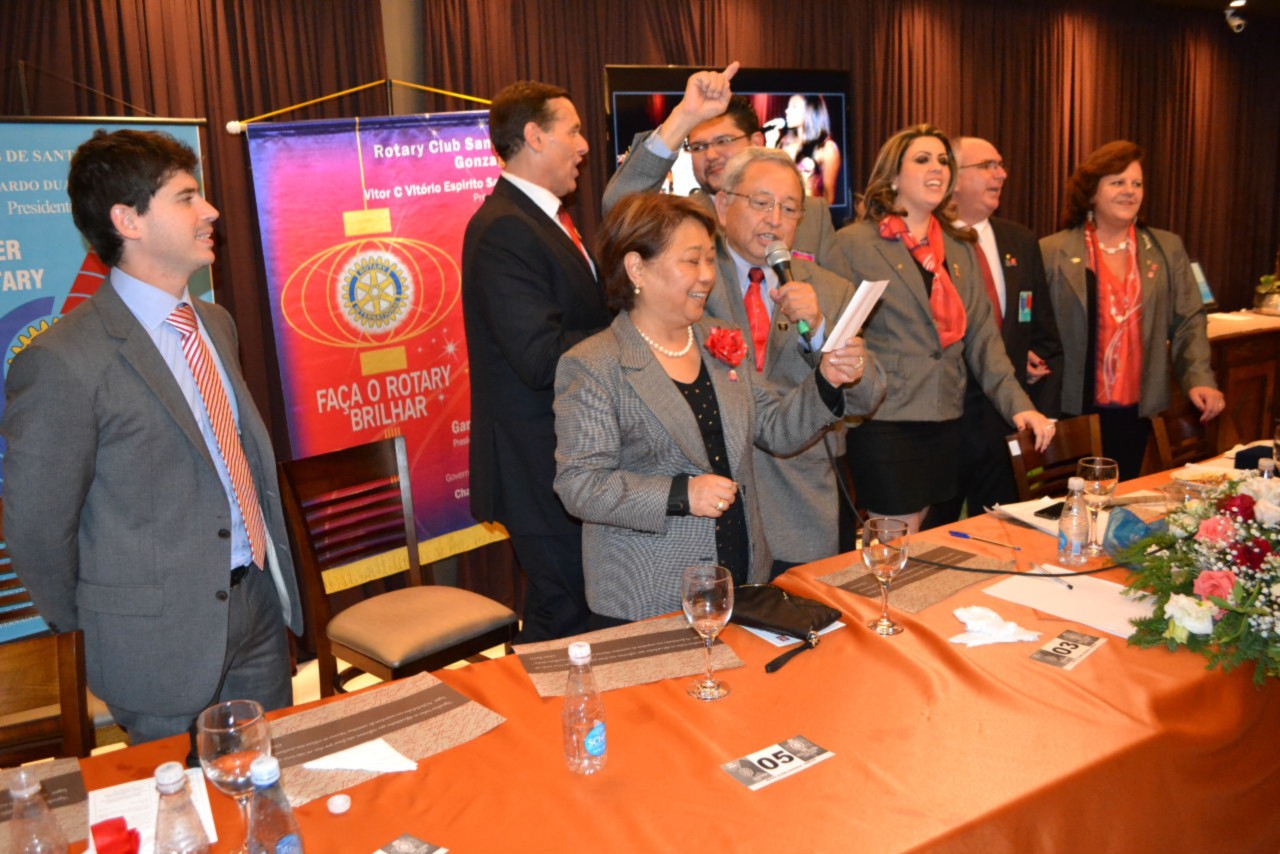 Com muita alegria, o governador Hiroshi Shimuta saudou os 160 convidados que prestigiaram mais uma posse Brilhante, algo que para a governadoria é fantástico e motivo de orgulho para o distrito. A posse de novos sócios sempre nos faz lembrar o quanto nossa organização é maravilhosa e grandiosa, nos inspirando a viver Rotary e fazê-lo brilhar junto aos companheiros, disse o governador. Parabenizando o presidente eleito e seu novo conselho, Suma Imura Shimuta, esposa do governador, também deixou sua mensagem, incentivando todos os rotarianos a desfrutarem desse momento com muita alegria e entusiasmo, visando mudar a vida de muitas pessoas.