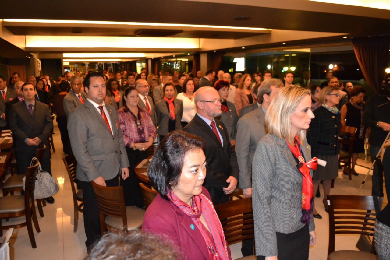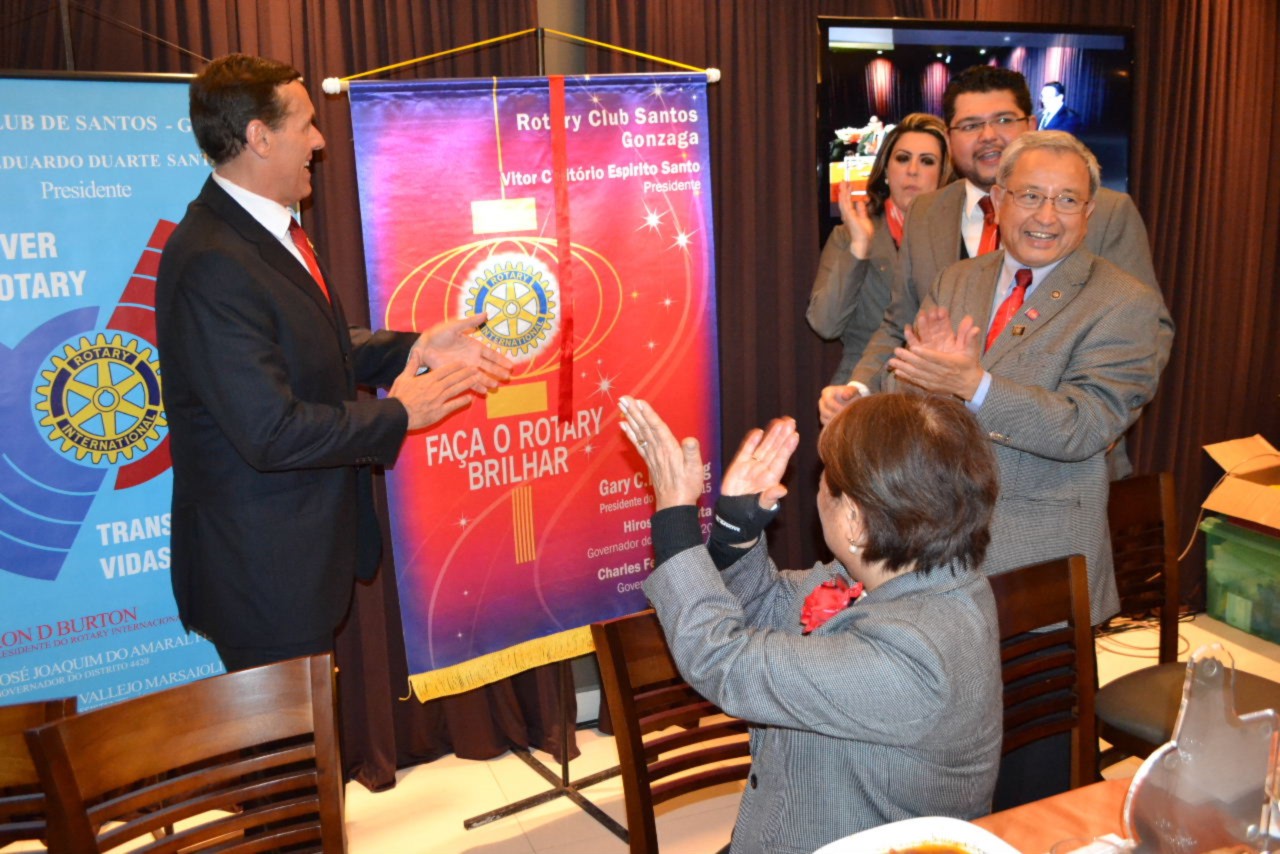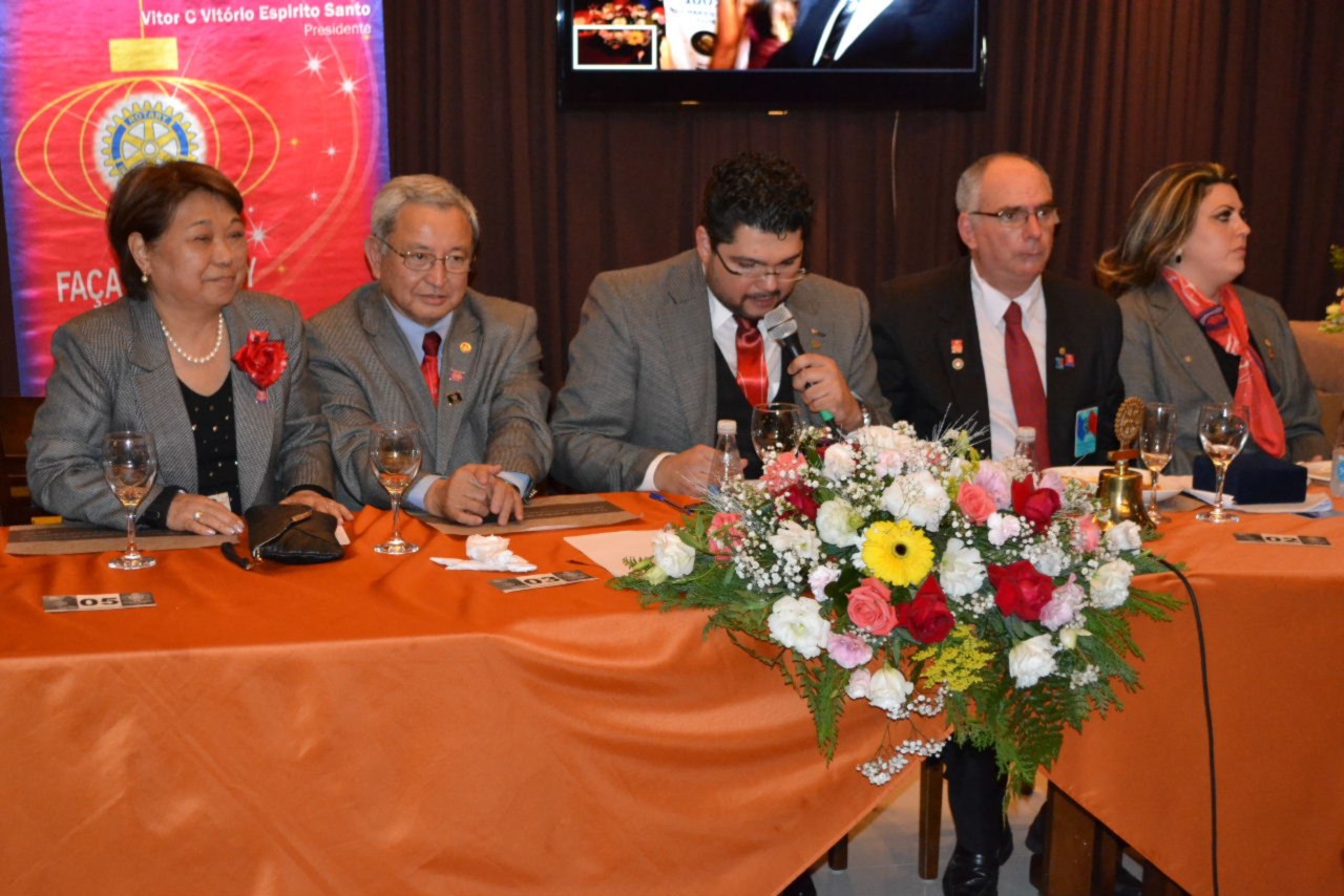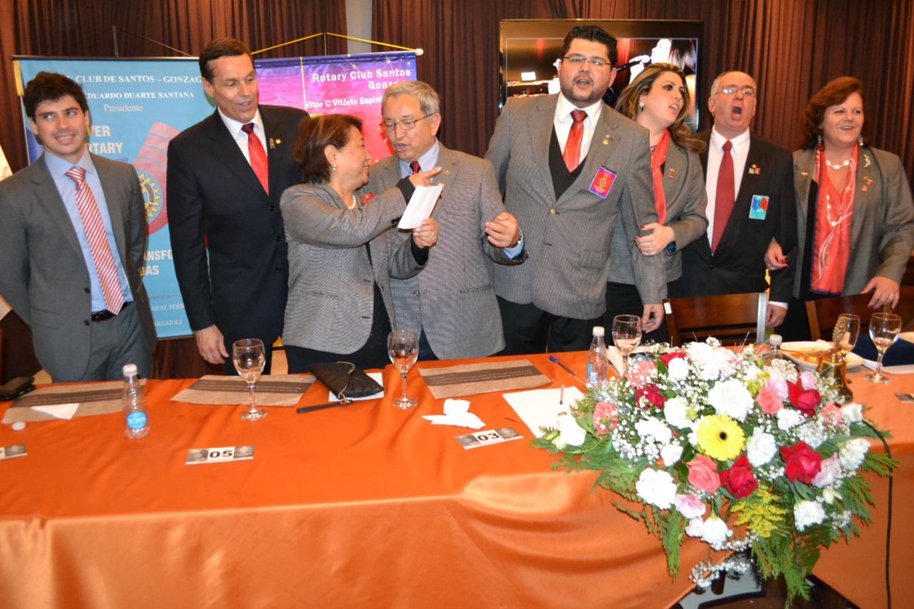 Com muita alegria, o governador Hiroshi Shimuta saudou os 160 convidados que prestigiaram mais uma posse Brilhante, algo que para a governadoria é fantástico e motivo de orgulho para o distrito. A posse de novos sócios sempre nos faz lembrar o quanto nossa organização é maravilhosa e grandiosa, nos inspirando a viver Rotary e fazê-lo brilhar junto aos companheiros, disse o governador. Parabenizando o presidente eleito e seu novo conselho, Suma Imura Shimuta, esposa do governador, também deixou sua mensagem, incentivando todos os rotarianos a desfrutarem desse momento com muita alegria e entusiasmo, visando mudar a vida de muitas pessoas.