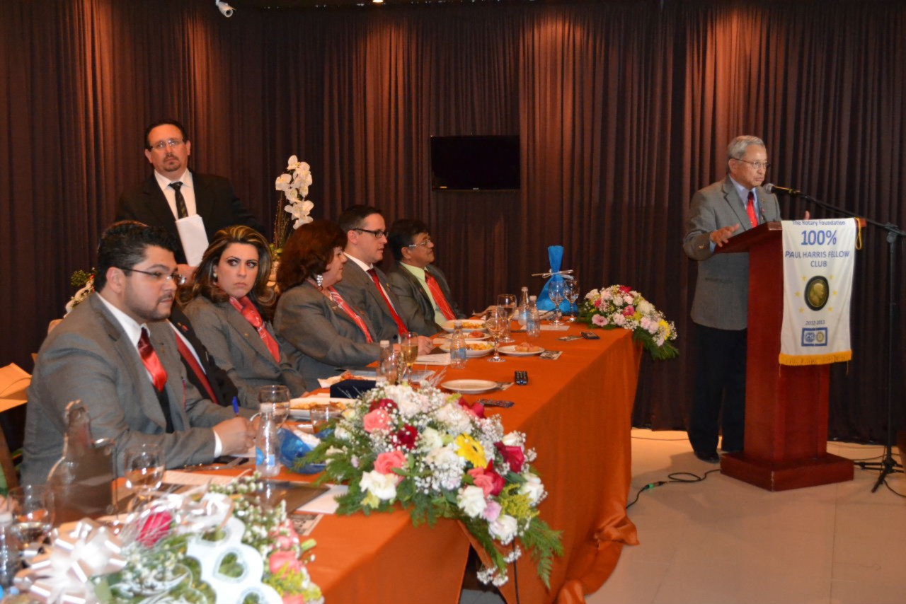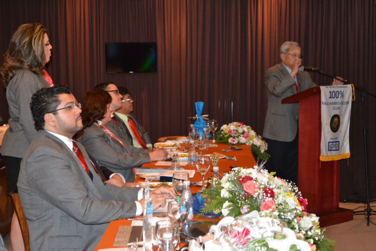 O presidente Cadu, fez seu pronunciamento agradecendo o apoio dos companheiros do clube e a presença das autoridades civis e rotárias. Fez questão de mencionar o apoio recebido pelo casal governador Transformador Joaquim Ferreira e Célia, que o incentivaram a continuar trabalhando nos projetos permanentes do clube e deram o aval favorável à indicação do presidente Brilhante Vitor Carlos.