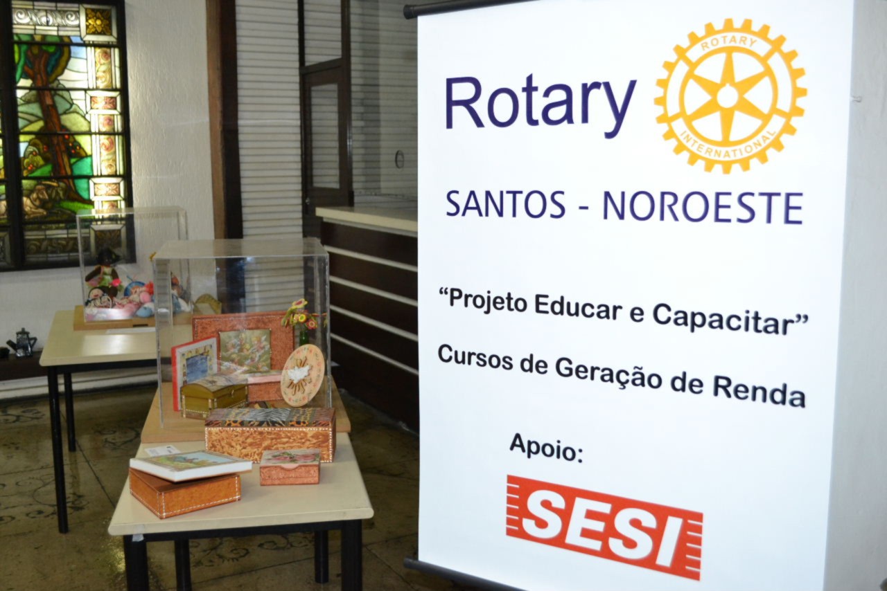 Os rotarianos do clube também atuam em parceria com o SESI de Santos-SP, onde realizam o Programa Ensinar a Capacitar, ação que promove cursos de geração de renda para as mulheres da Zona Noroeste, que aprendem técnicas de pintura em tecido, artesanato, cerâmica, entre outros tipos de arte.