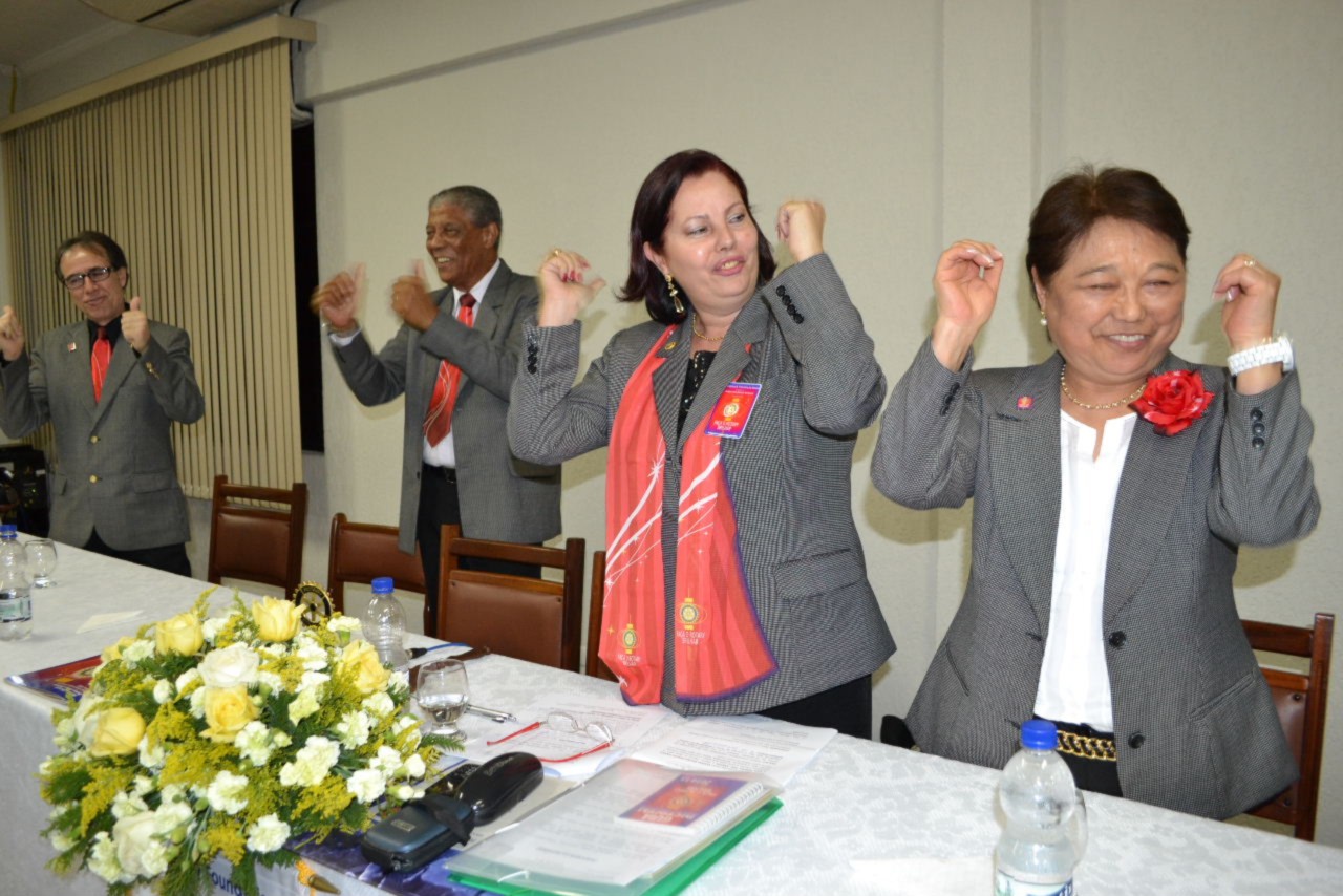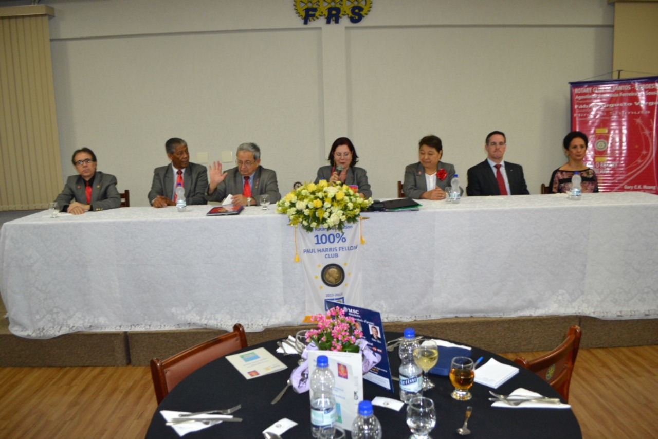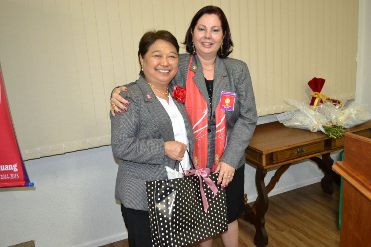 A presidente Agostinha e seus companheiros participaram da assembléia e se integraram aos demais convidados, na festiva que teve como destaque a posse de duas novas sócias, apresentadas pela presidente brilhante. As novas companheiras Sandra Regina P. Ramos e Elza Pereira dos Santos, foram recebidas pelo governador Shimuta.