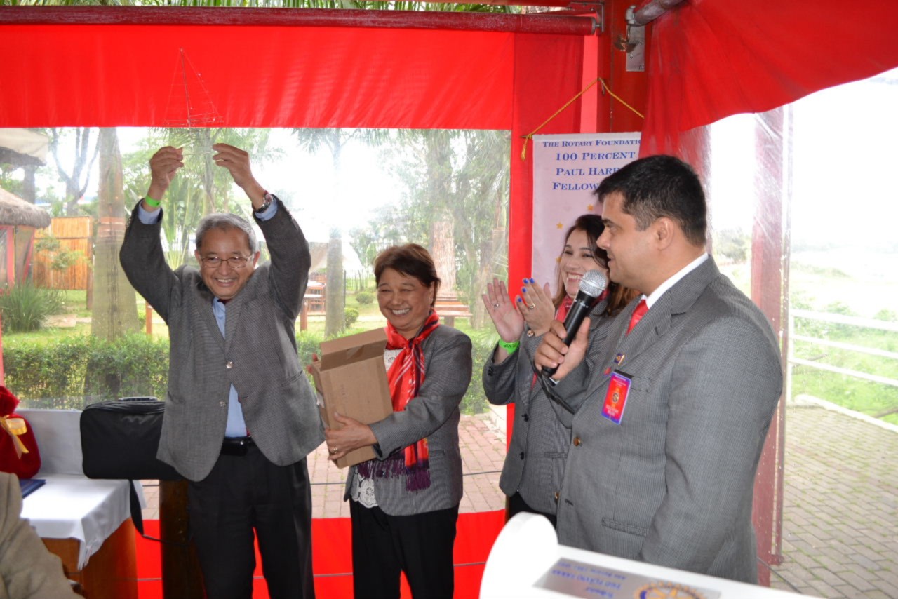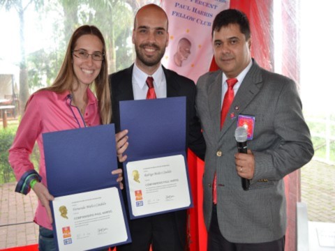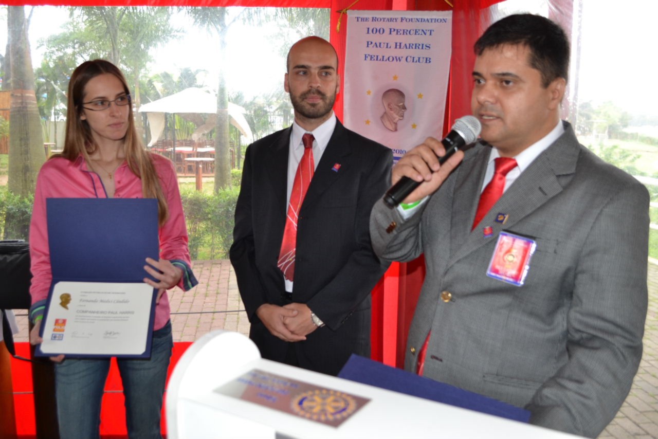 A jovem Fernanda Médici Cândido recebeu das mãos do irmão, Rodrigo Médici, uma comenda muito importante para o Rotary, que é o Título Paul Harris, por conta da doação de mil dólares para a Fundação Rotária. O presidente Gilberto também outorgou o título para Rodrigo, que é companheiro do clube e também fez a doação que lhe permitiu o reconhecimento rotário.