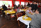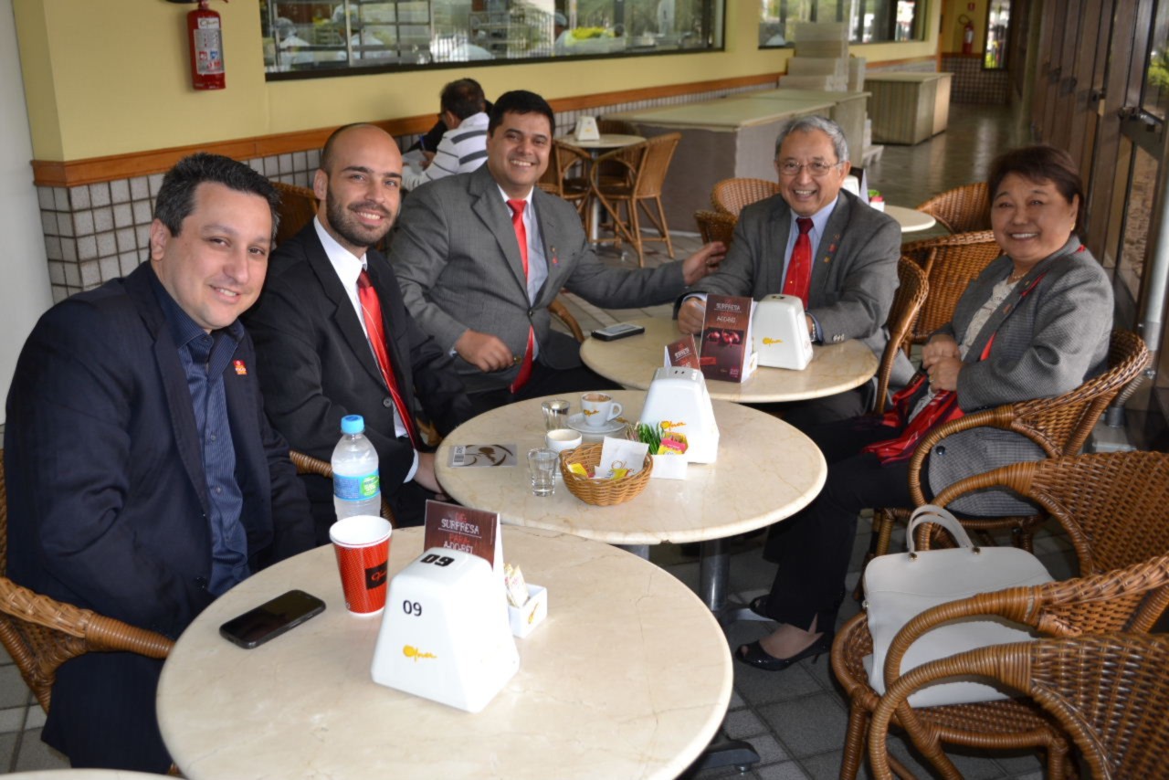 O ponto de encontro foi na Doceria Ofner, onde a comitiva de rotarianos do clube recepcionou o casal e juntos, tomaram café, já explanando sobre o projeto a ser visitado e algumas ações do clube.