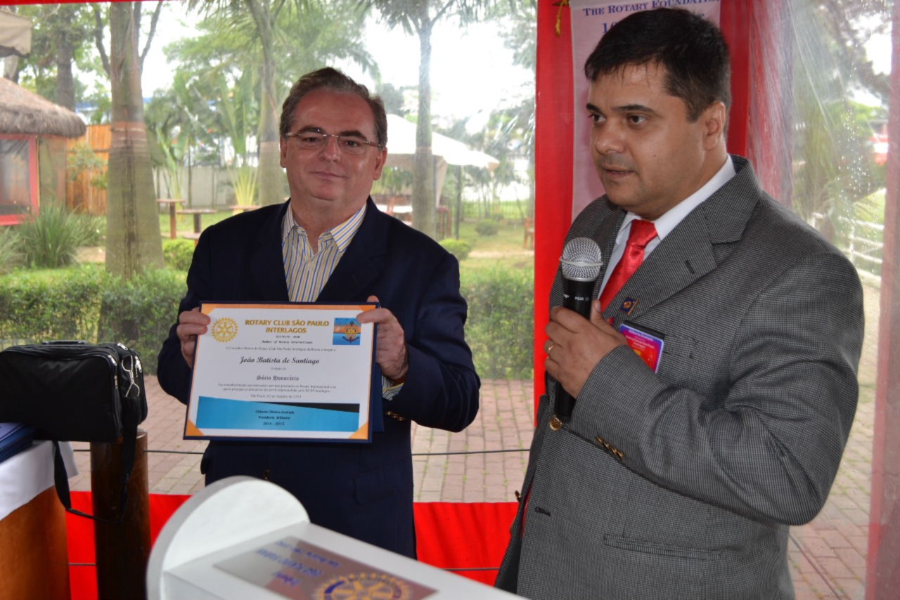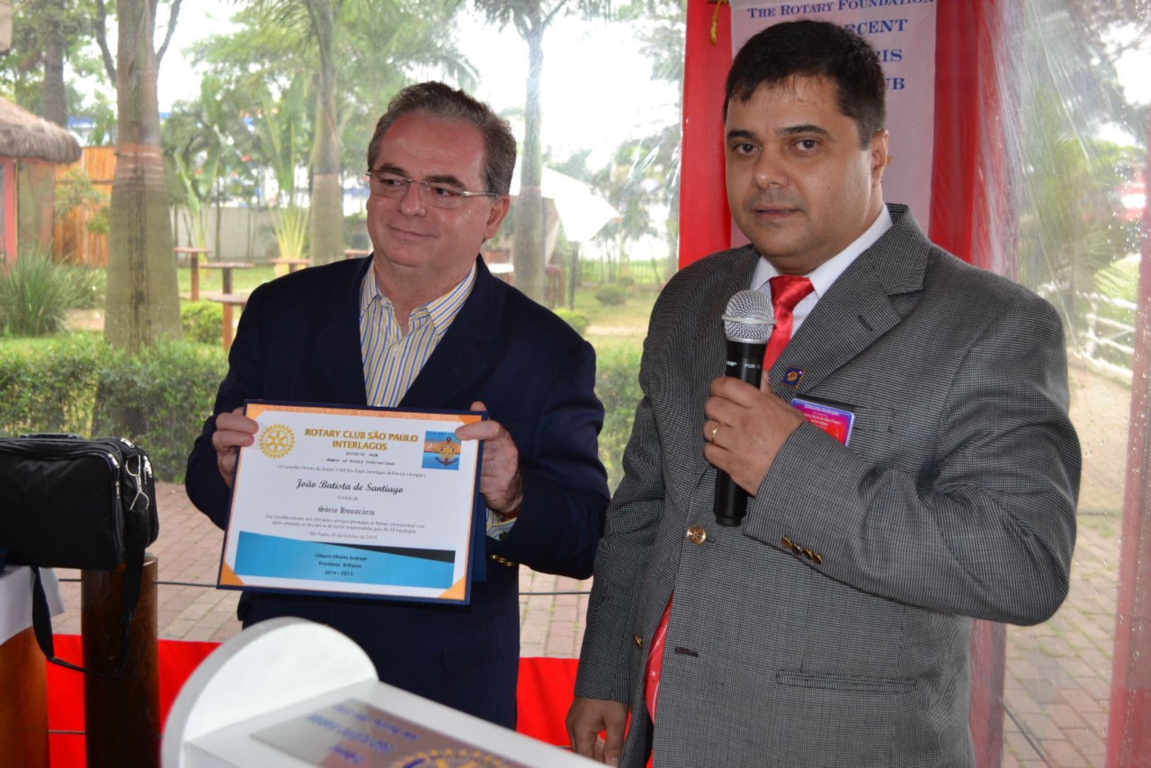 Já na festiva, realizada no Restaurante Golden Grill, o grande homenageado foi João Batista de Santiago, empresário da região, que atua muito dentro da comunidade e por esse motivo foi reconhecido pelo presidente Gilberto e demais companheiros do clube, como novo Sócio Honorário do clube.