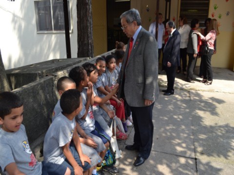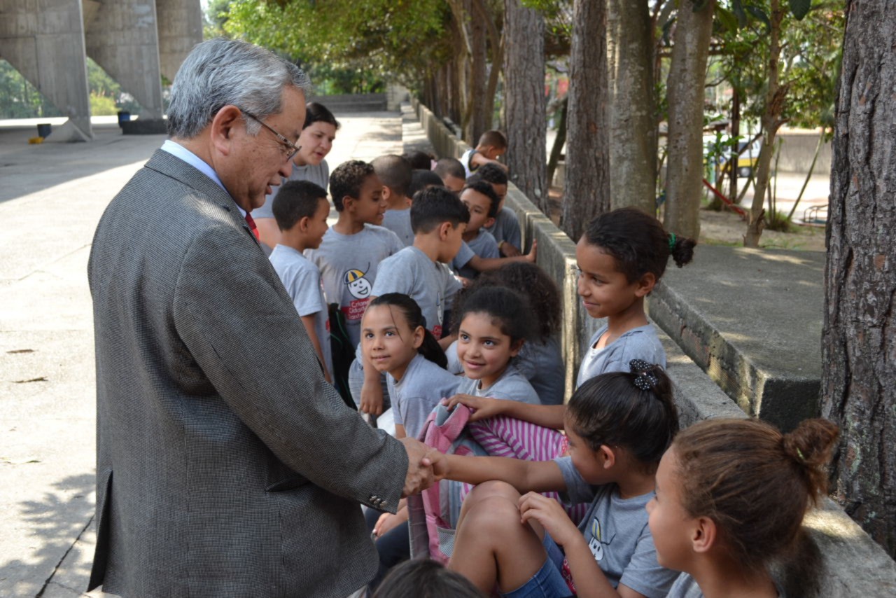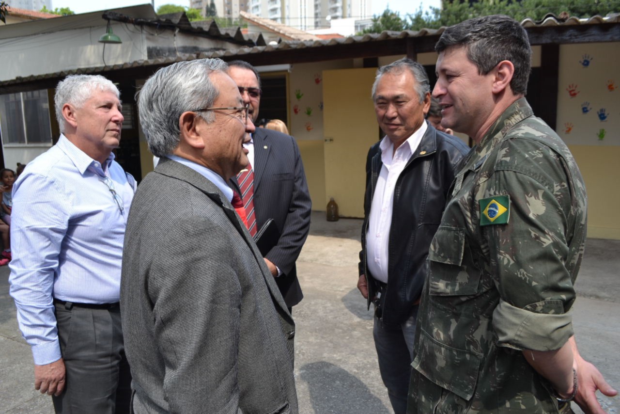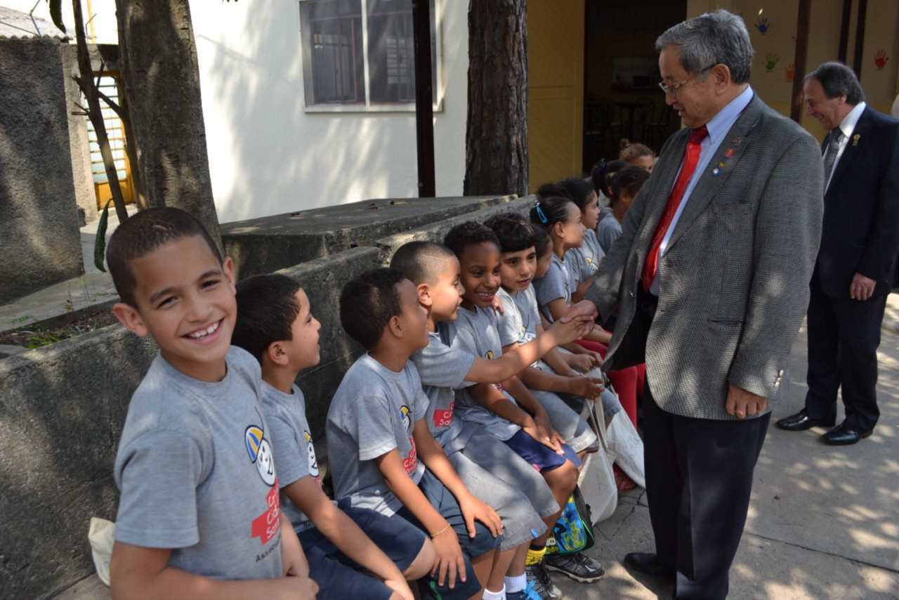 Também visitaram a E.E D. Celso da Gama - CAMP Piero Pollone - Unidade II, na Vila Assunção, onde há uma extensão de atividades do CAMP. No local, os companheiros tiveram contato com os alunos e o governador Shimuta deixou sua mensagem de incentivo aos jovens, contando relatos de sua trajetória vitoriosa, momento esse que o emocionou, ao falar um pouco de sua infância humilde.