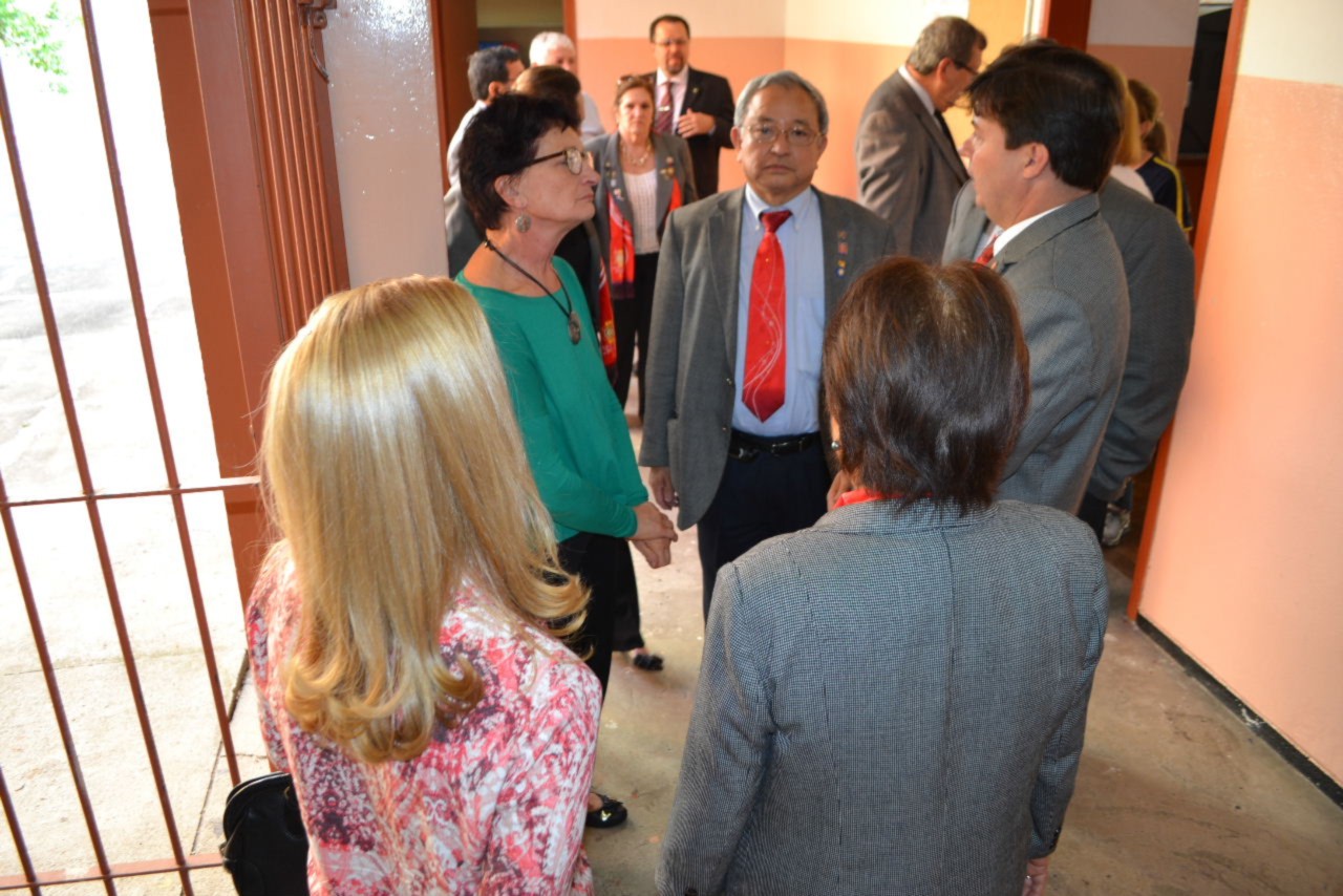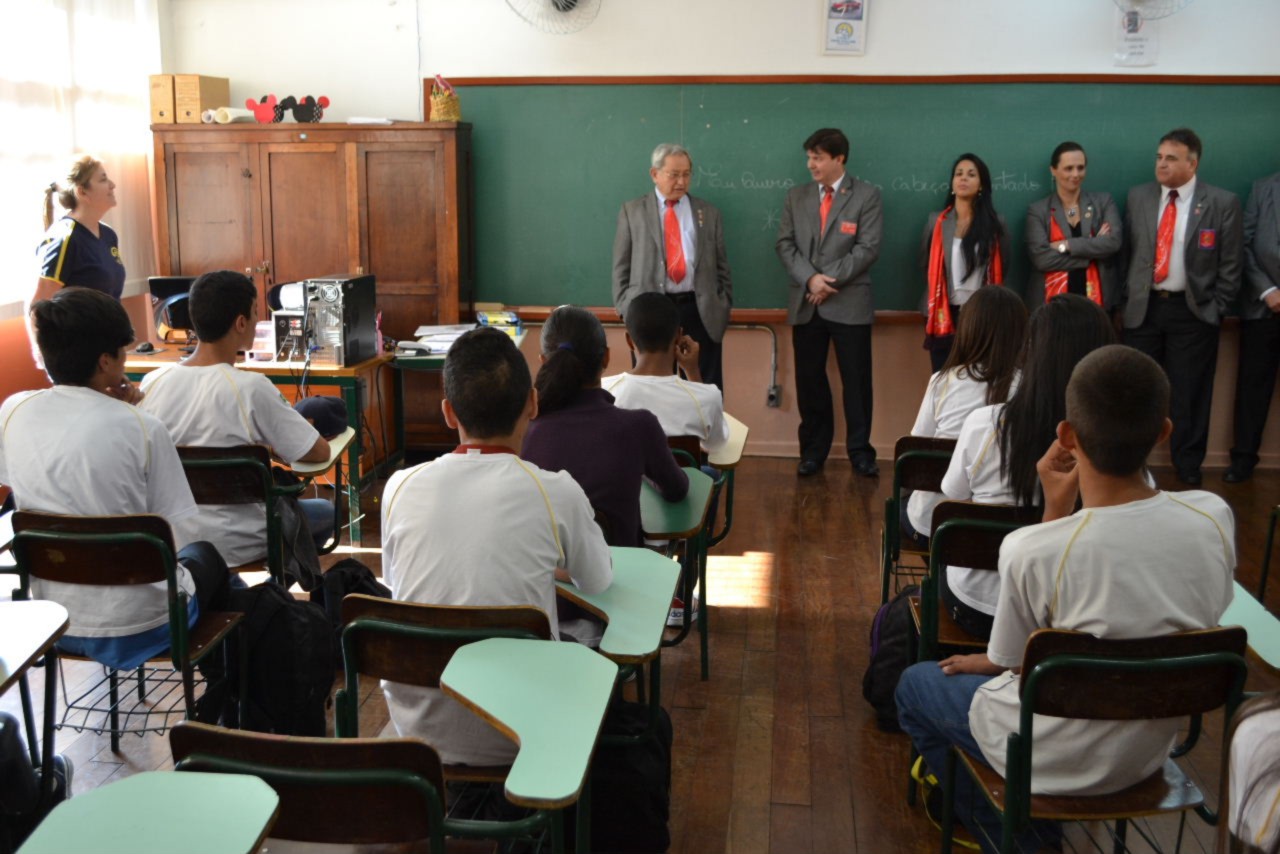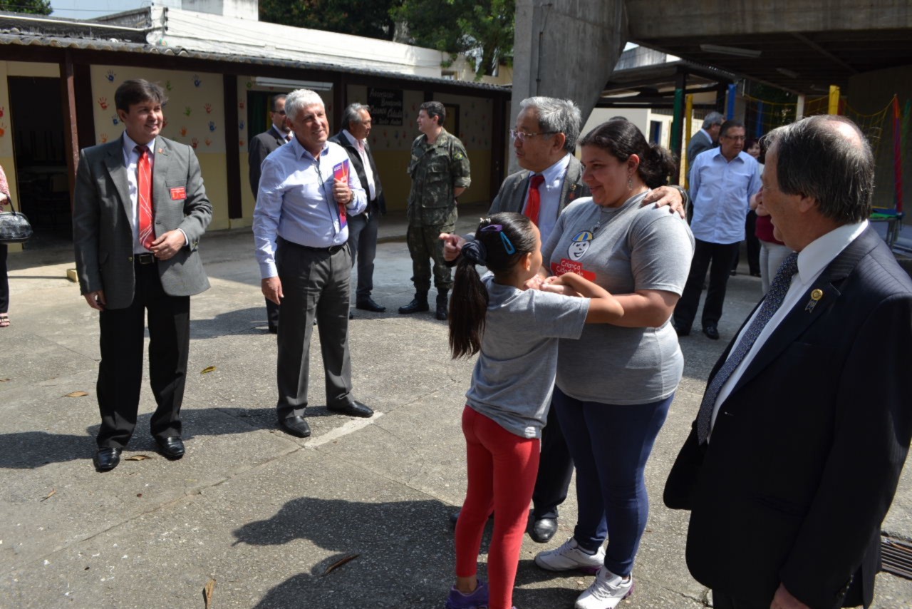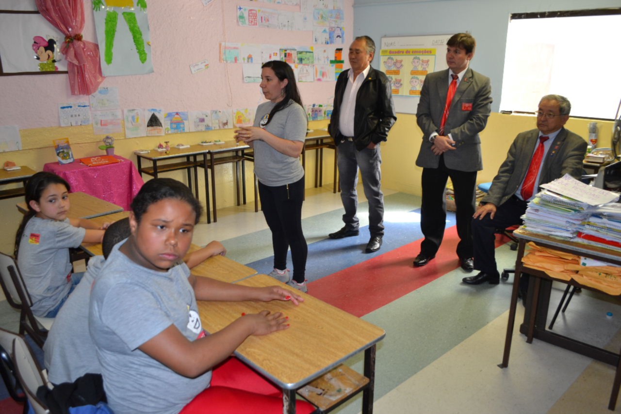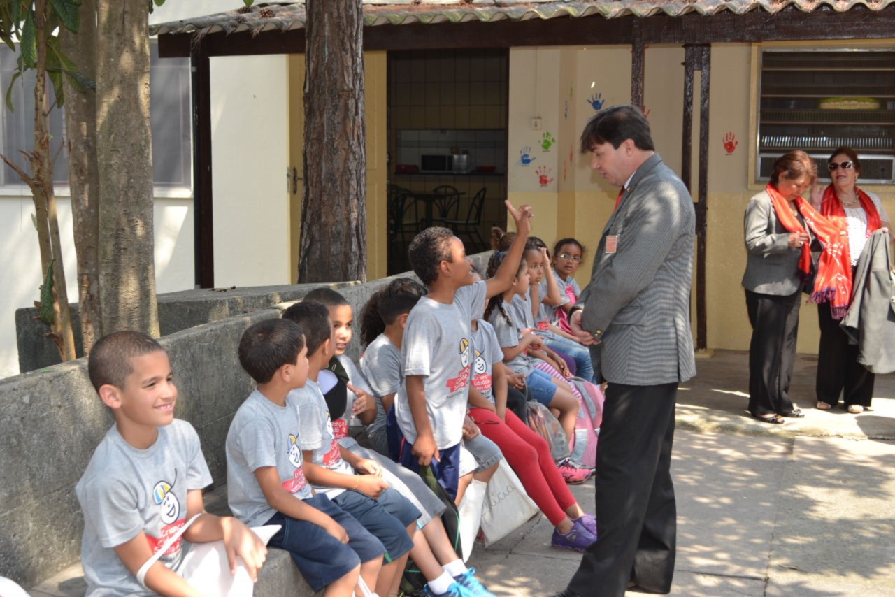 As autoridades rotárias cumpriram a agenda realizando uma visita ao Tiro de Guerra - Projeto Criança Cidadã, onde os rotarianos do clube desenvolvem atividades educativas e culturais com crianças do Ensino Fundamental, moradoras da região, na Vila Guiomar.