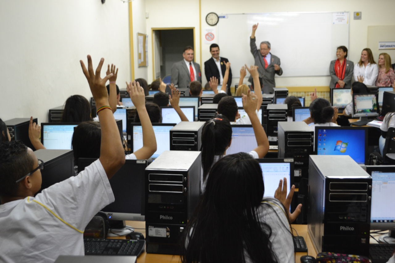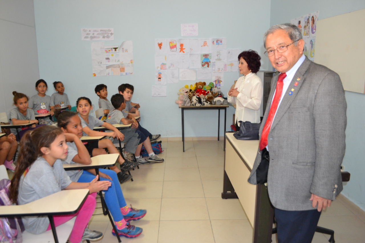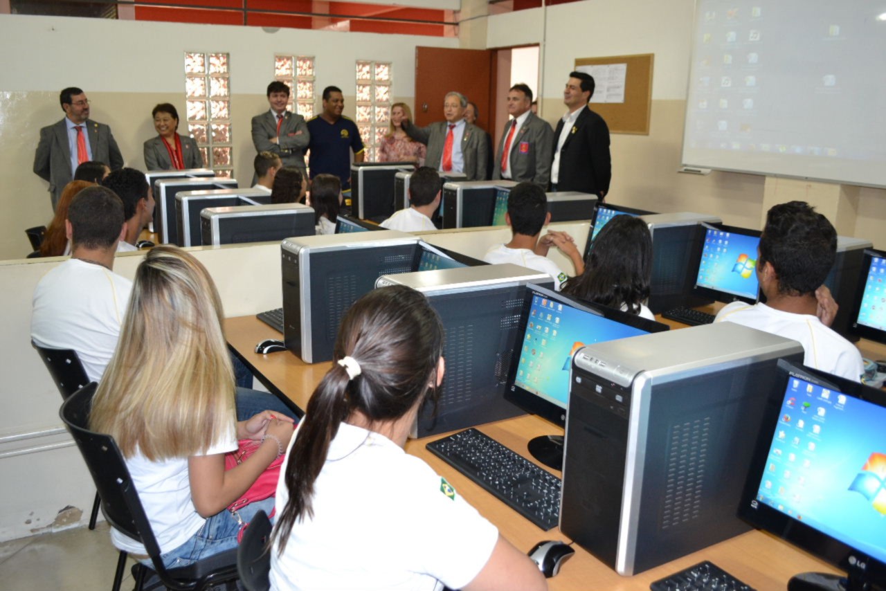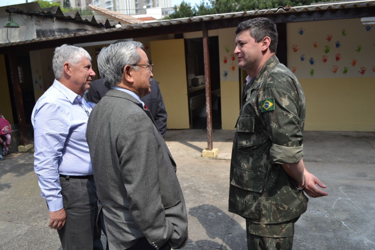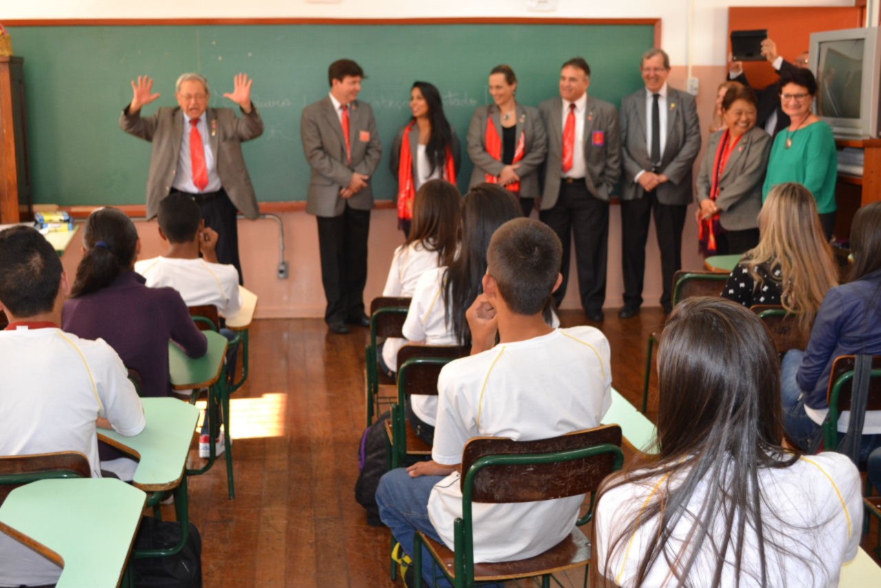 As autoridades rotárias cumpriram a agenda realizando uma visita ao Tiro de Guerra - Projeto Criança Cidadã, onde os rotarianos do clube desenvolvem atividades educativas e culturais com crianças do Ensino Fundamental, moradoras da região, na Vila Guiomar.