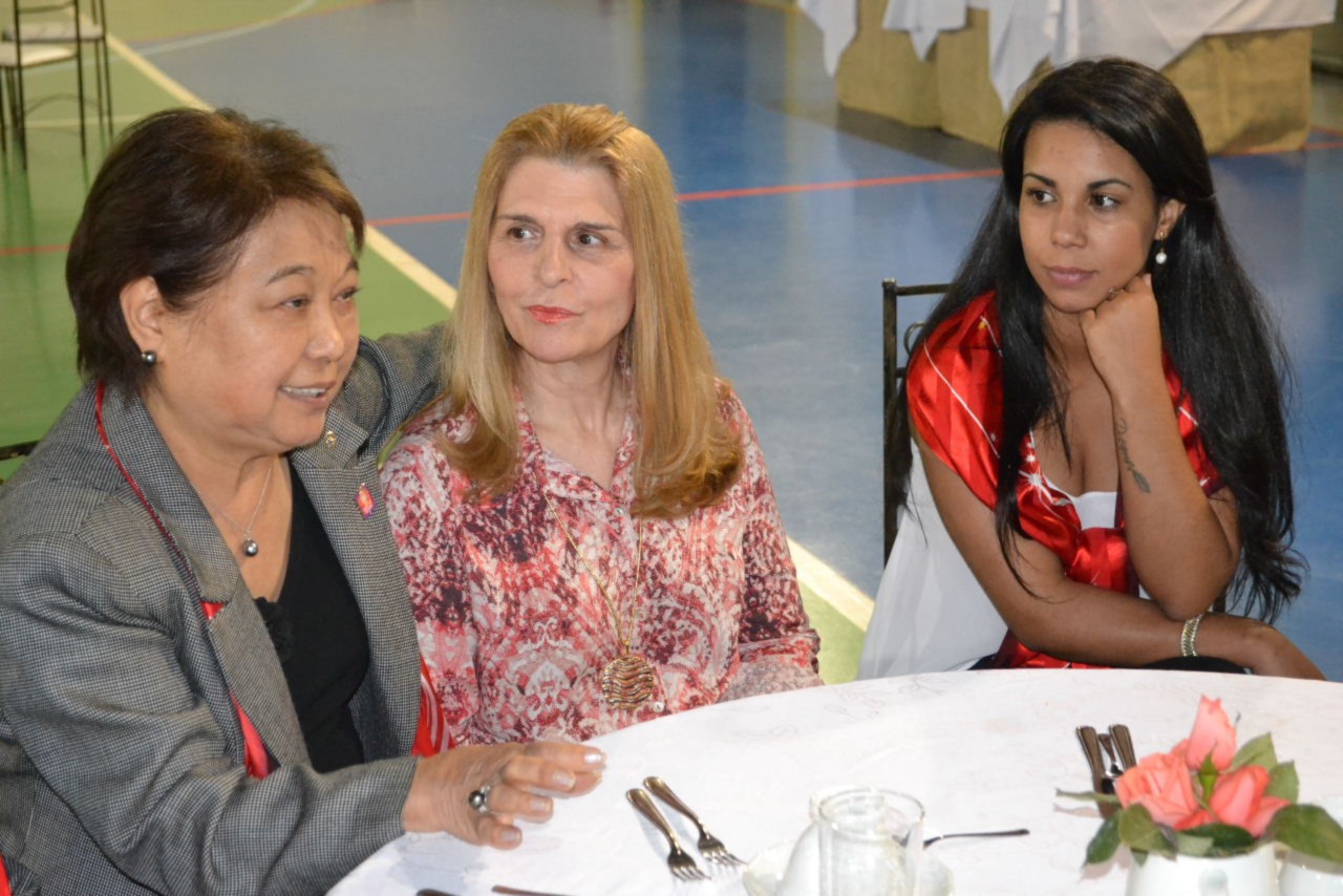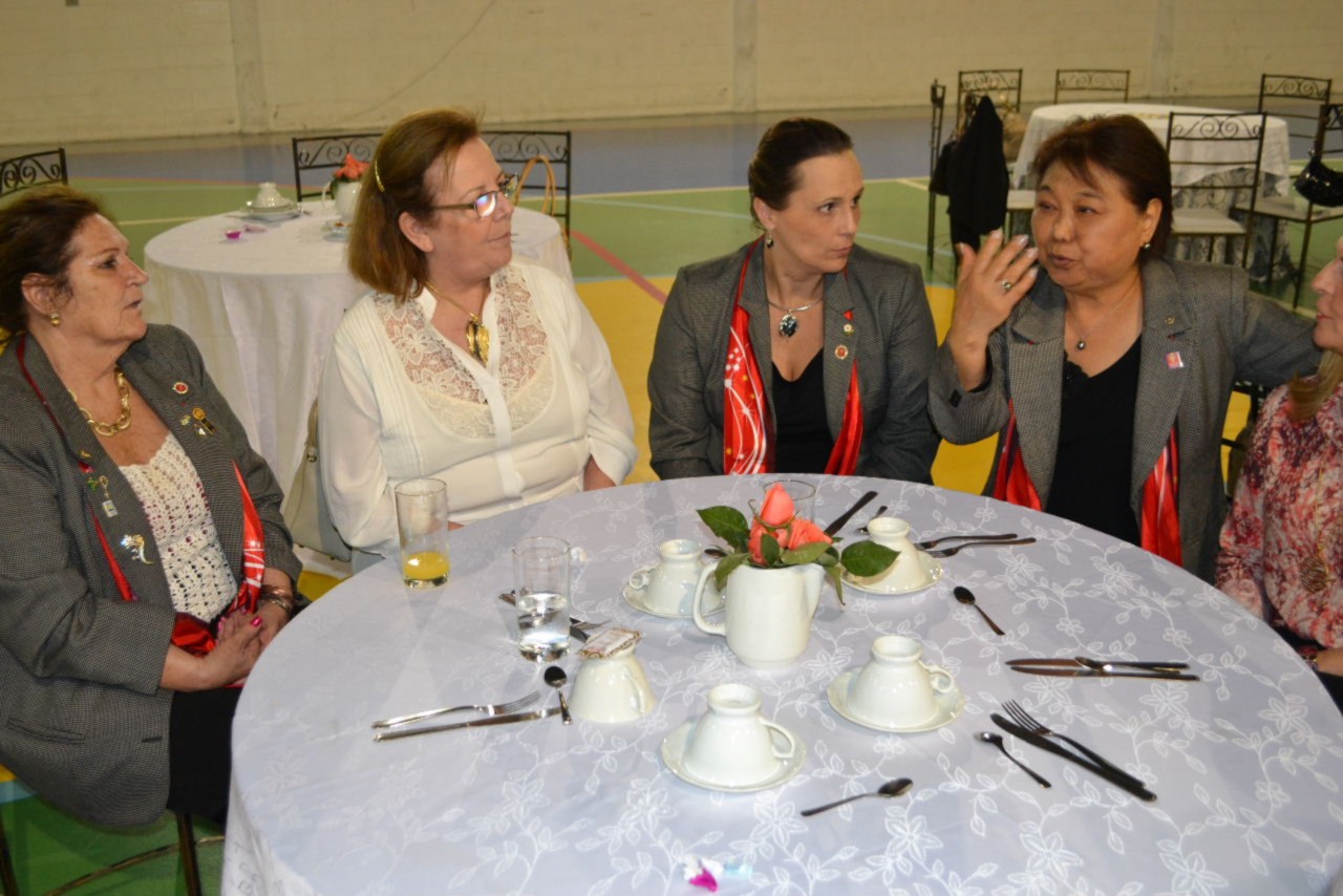 As esposas dos companheiros desfrutaram de um delicioso chá da tarde, oferecido especialmente para Suma Shimuta, que agradeceu o carinho e deixou sua mensagem, abordando assuntos relacionados à programação de eventos para as mulheres no ano rotário brilhante.