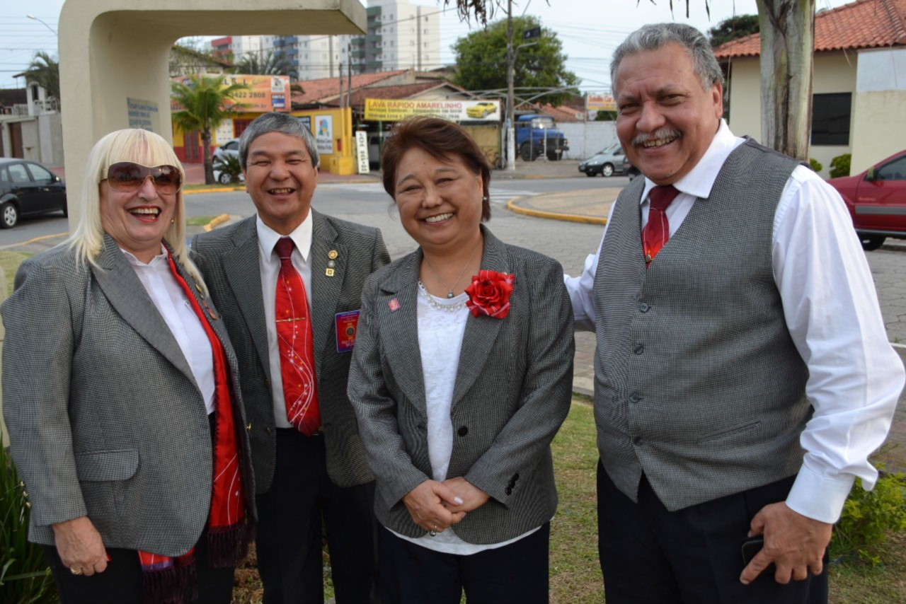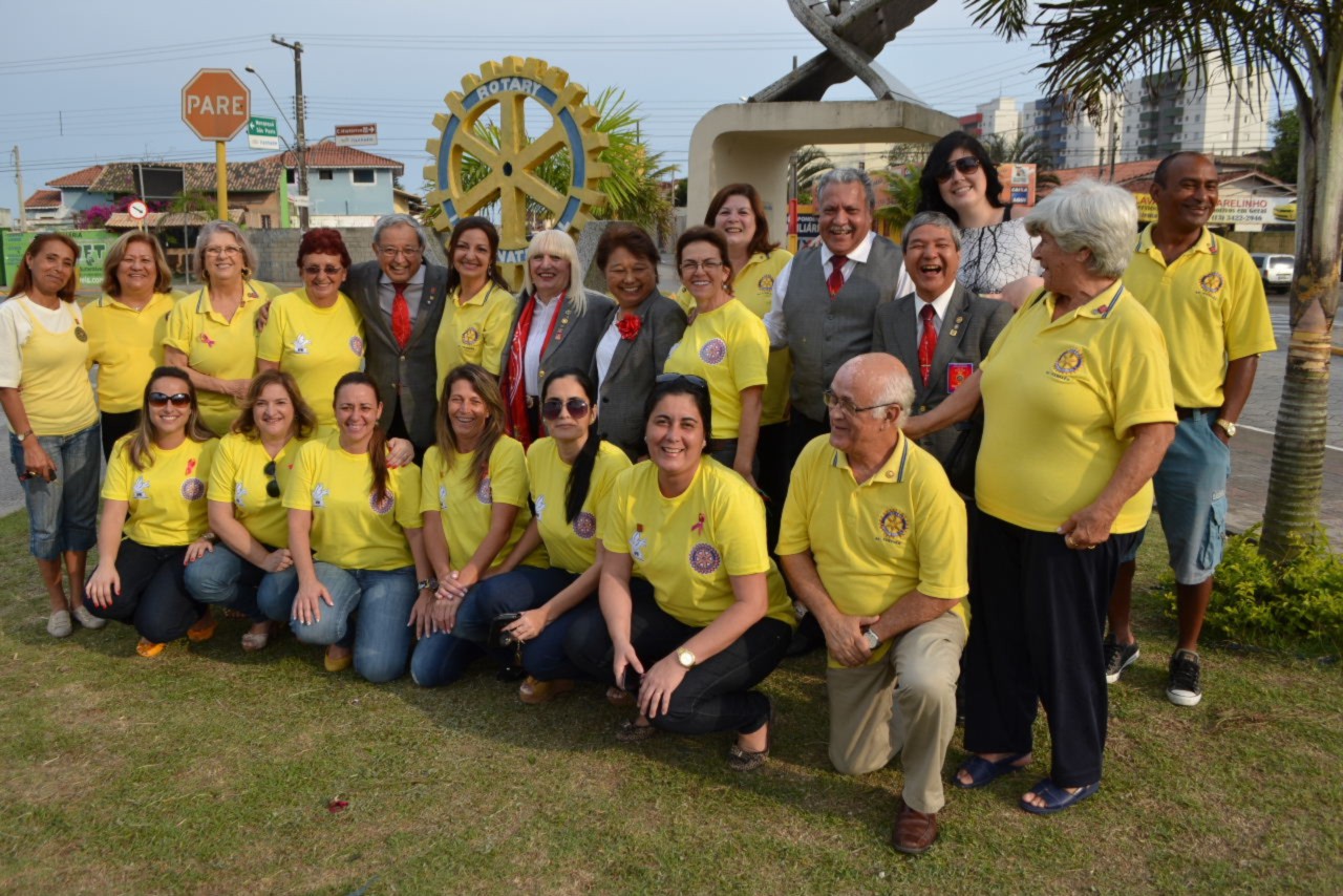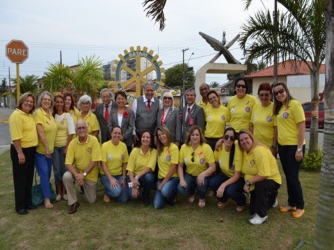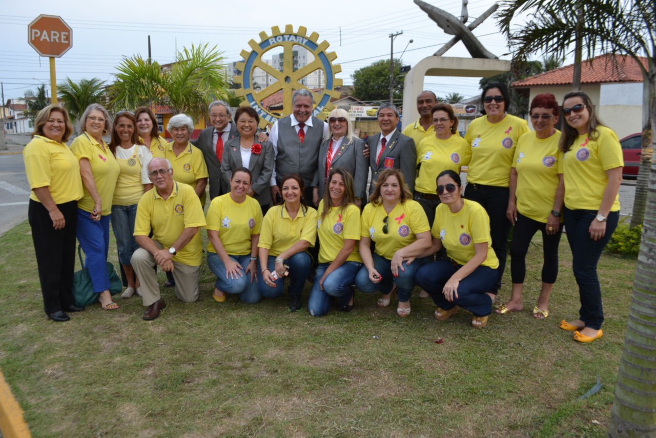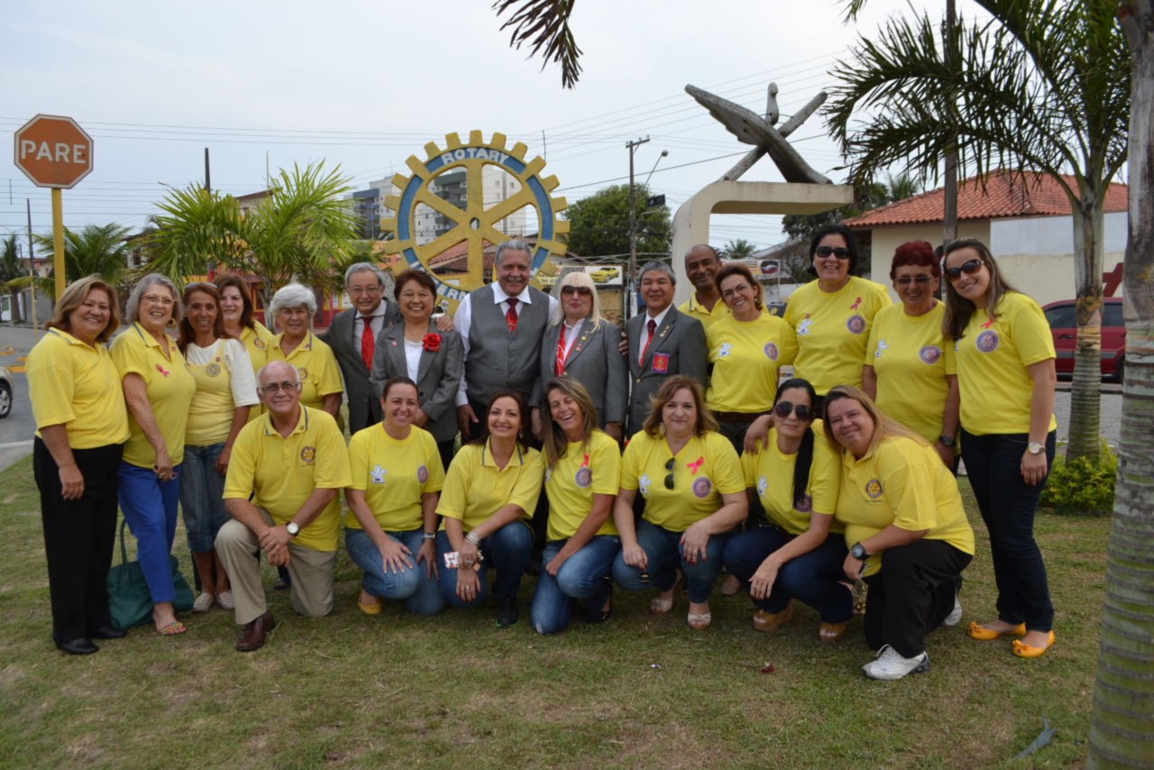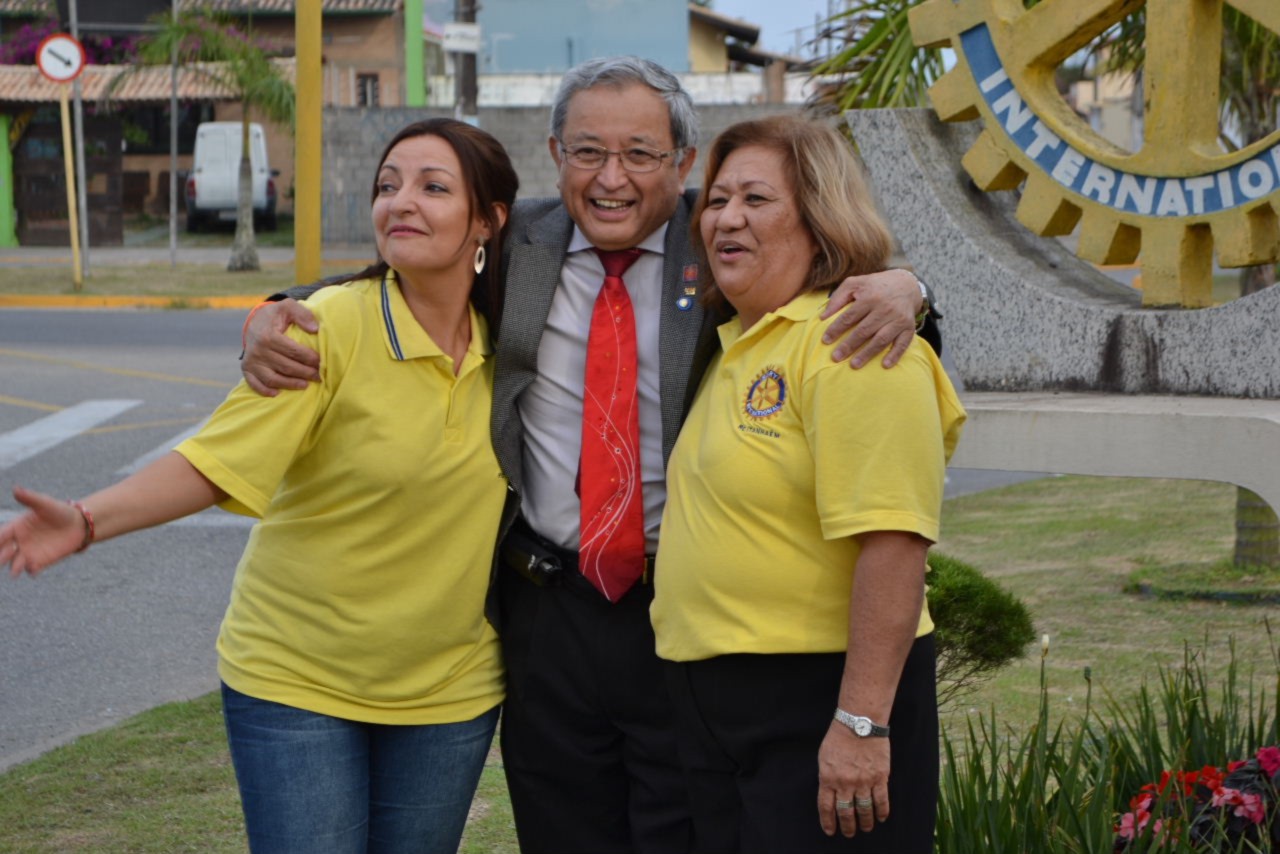 Os companheiros do Rotary Club de Itanhaém, clube presidido por Ariadna C. da Silva, recepcionaram o casal governador Hiroshi e Suma Shimuta, em frente ao Marco Rotário do clube, localizado na entrada principal da Cidade de Itanhaém.