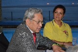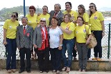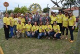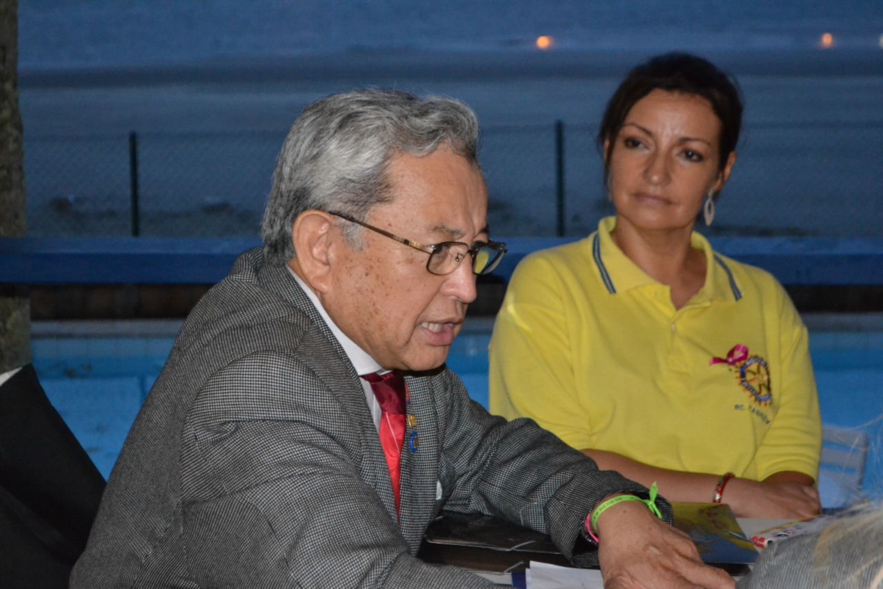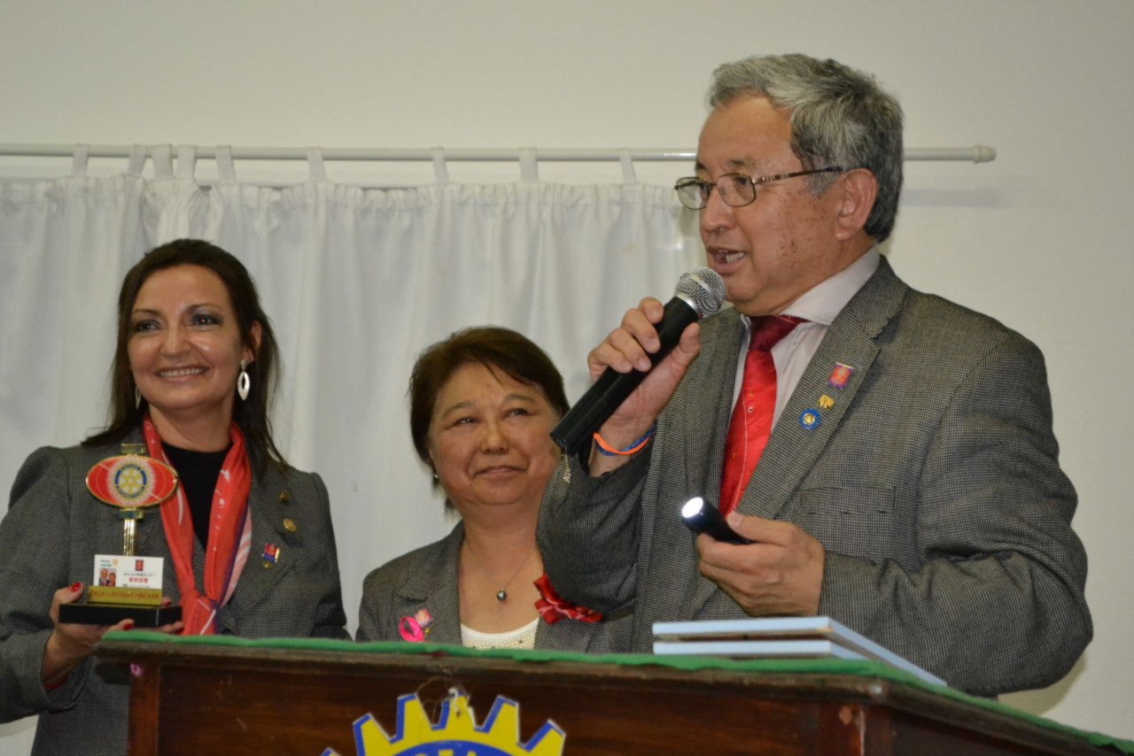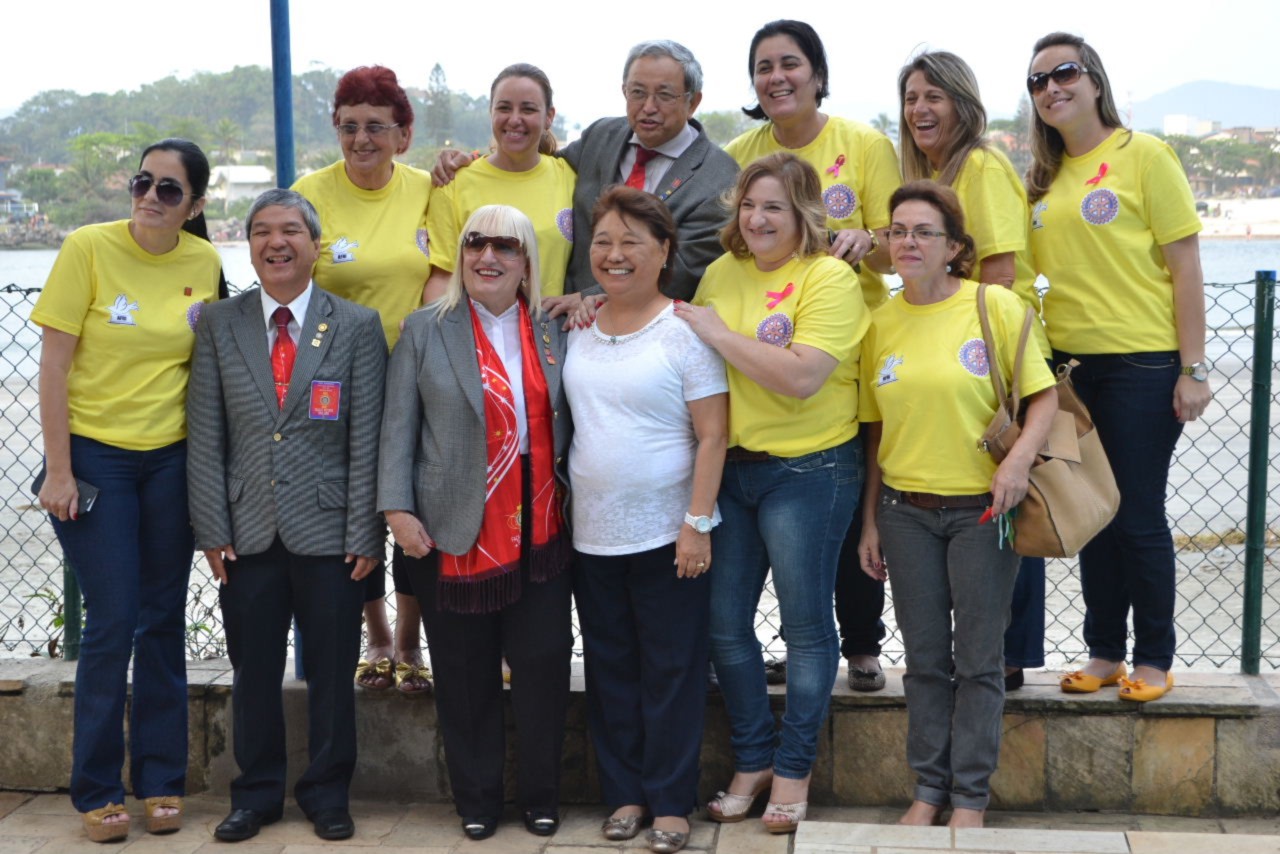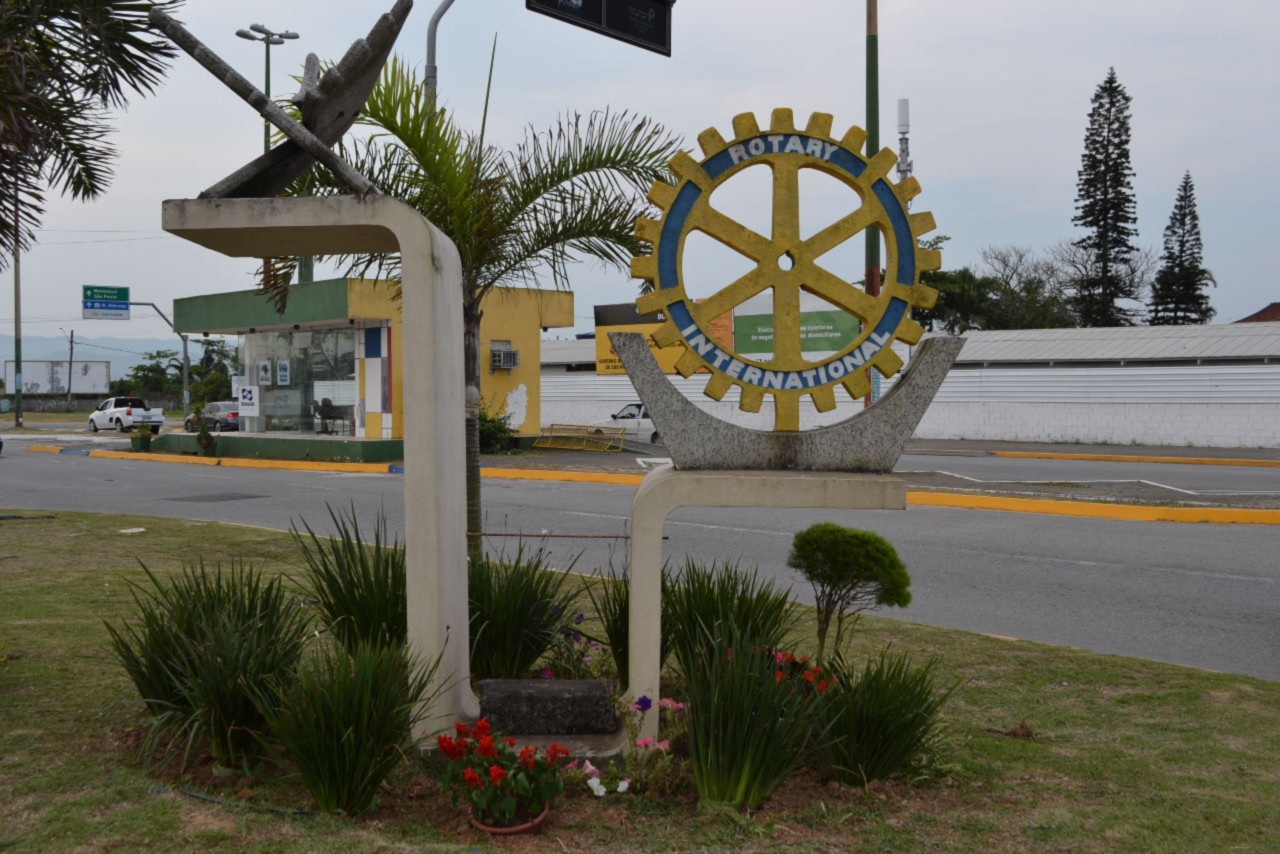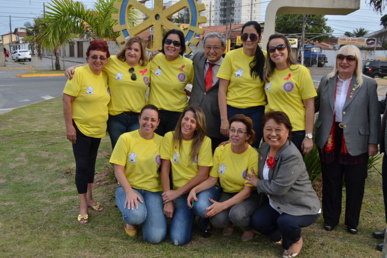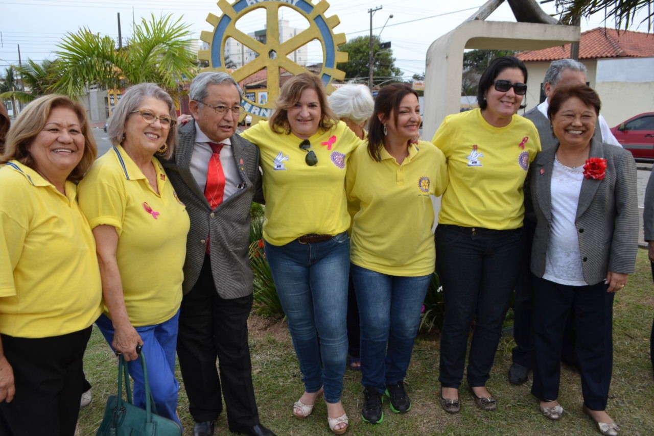 Os companheiros do Rotary Club de Itanhaém, clube presidido por Ariadna C. da Silva, recepcionaram o casal governador Hiroshi e Suma Shimuta, em frente ao Marco Rotário do clube, localizado na entrada principal da Cidade de Itanhaém.