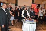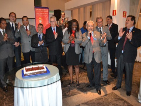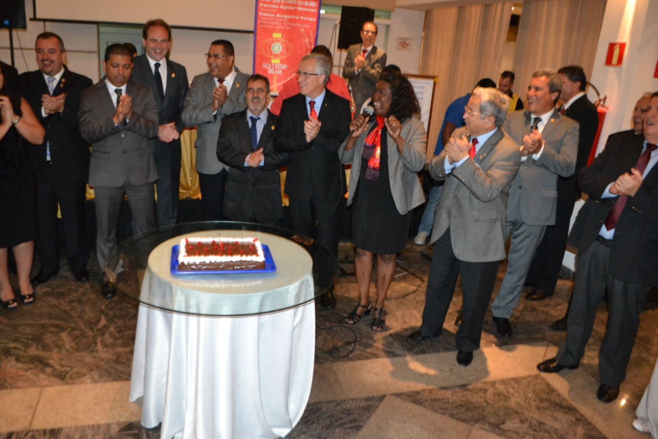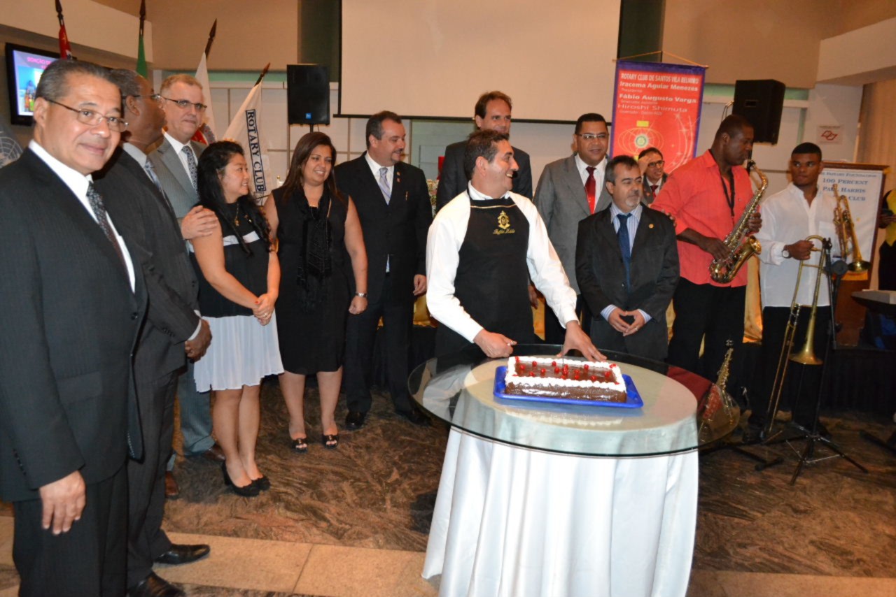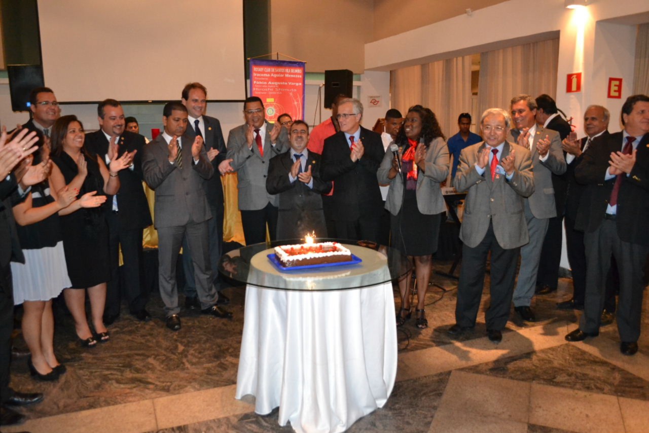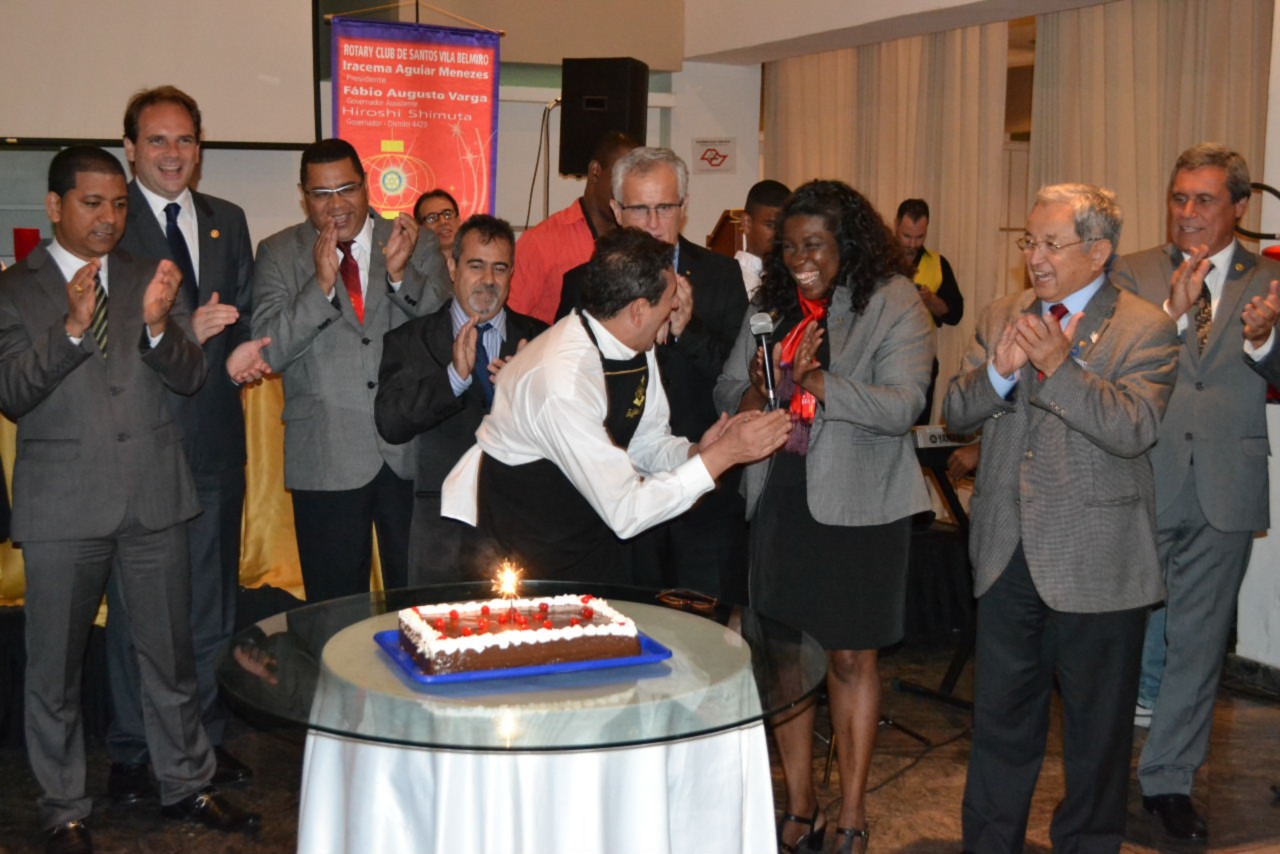 Ao final da reunião, os companheiros comemoraram o aniversário do clube, cantando o parabéns rotário, puxado pelo governador Shimuta, que entusiasmado, alegrou a platéia.