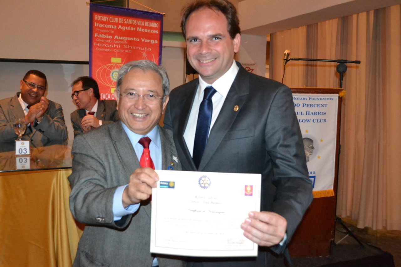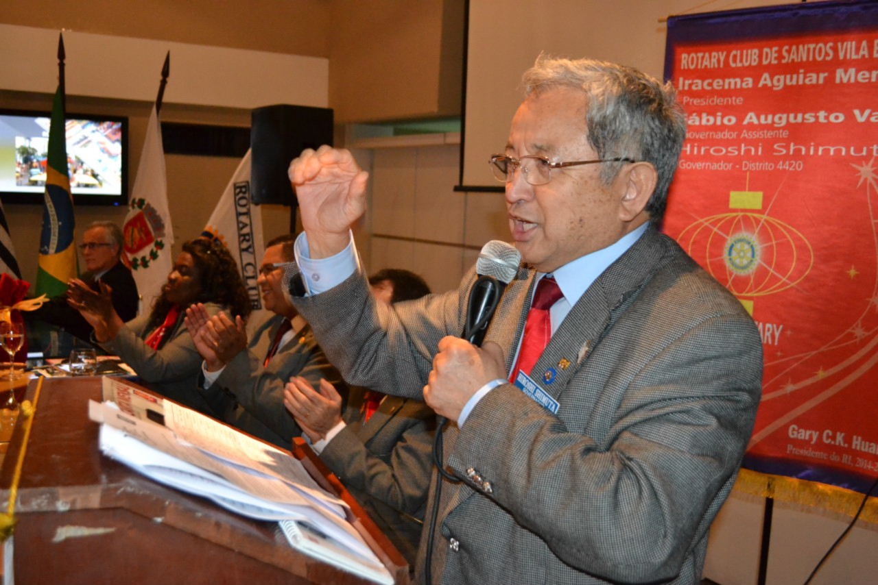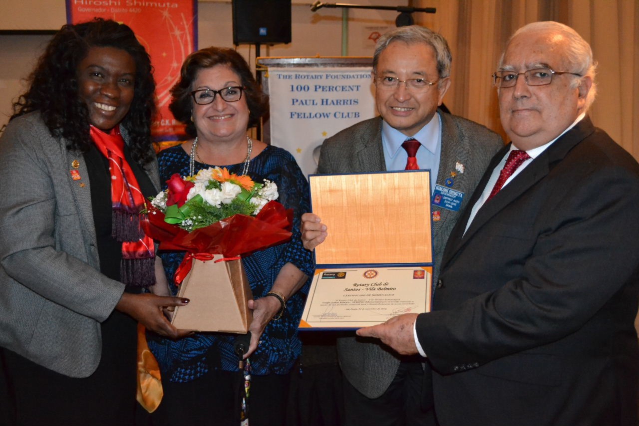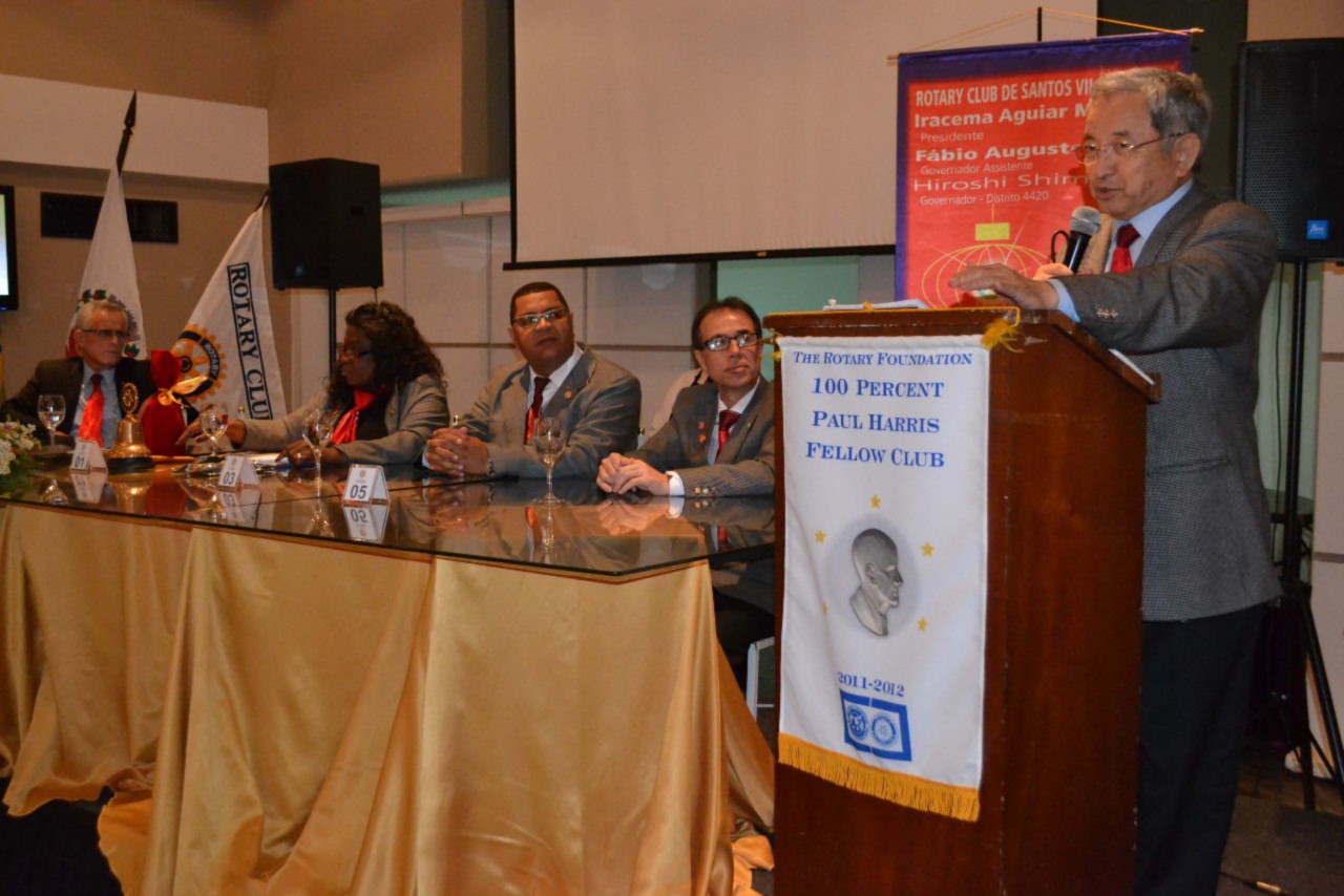 Em Visita Oficial ao Rotary Club de Santos Vila Belmiro, o governador Hiroshi Shimuta conheceu os projetos mantidos pelo clube que neste ano brilhante é presidido pelo casal Iracema M.C. Aguiar Menezes e Edson.