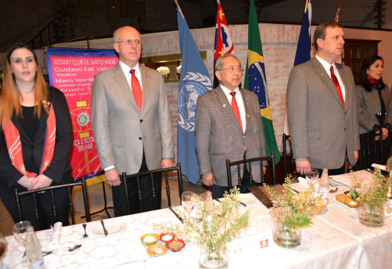O presidente brihante do Rotary Club de Santo André, Gustavo Faé Vallejo e Eliane, sua esposa, receberam Visita Oficial do governador Hiroshi Shimuta, ao clube que apresentou a Casa Ronald do ABC/ Projeto Crescer (Casa de Apoio à Criança com Câncer) como primeiro projeto da lista de programação, local onde também foi oferecido pela comitiva, um almoço.