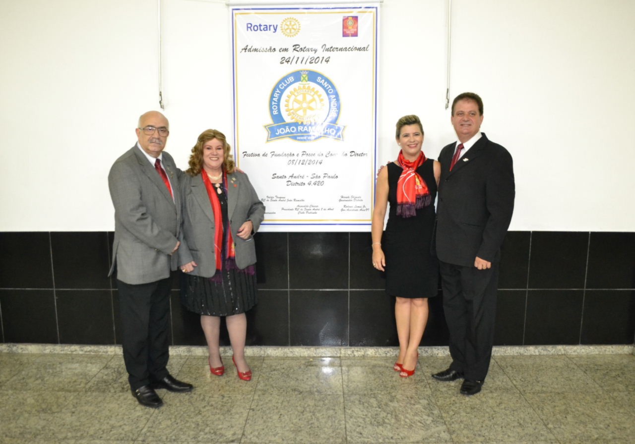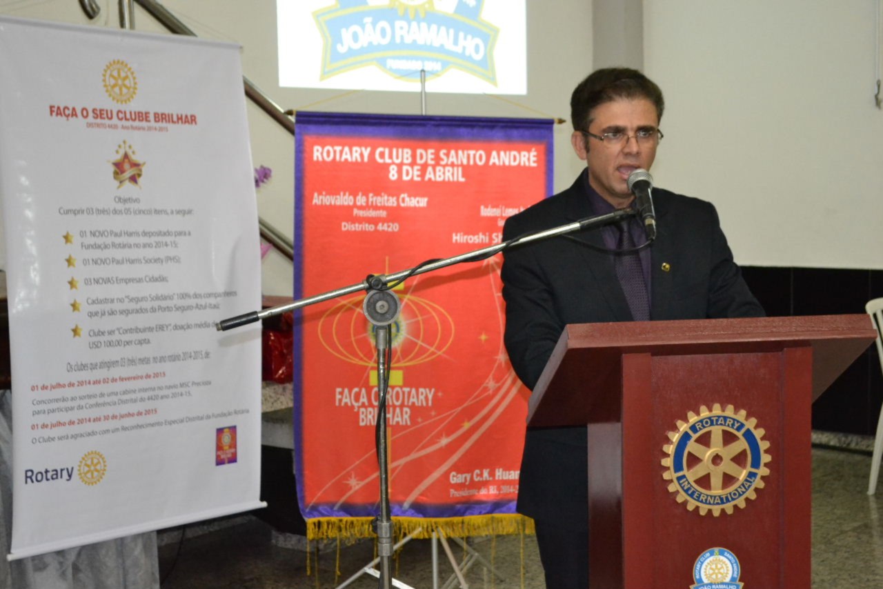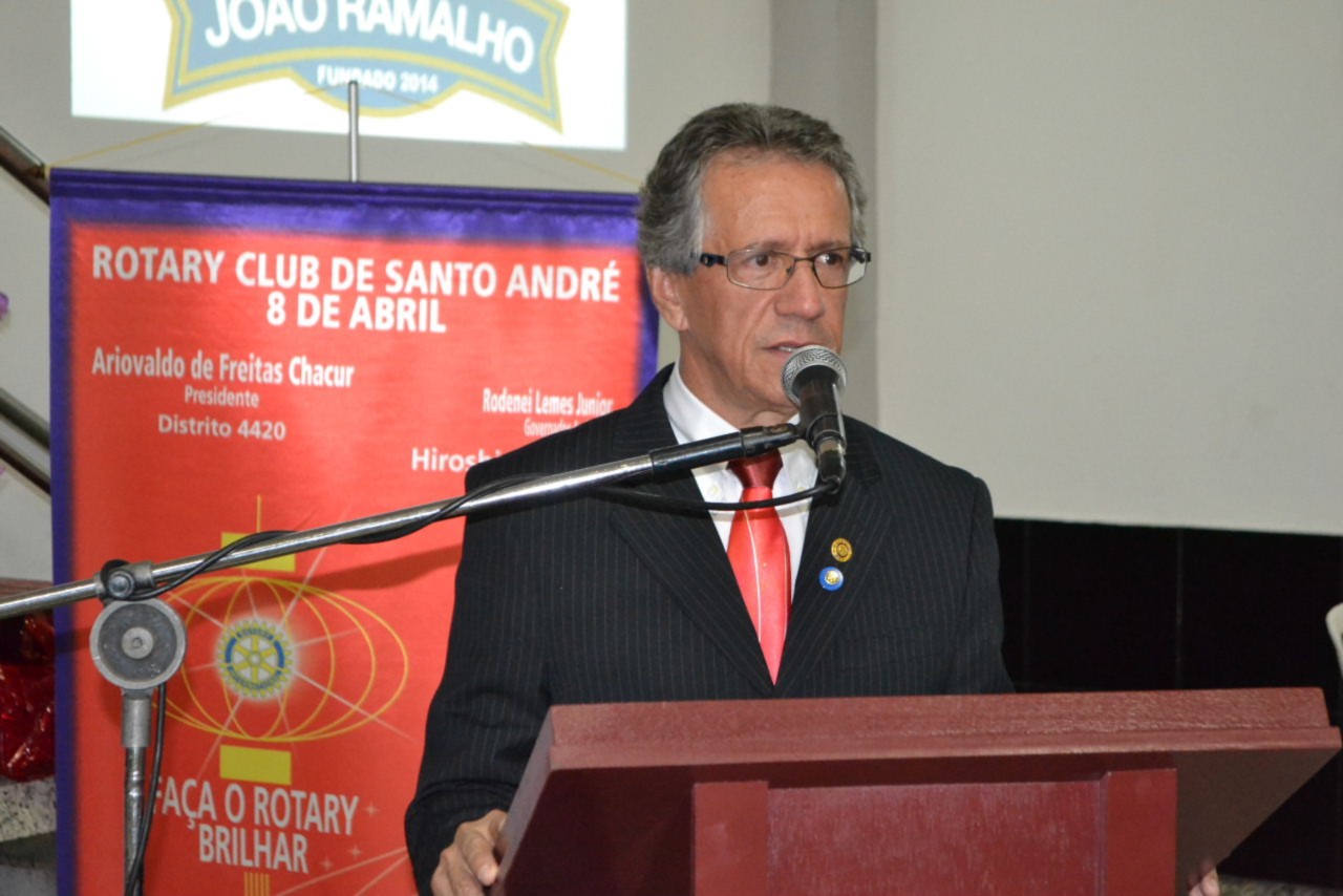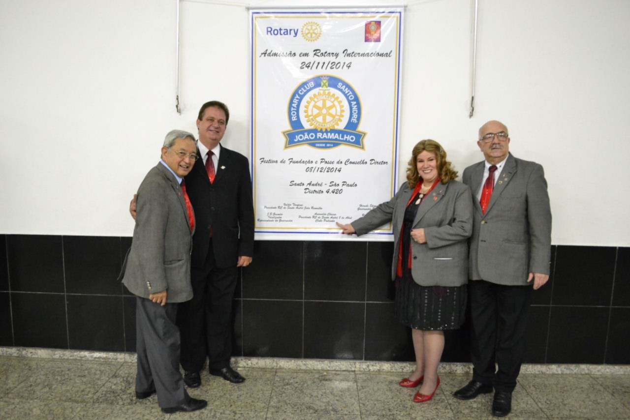 O presidente do Rotary Club de Santo André 8 de Abril, Ariovaldo de Freitas Chacur, conduziu a mesa diretora dos trabalhos, ladeado pelo presidente eleito do novo clube, Valdir Tirapani, o governador Shimuta, o governador assistente da área Rodenei Lemes Junior e o companheiro José Batista Gusmão, que coordenou e organizou a fundação do clube.