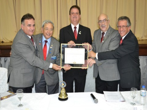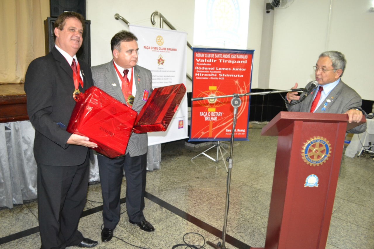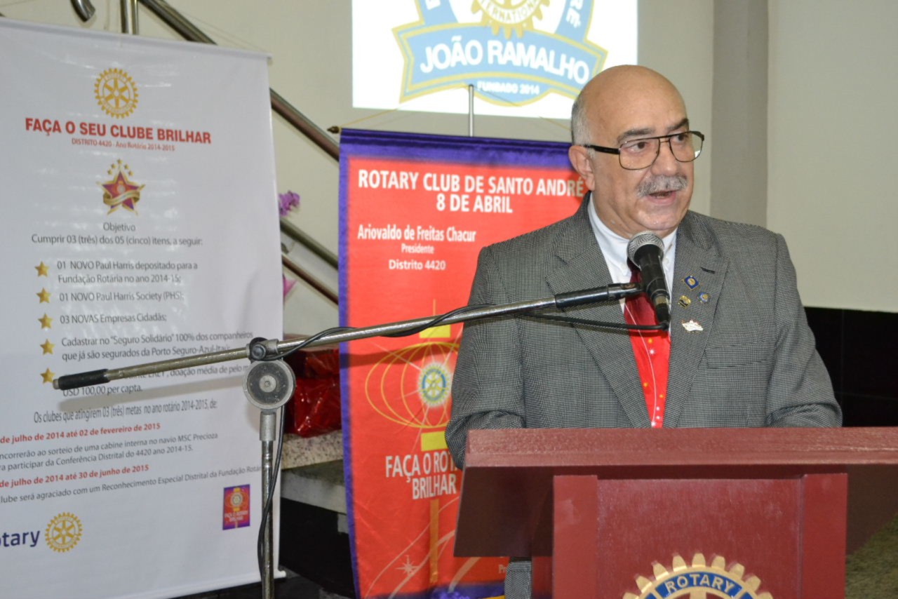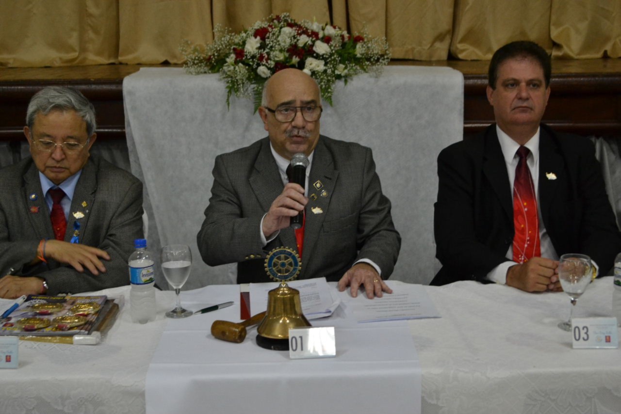 O presidente do Rotary Club de Santo André 8 de Abril, Ariovaldo de Freitas Chacur, conduziu a mesa diretora dos trabalhos, ladeado pelo presidente eleito do novo clube, Valdir Tirapani, o governador Shimuta, o governador assistente da área Rodenei Lemes Junior e o companheiro José Batista Gusmão, que coordenou e organizou a fundação do clube.