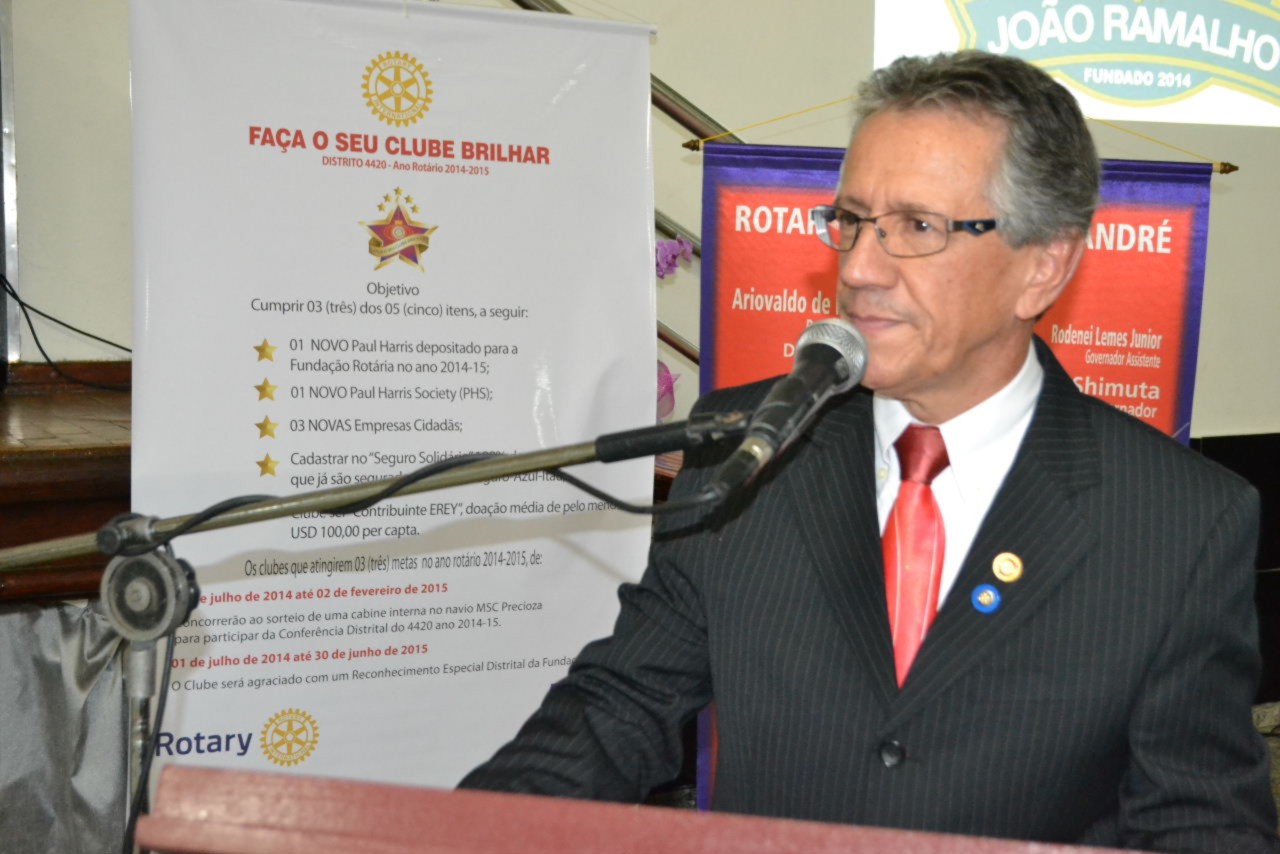 Parabenizo os sócios fundadores deste clube que veio para ficar e fazer a estrela do nosso distrito brilhar. Está dentro da filosofia do Rotary o lema Dar de Si, Antes de Pensar em Si e temos certeza que todos os companheiros, liderados pelo presidente brilhante, vão exercer suas funções com muita dignidade para realizar muitos projetos humanitários. São 26 famílias que estão sendo agregadas ao nosso distrito e esperamos que esse momento seja próspero e realizador, concluiu o governador.