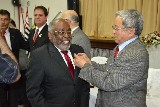 Cerca de 101 convidados testemunharam a cerimônia e viram os responsáveis por esse importante ato, receberem a Medalha de Honra ao Mérito, das mãos do governador, em reconhecimento aos esforços e cumprimento da honrosa meta.]