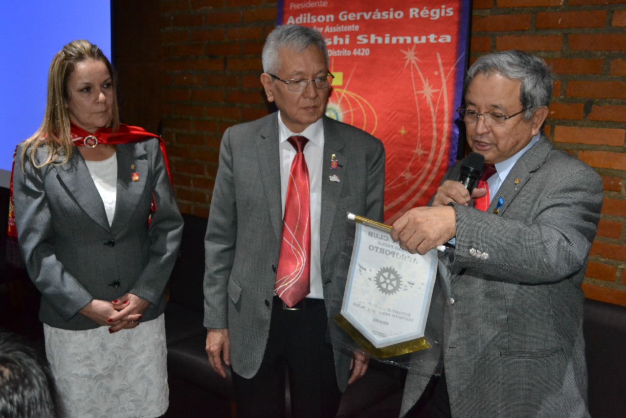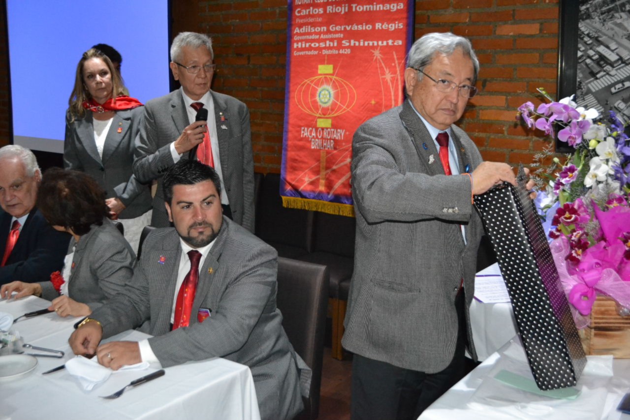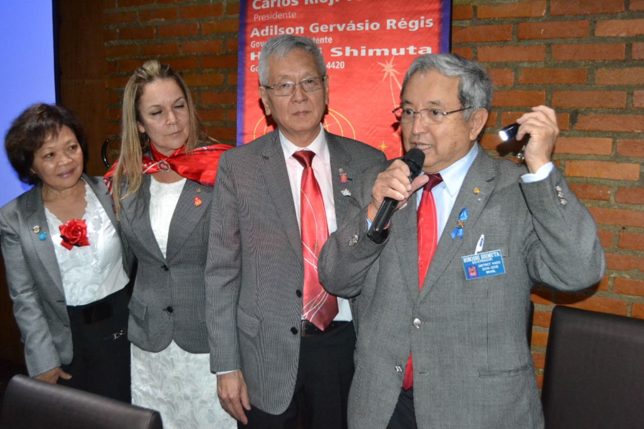 O governador Shimuta parabenizou o presidente Tominaga e seus companheiros, incentivando cada um deles a continuar servindo em Rotary e promovendo a posse de novos companheiros que deverão agregar novas ideias e trabalhar assim, por ações humanitárias que beneficiarão mais pessoas. Ele acredita que o clube está no caminho certo e reconheceu a liderança do presidente brilhante que tem se mostrado atuante e presente, trabalhando com seriedade pelo ideal de servir.
