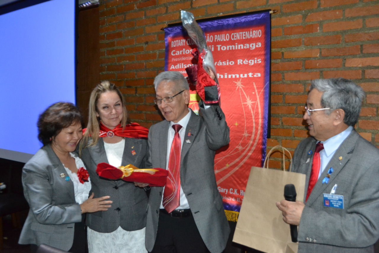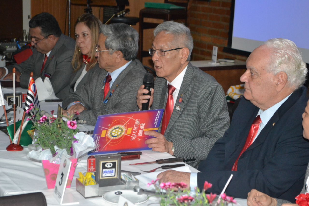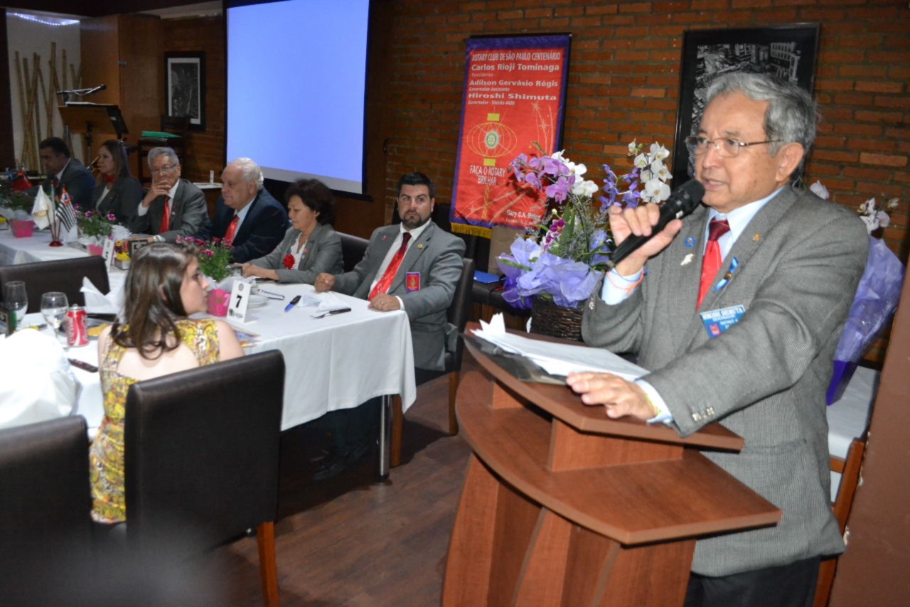 O governador Shimuta parabenizou o presidente Tominaga e seus companheiros, incentivando cada um deles a continuar servindo em Rotary e promovendo a posse de novos companheiros que deverão agregar novas ideias e trabalhar assim, por ações humanitárias que beneficiarão mais pessoas. Ele acredita que o clube está no caminho certo e reconheceu a liderança do presidente brilhante que tem se mostrado atuante e presente, trabalhando com seriedade pelo ideal de servir.