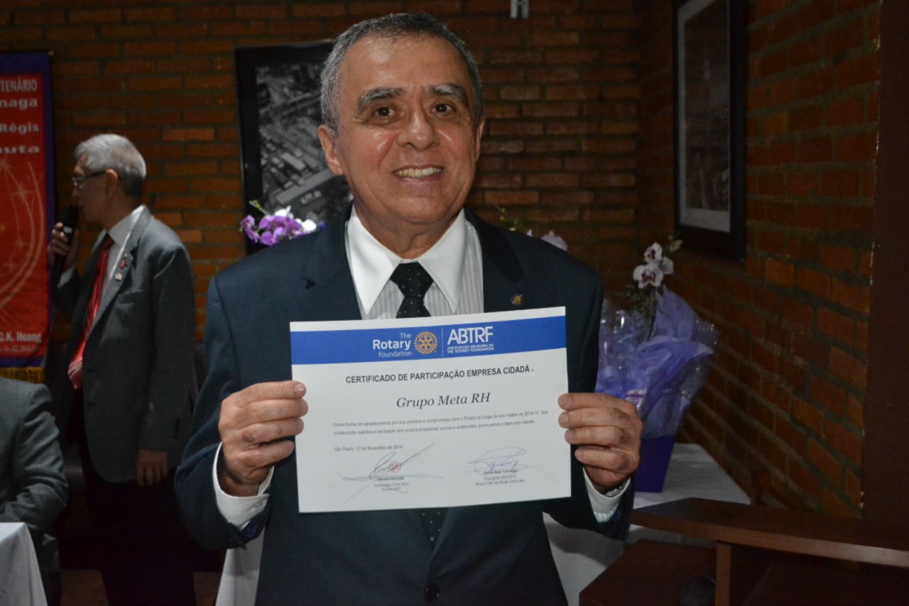 O presidente brilhante Carlos Rioji Tominaga e Sirlei, sua esposa, apresentaram as ações do clube e celebraram com os convidados, o ano rotário brilhante, que tem sido inspiração para as realizações do clube. As parcerias tem possibilitado a elaboração de projetos e atividades voltadas para a comunidade, algo que merece reconhecimento do clube, que concedeu o Certificado de Participação Empresa Cidadã ao Grupo Meta RH.