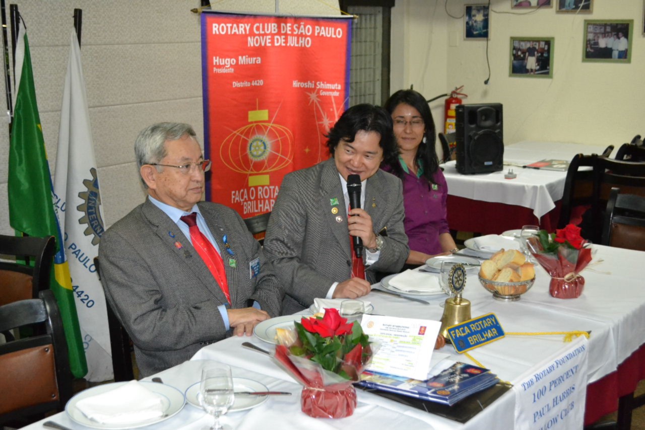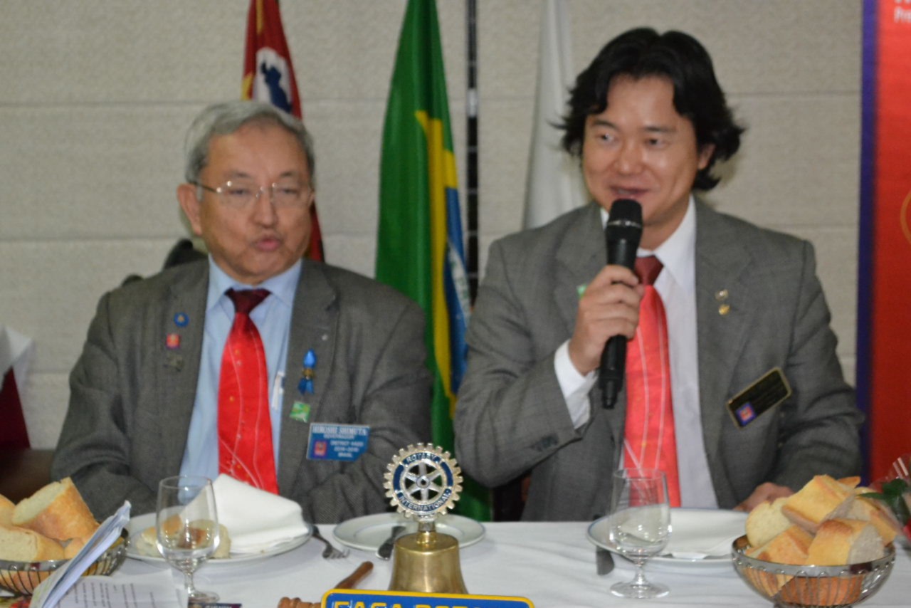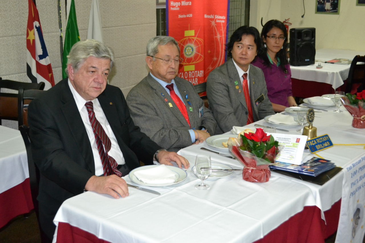 Após conhecer os rotarianos do clube em assembléia, o governador Shimuta participou da festiva que contou com a presença do GD 1985-1986 José Alfredo Pretoni , sócio honorário do clube, que compôs a mesa diretora e aproveitou a ocasião para mencionar a Convenção Internacional que será realizada em São Paulo.