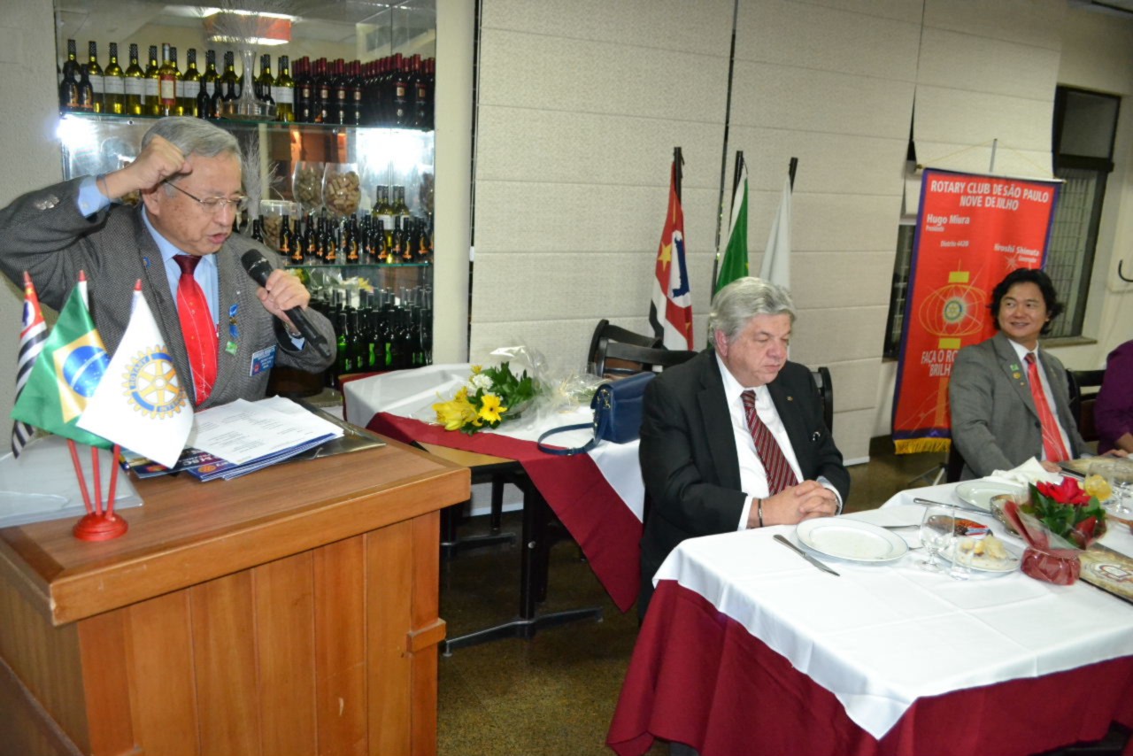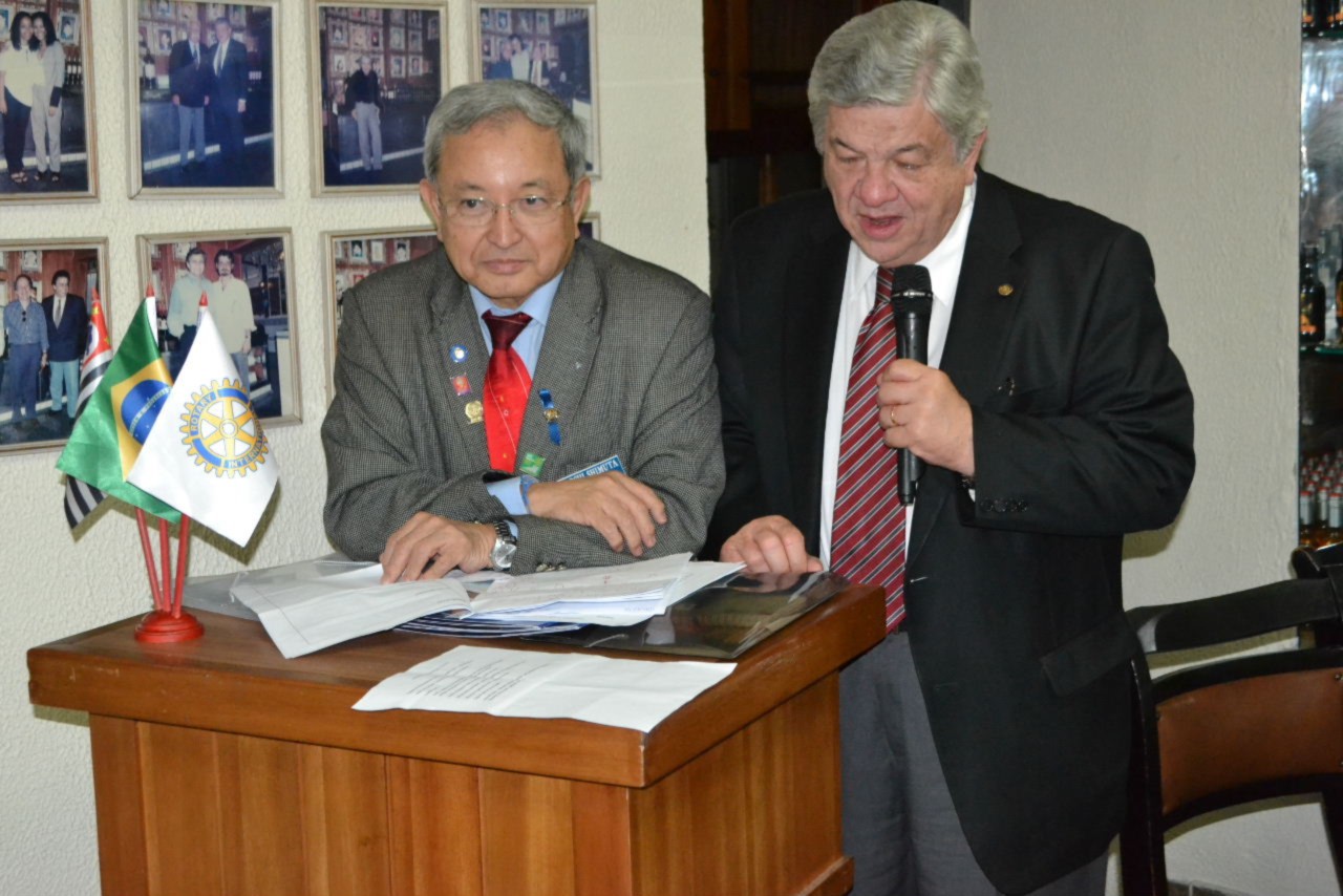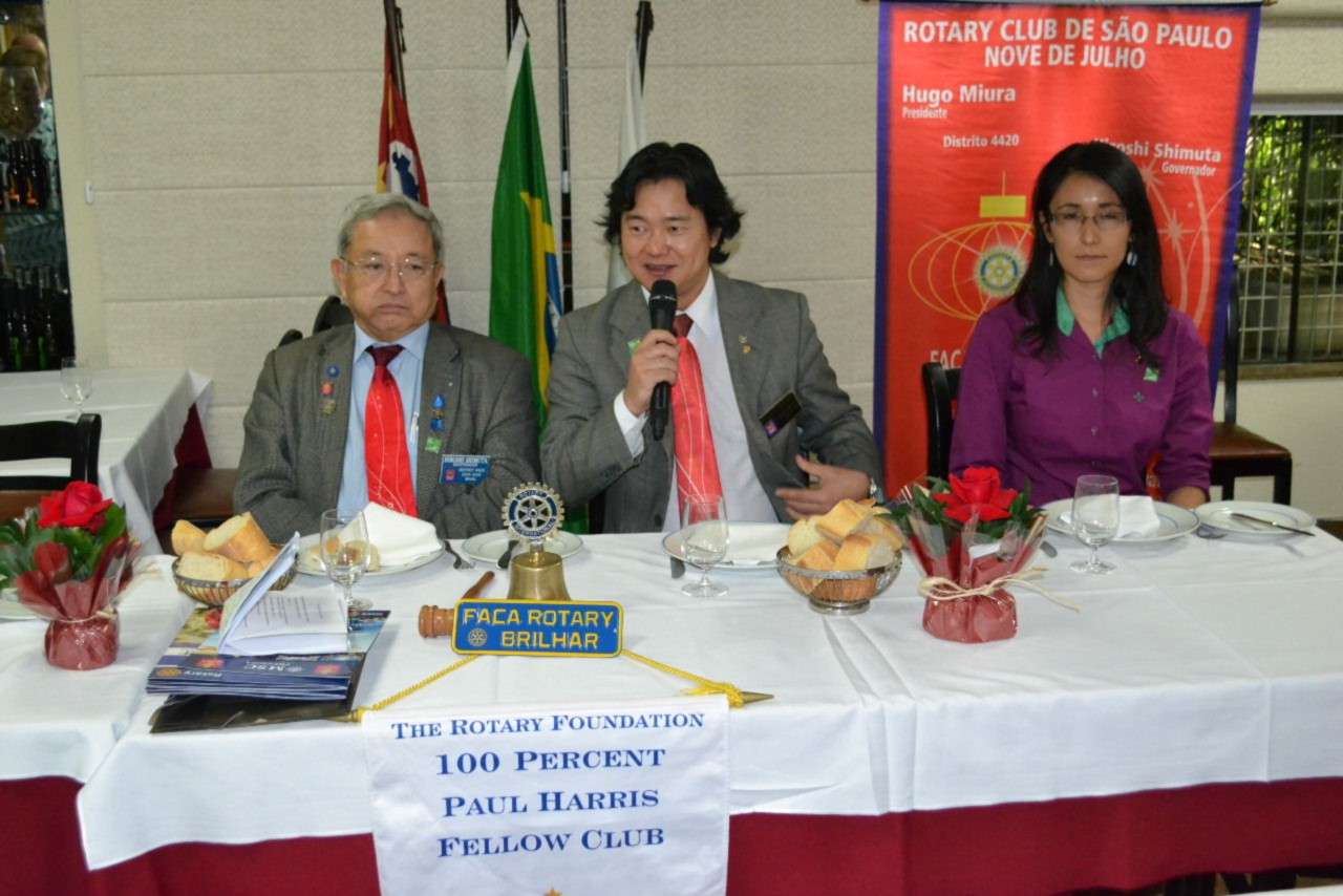 Após conhecer os rotarianos do clube em assembléia, o governador Shimuta participou da festiva que contou com a presença do GD 1985-1986 José Alfredo Pretoni , sócio honorário do clube, que compôs a mesa diretora e aproveitou a ocasião para mencionar a Convenção Internacional que será realizada em São Paulo.