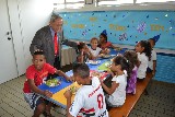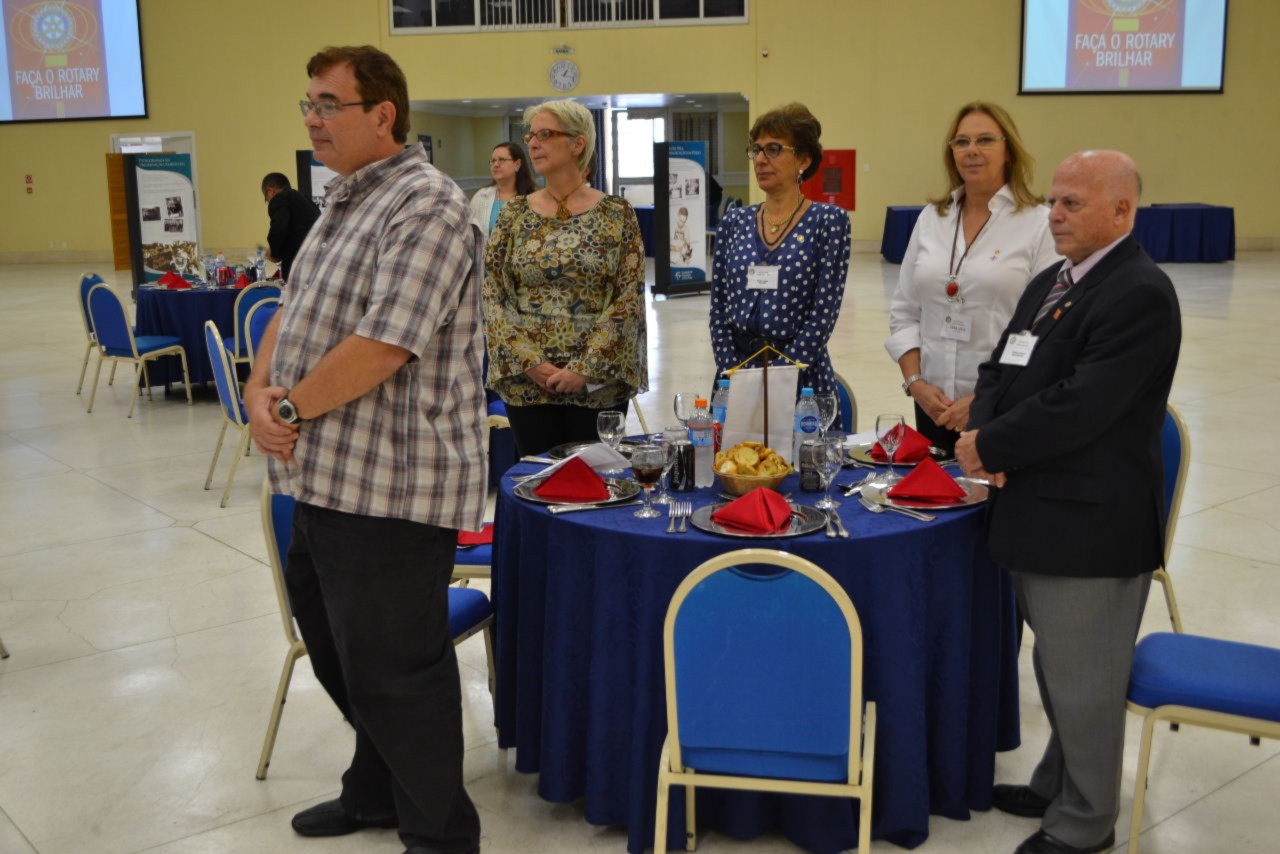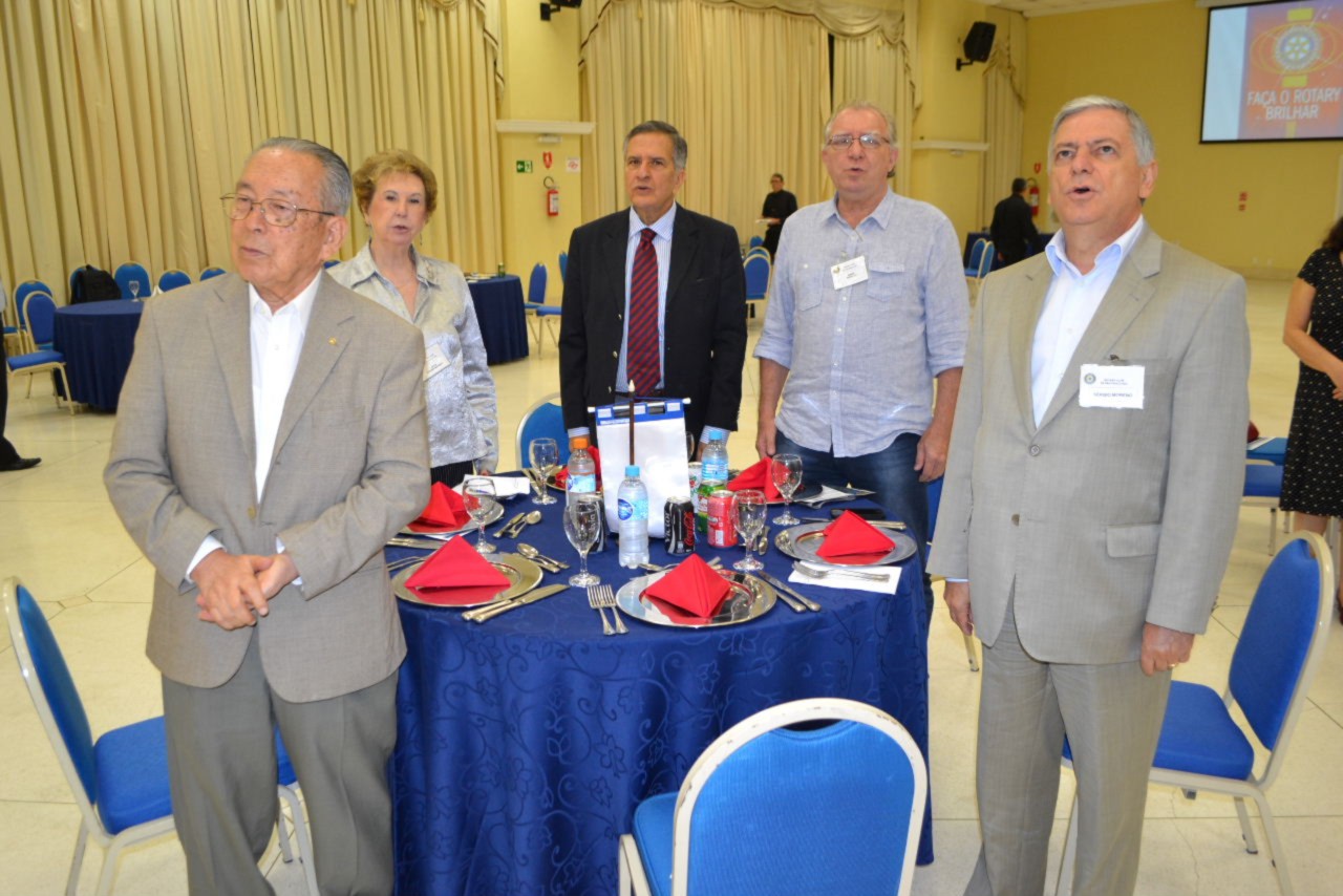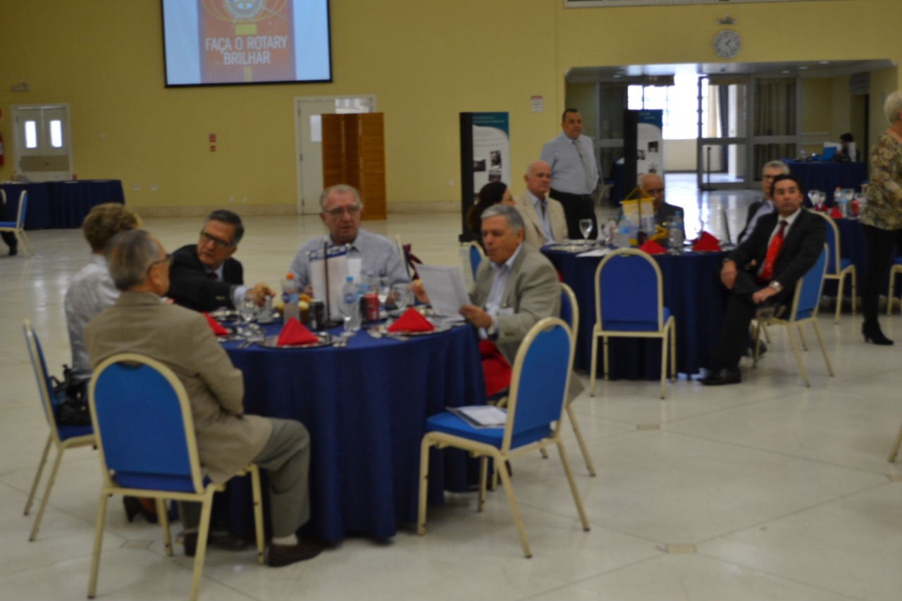 Depois de conhecer a entidade apoiada pelo clube, a comitiva seguiu junto com o governador para o Colégio Rio Branco, onde foi realizado no Salão Principal, a assembleia com os sócios e almoço festivo, celebrando a visita da autoridade rotária.