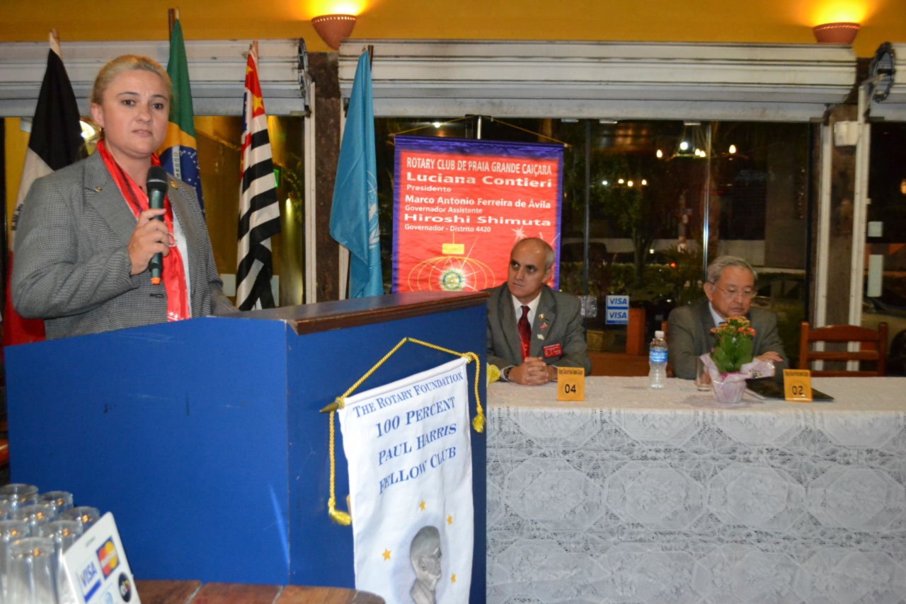 Em seu pronunciamento, Luciana Contieri agradeceu a presença dos convidados e o apoio dos companheiros que seguem firmes e determinados no ideal de servir, mantendo as atividades do clube em nome dos companheiros que escreveram sua história, considerando as grandes perdas, por motivo de falecimento de alguns associados que muito contribuíram para que o clube existisse.