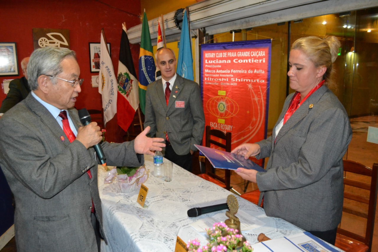 Encerrando o ciclo de Visitas Oficiais na Baixada Santista, o governador do Distrito 4420, Hiroshi Shimuta, esteve no Rotary Club de Praia Grande Caiçara, que tem como casal presidente brilhante Luciana Contieri e Duilio.