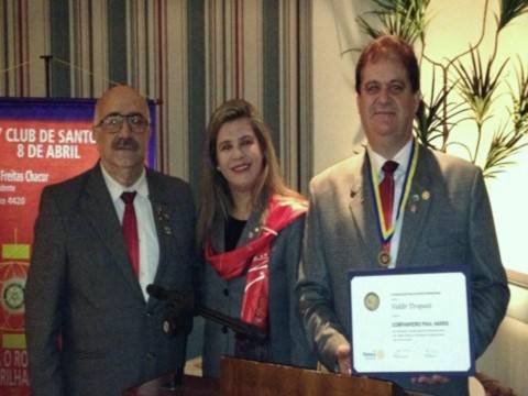 O Presidente do Rotary Club Santo André João Ramalho, Valdir Tirapani, recebeu o Titulo de Companheiro Paul Harris, concedido pelo Rotary Club Santo André 8 de abril.