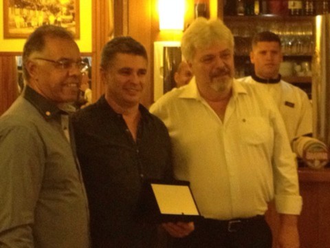 Dia 16 de abril os companheiros e convidados do Rotary Club de Guarujá, em retribuição ao patrocinador Luiz Gonzaga de Menezes, se reuniram no Restaurante Chopp Halle, do homenageado, em jantar de companheirismo. Também foi comemorado o aniversário da companheira Dina, esposa do Rotariano Francisco Bonatto.