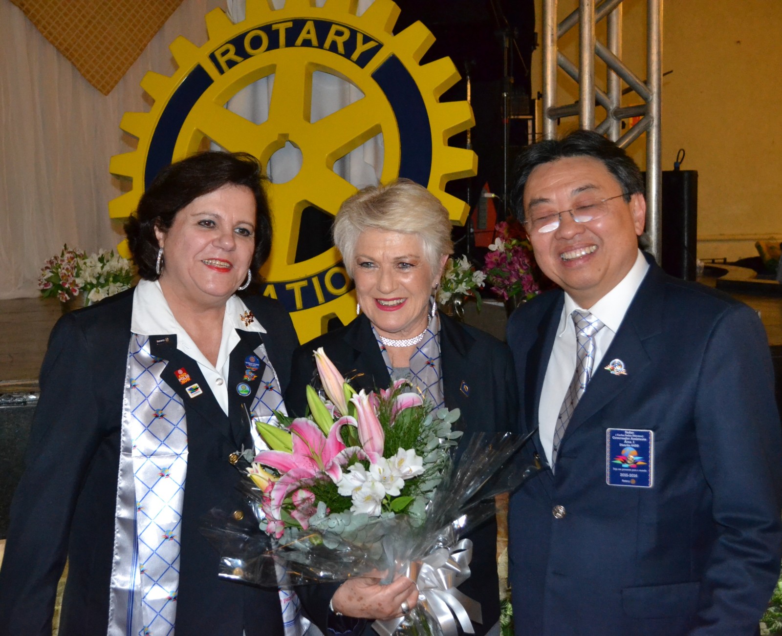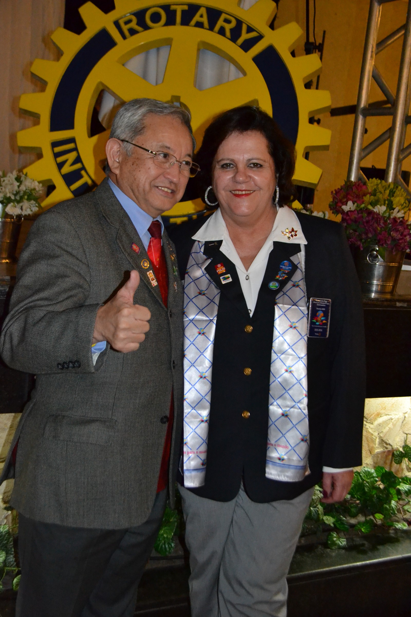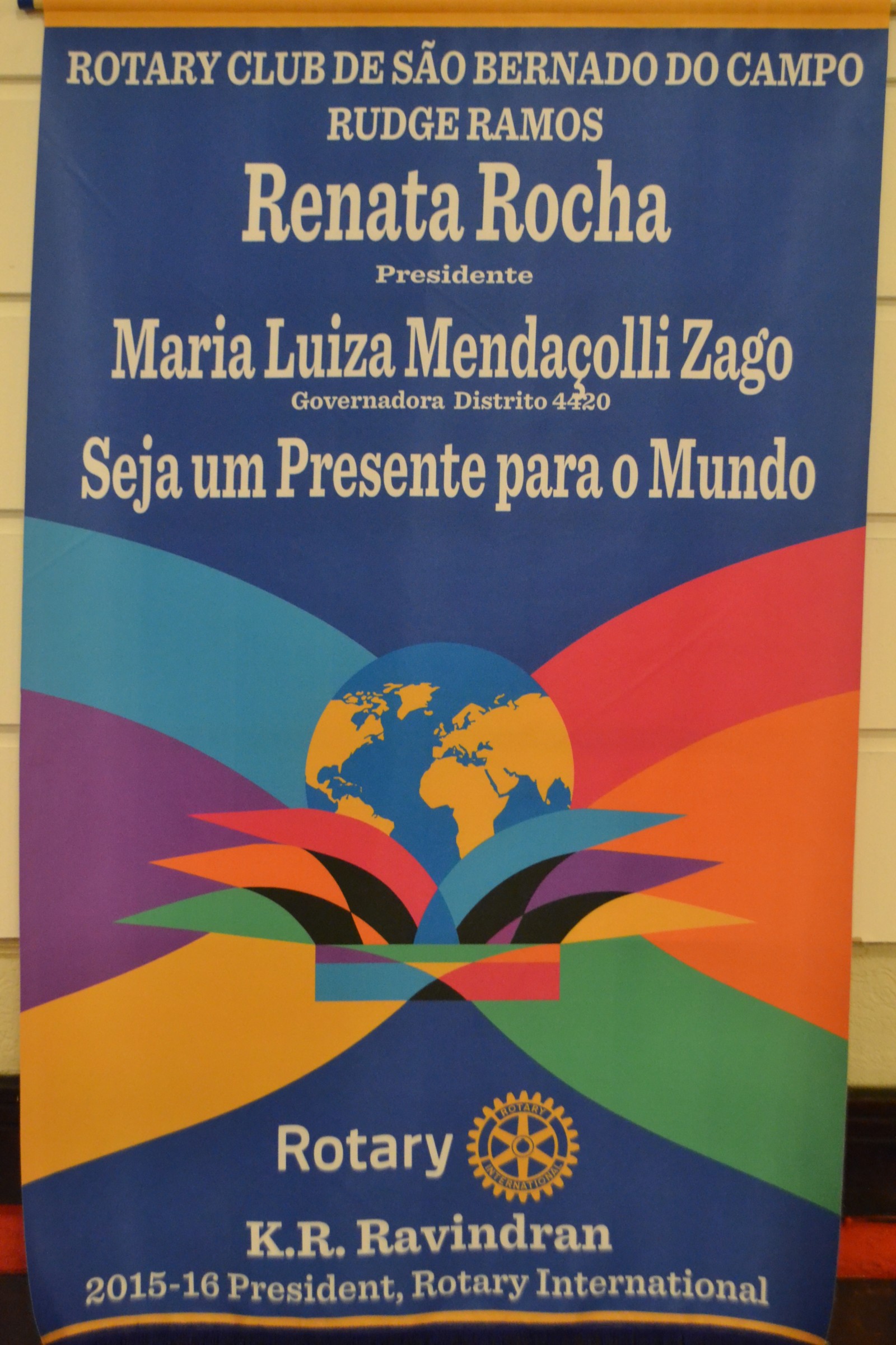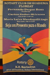Ela também parabenizou os presidentes brilhantes, confiante no trabalho de todos que, com certeza, servirão de inspiração para os novos presidentes, que serão um presente para o mundo, como diz o lema rotário 2015-2016, Seja um Presente para o Mundo.