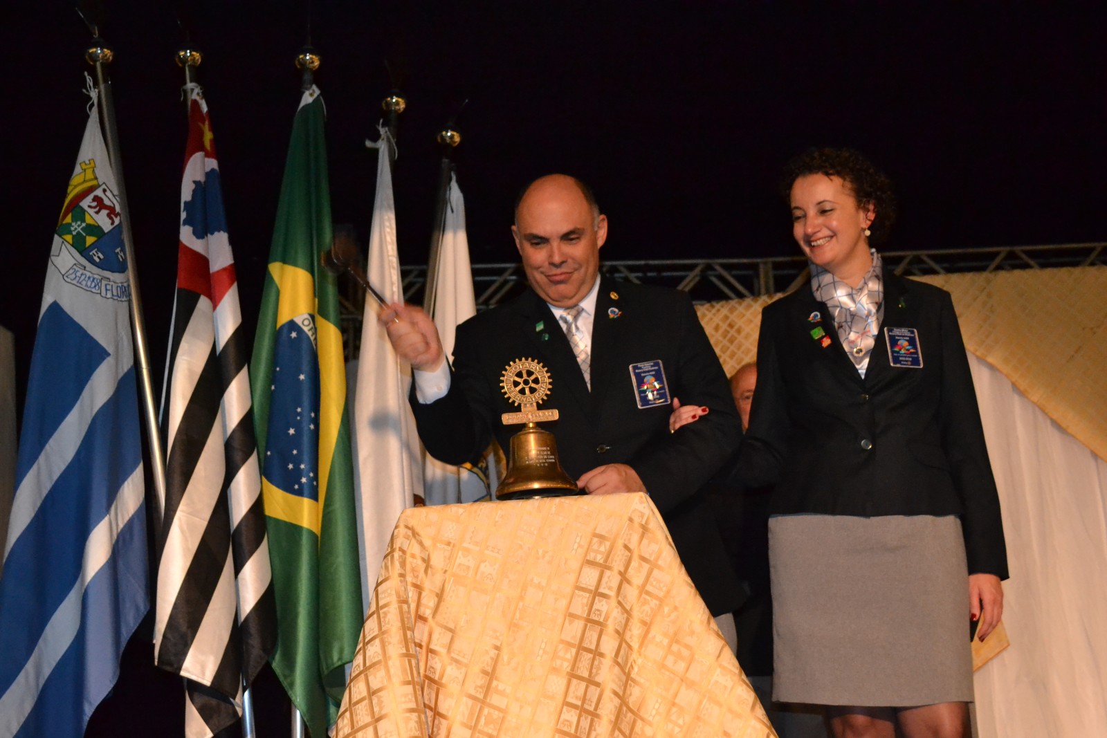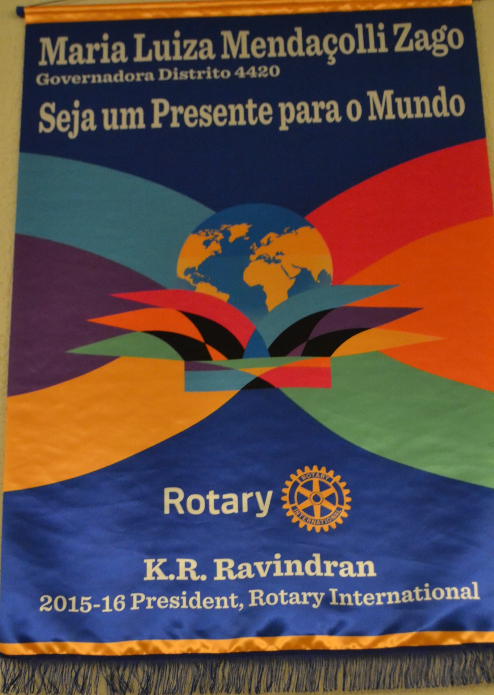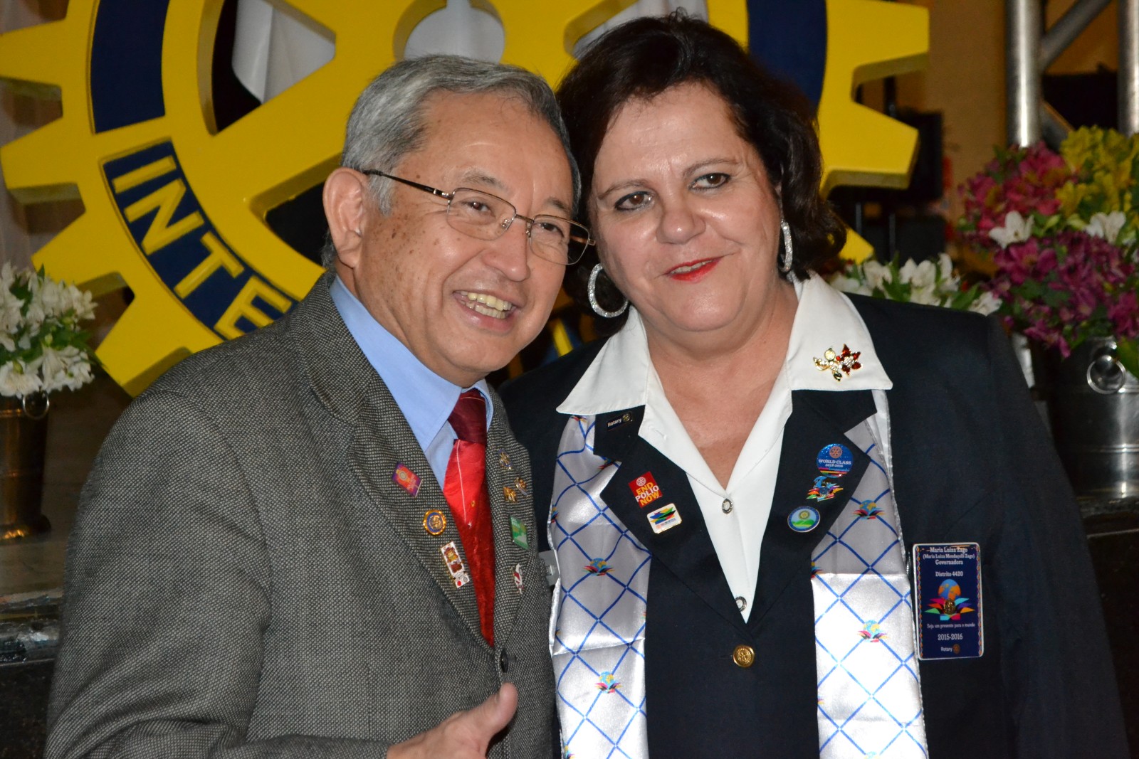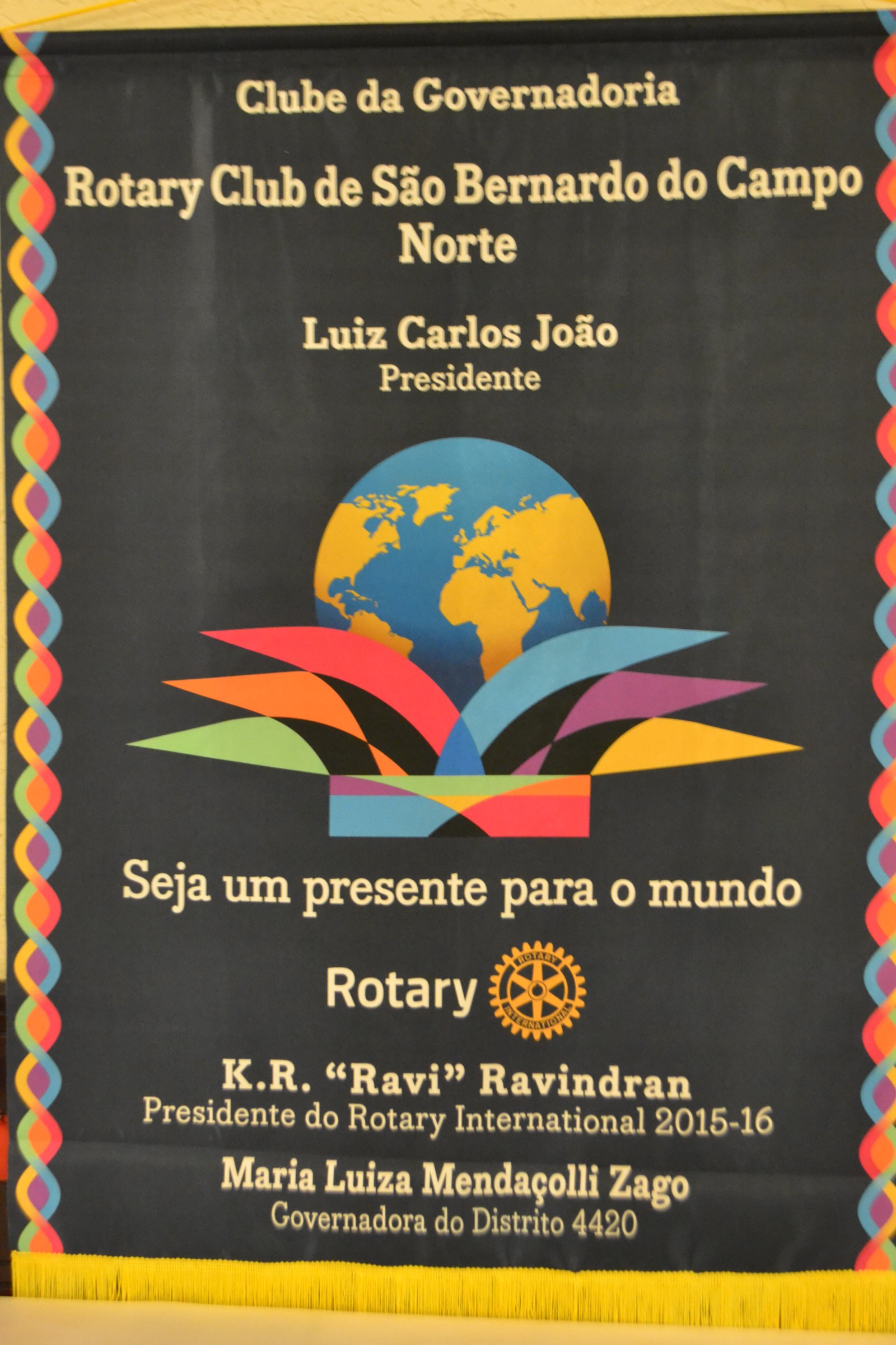 Ela também parabenizou os presidentes brilhantes, confiante no trabalho de todos que, com certeza, servirão de inspiração para os novos presidentes, que serão um presente para o mundo, como diz o lema rotário 2015-2016, Seja um Presente para o Mundo.