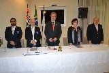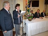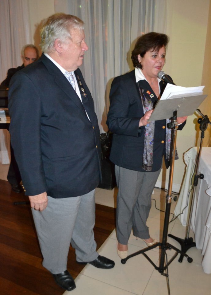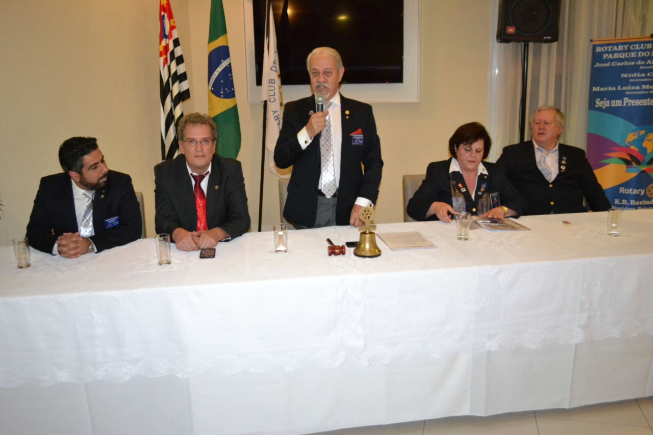 Contou um pouco de sua vida rotária e aceitou a presidência como honrosa deferência, mas, principalmente como um desafio. Fazer parte do Rotary nos traz uma satisfação pessoal, mas acima de tudo, a responsabilidade de contar com o apoio dos demais companheiros, para juntos podermos servir mais e melhor a comunidade onde atuamos, que tanto precisam desse apoio. Agradeço a minha família, especialmente à Maria Helena, minha esposa, que me acompanha com muita alegria, concluiu.