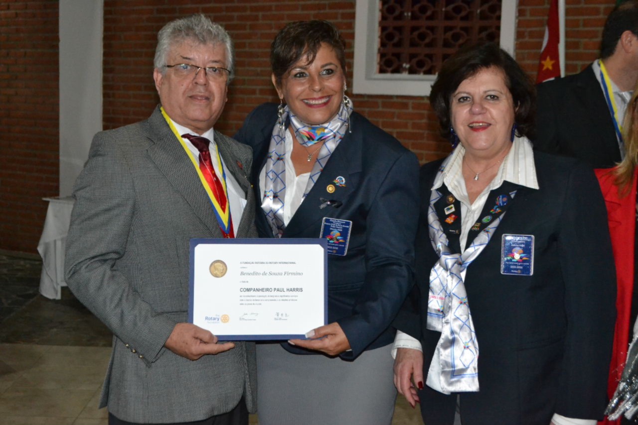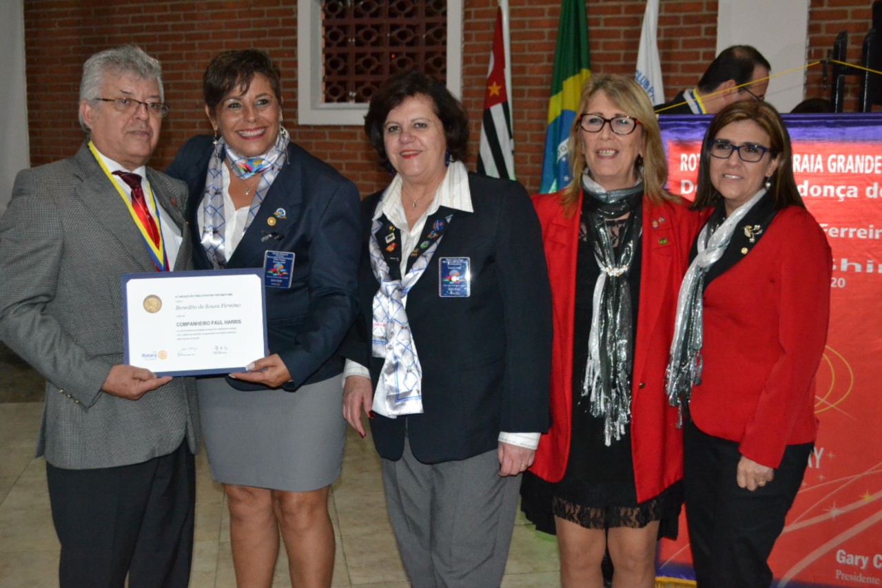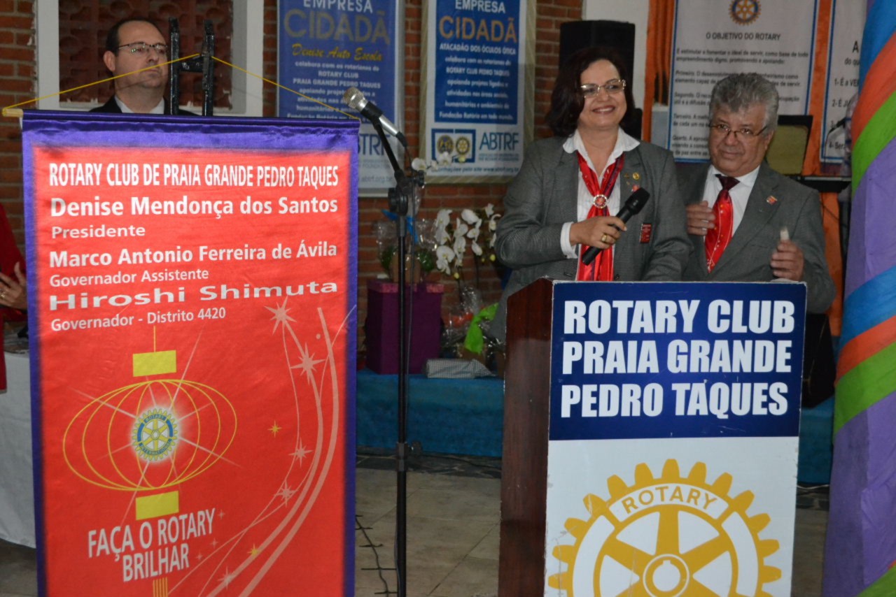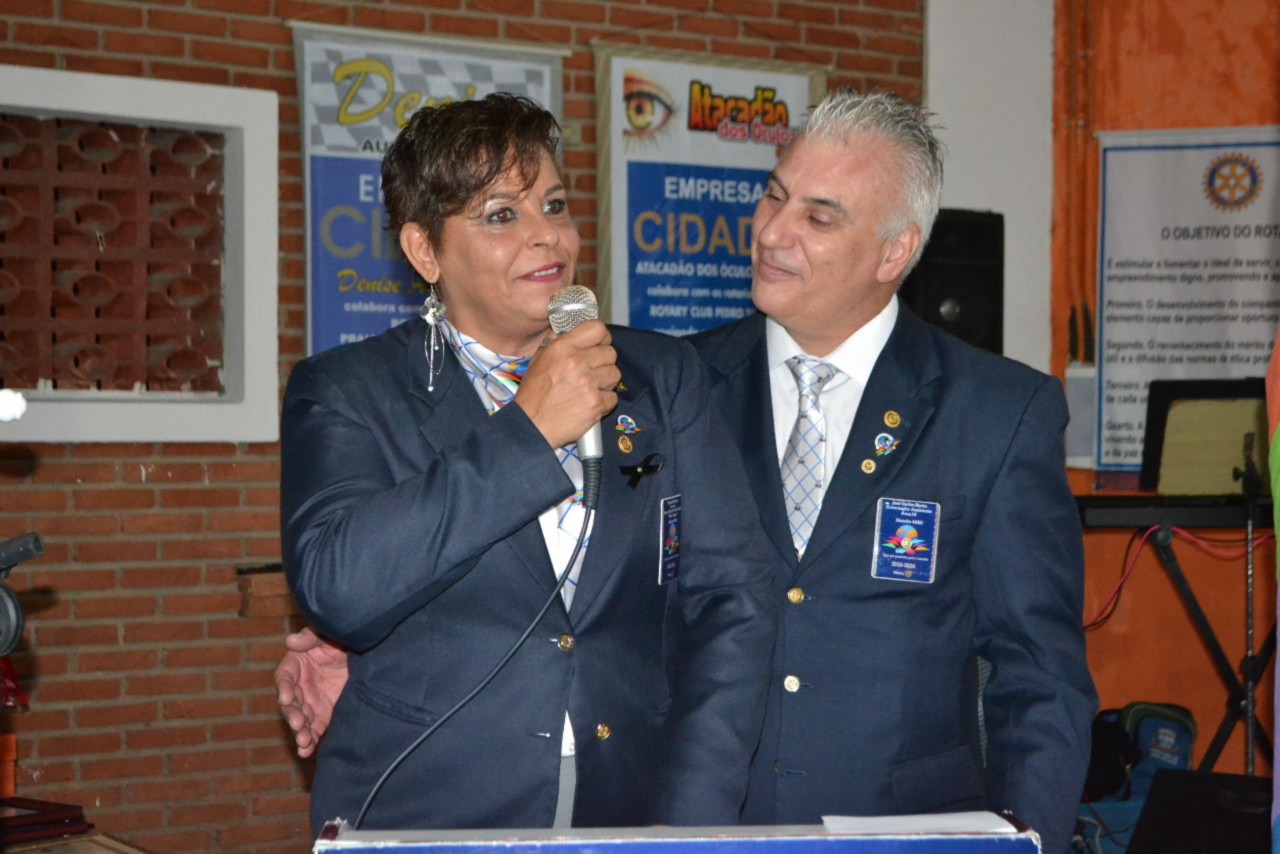 O casal presidente brilhante Denise Mendonça dos Santos e Benedito, agradeceram pela oportunidade de conduzir o clube fazendo o Rotary brilhar. Ela agradeceu aos familiares, aos companheiros que contribuíram com os projetos realizados durante sua gestão e aproveitou a ocasião para fazer a outorga de títulos Paul Harris aos companheiros que se destacaram.