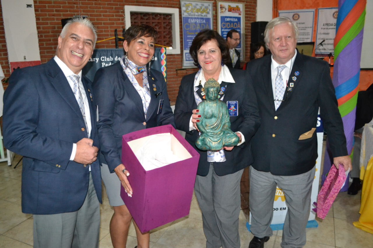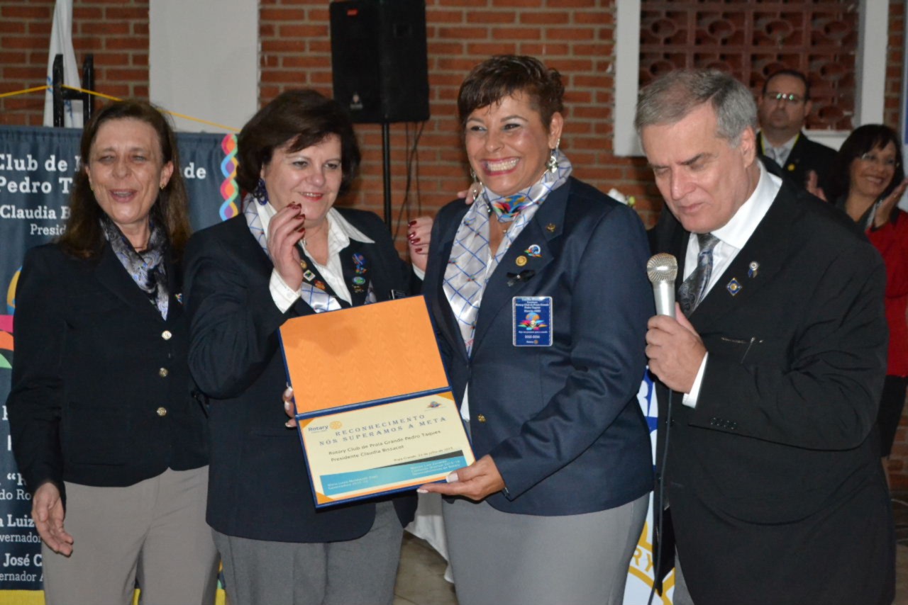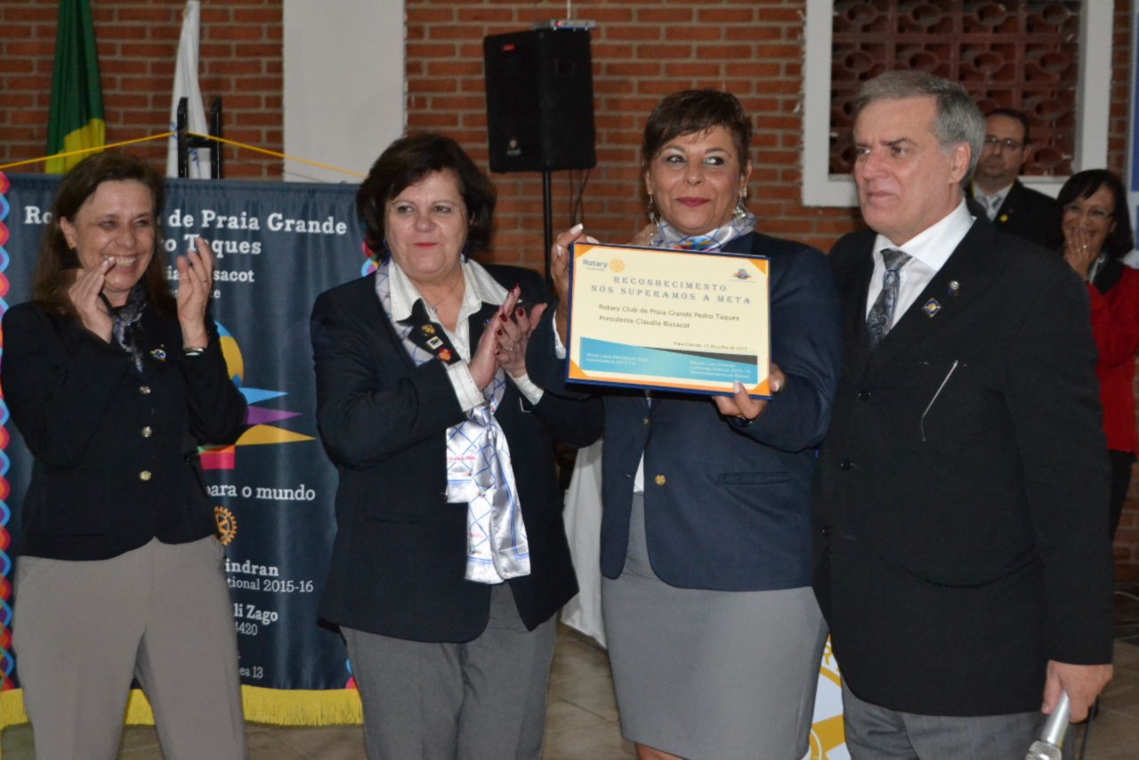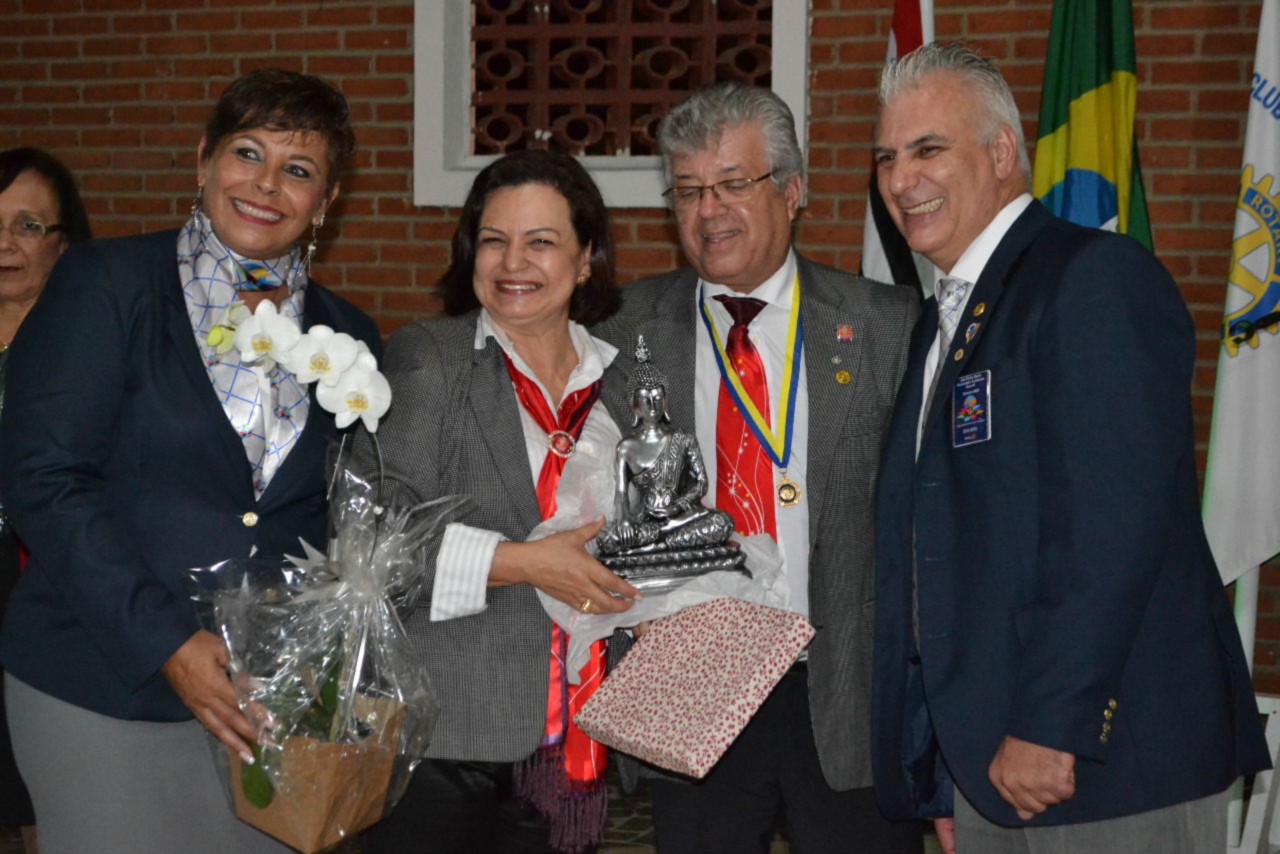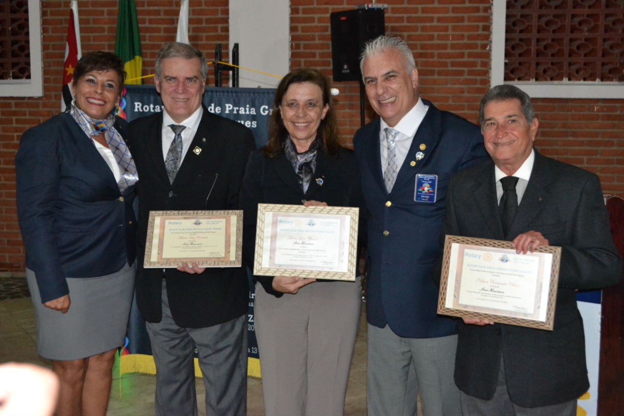 A posse de quatro novos sócios foi o destaque da noite festiva que viu os novos companheiros Rosangela, Sergio, Valter, Edna e Luiz Antonio, serem oficialmente empossados pelas autoridades rotárias e seus padrinhos. Esse ato também permitiu ao clube alcançar a meta proposta pelo DQA, EGD Marcos Zanardo, que entregou à presidente Cláudia, o certificado que reconhece seus esforços para aumentar o quadro associativo, já no início da gestão presente.