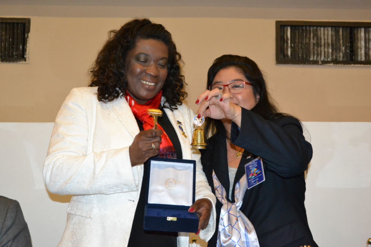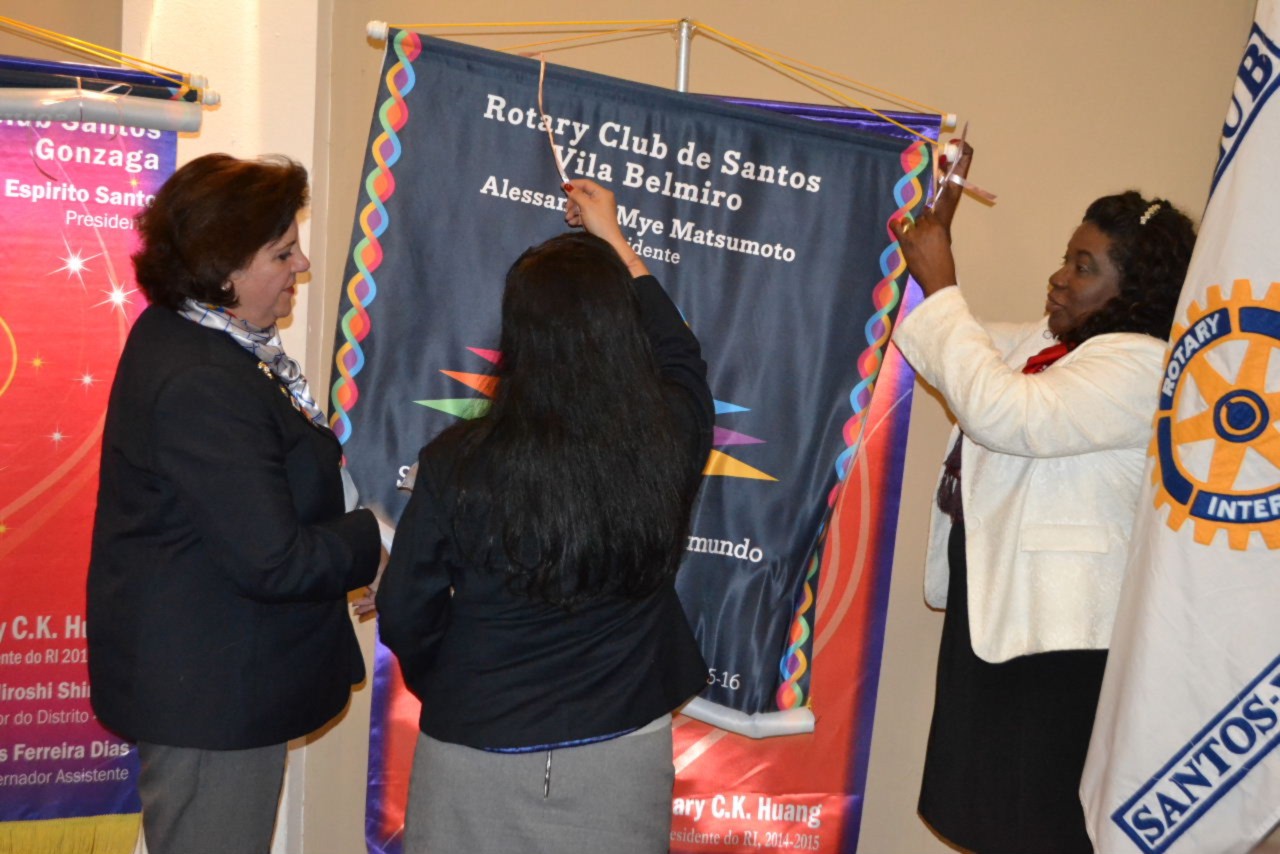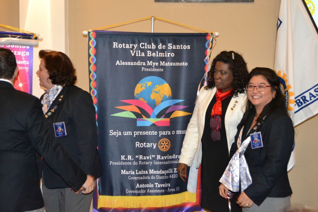 A presidente brilhante do RC Santos Vila Belmiro, Iracema M. C. de Aguiar Meneses se despediu da gestão brilhante, agradecendo aos companheiros pelo apoio recebido e por todo companheirismo dedicado ao objetivo de fazer o Rotary brilhar. Ela deu posse à companheira Alessandra Mie Matsumoto que, ao lado de seu esposo Paulo, também agradeceu aos companheiros pela indicação e aos familiares presentes, pelo apoio para seguir a frente do ano rotário presente.