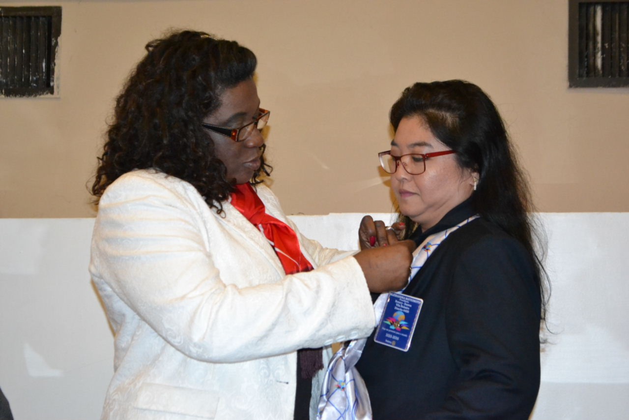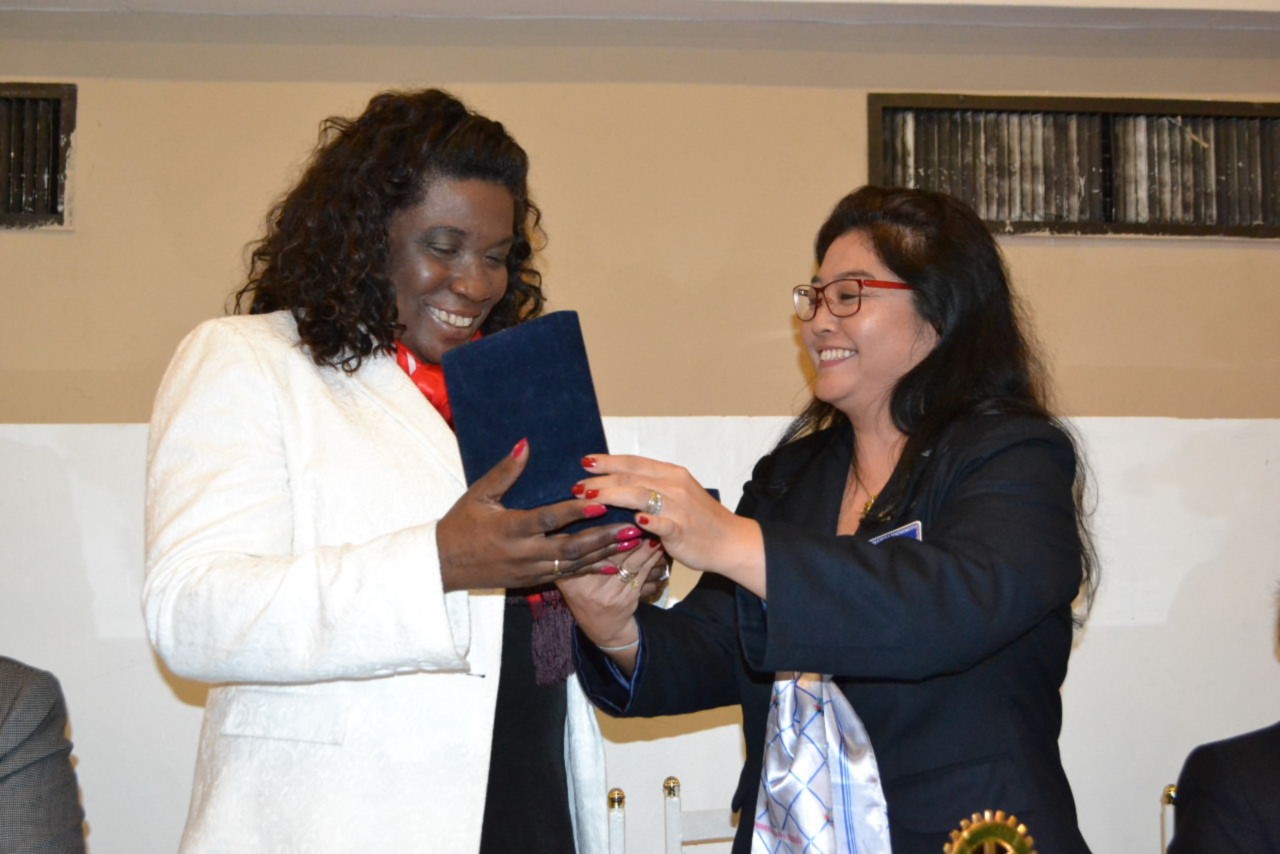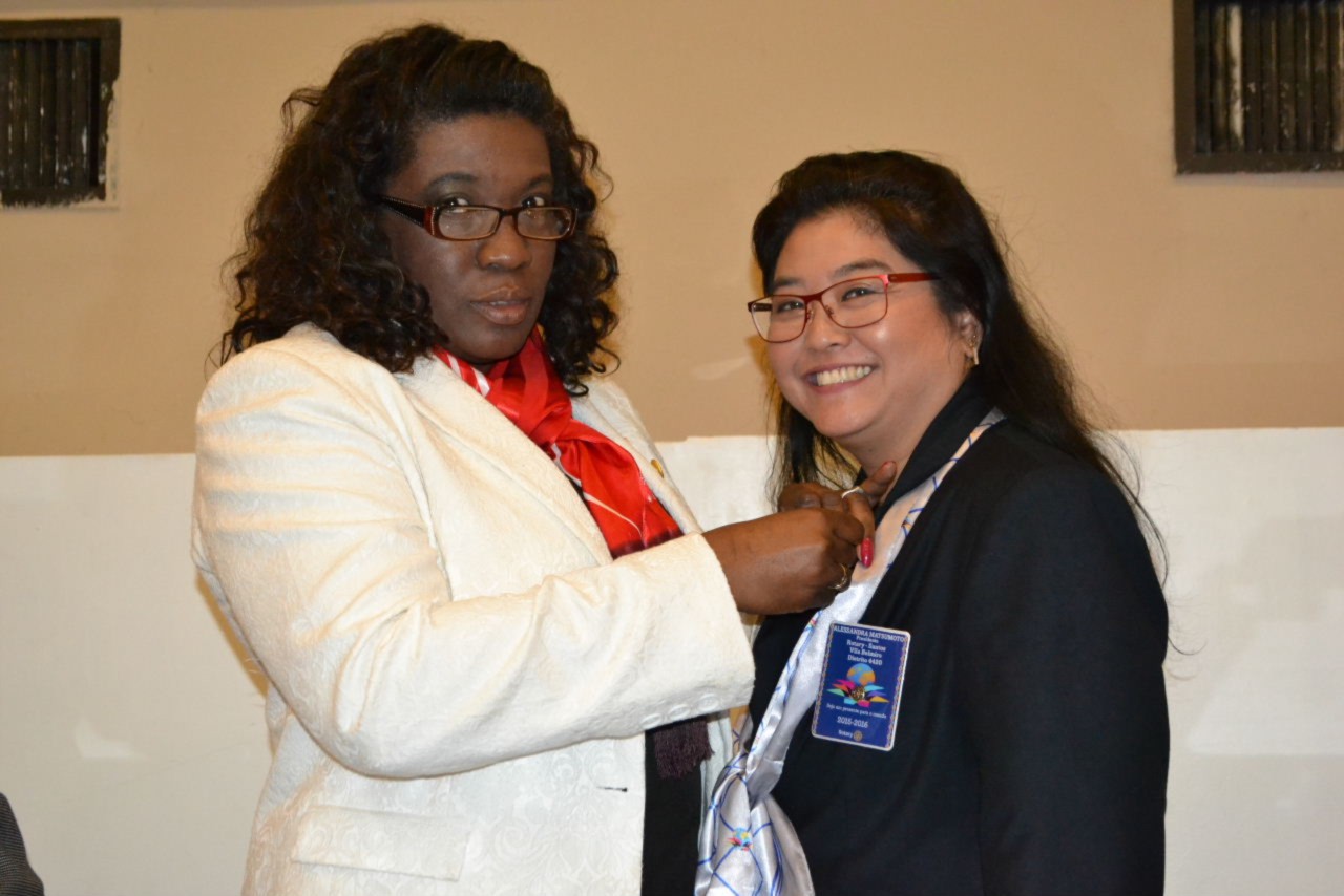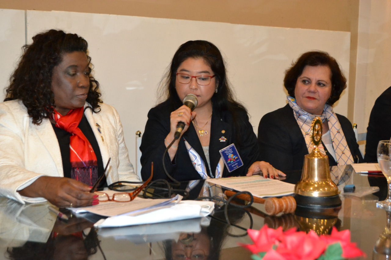 A presidente brilhante do RC Santos Vila Belmiro, Iracema M. C. de Aguiar Meneses se despediu da gestão brilhante, agradecendo aos companheiros pelo apoio recebido e por todo companheirismo dedicado ao objetivo de fazer o Rotary brilhar. Ela deu posse à companheira Alessandra Mie Matsumoto que, ao lado de seu esposo Paulo, também agradeceu aos companheiros pela indicação e aos familiares presentes, pelo apoio para seguir a frente do ano rotário presente.