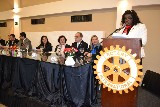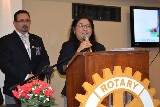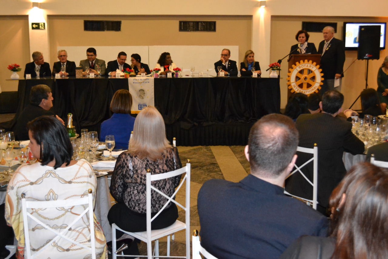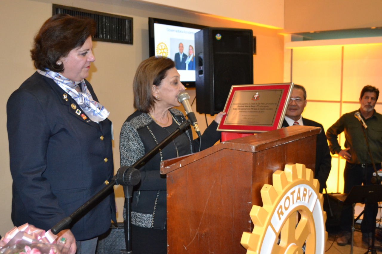 A governadora agradeceu pela homenagem e aproveitou para deixar sua mensagem, parabenizando ambos os presidentes dos clubes rotários, pelas significativas ações que tem elevado o nome do Rotary e do Distrito 4420, junto às comunidades. Ela falou da importância de servir, trabalhando pelas causas humanitárias e para que todos possam se manter unidos pela principal causa defendida pelo Rotary Internacional que é a erradicação da Pólio no mundo, conquista essa que vai se concretizando cada vez mais no cenário mundial.