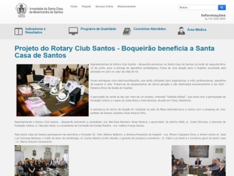 A Santa Casa de Santos destacou em seu site na internet o projeto realizado pelo Rotary Club de Santos Boqueirão.