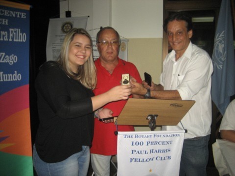 A jovem Gabrielle S. Feliciano dos Santos irá nos representar na cidade de Puebla no Distrito 4185 e recebeu das mão dos presidente Adélio algumas recordações de nosso clube para serem entregues