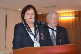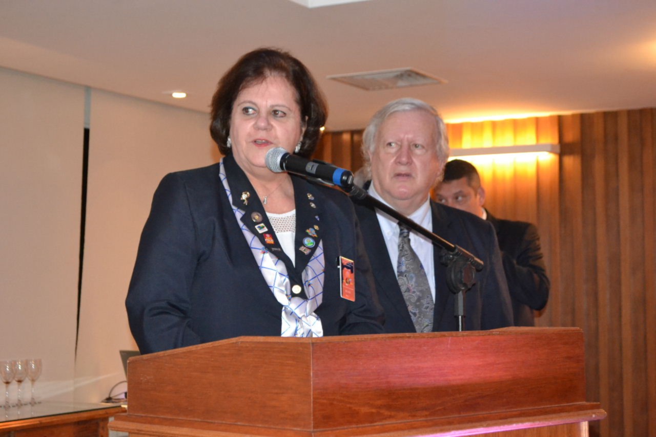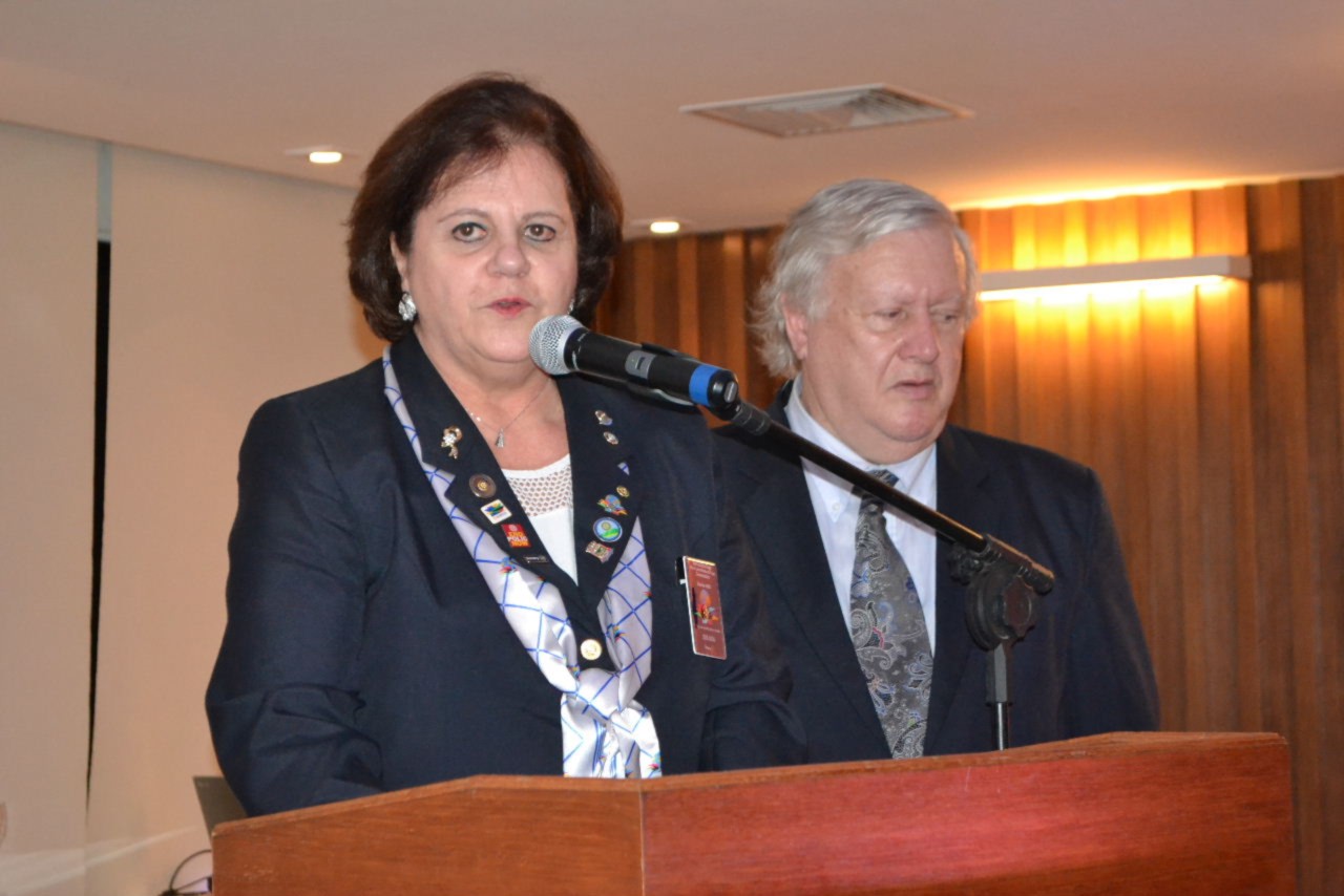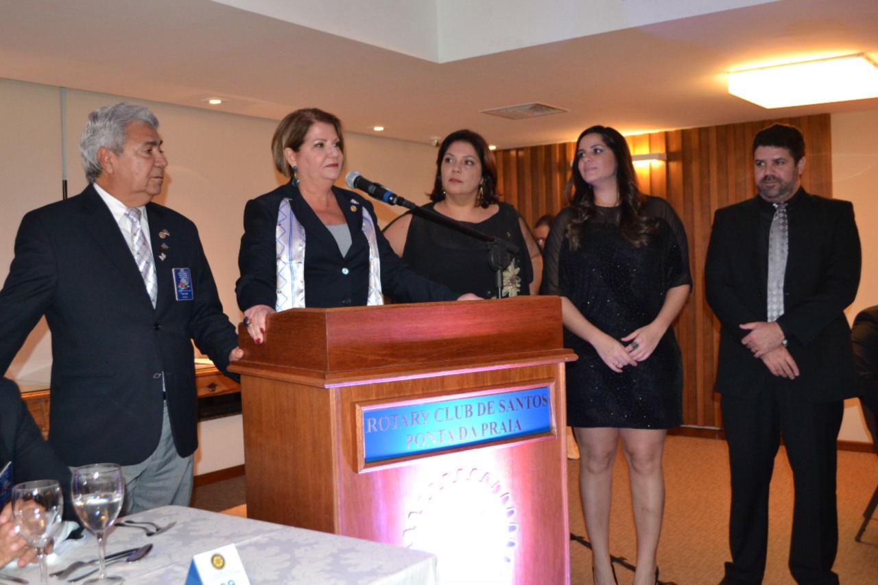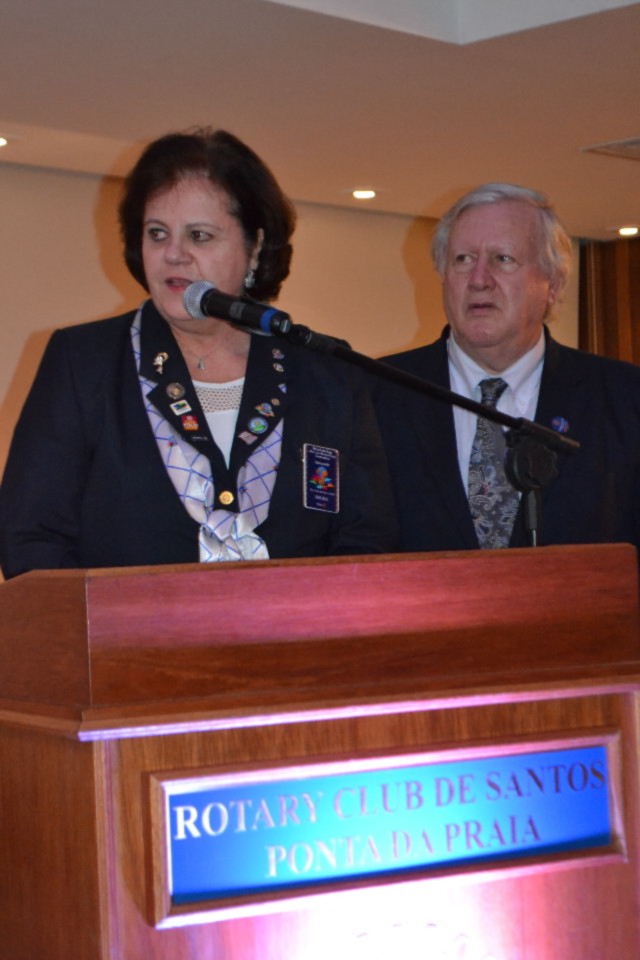 Em seu pronunciamento, a governadora Maria Luíza Mendaçolli Zago, ladeada por Cláudio, seu esposo, destacou a importância do presidente Lobo seguir o lema rotário Seja um Presente para o Mundo, durante a gestão que se inicia, a qual ela acredita, terá muito sucesso ao realizar sensíveis mudanças na vida das comunidades assistidas pelos rotarianos do RC Santos Ponta da Praia.