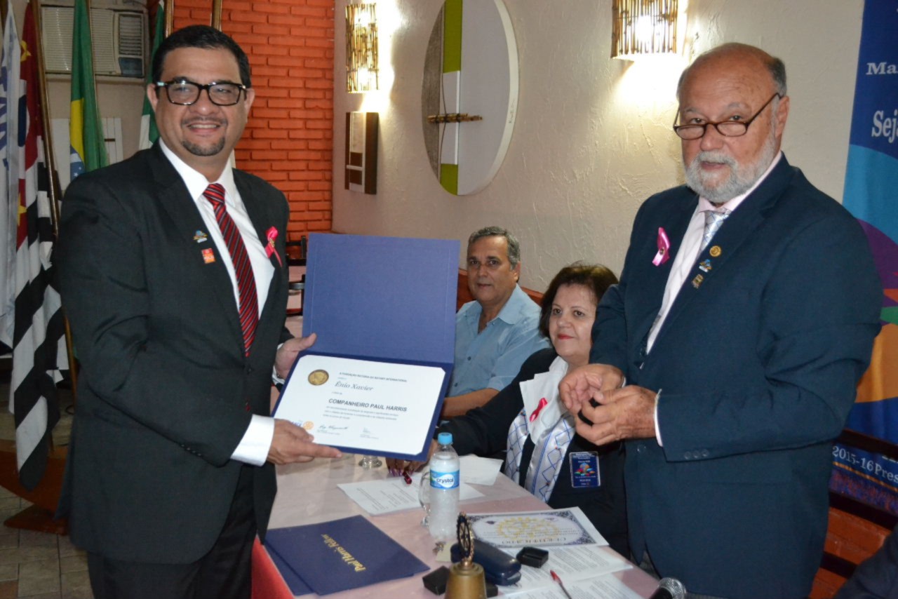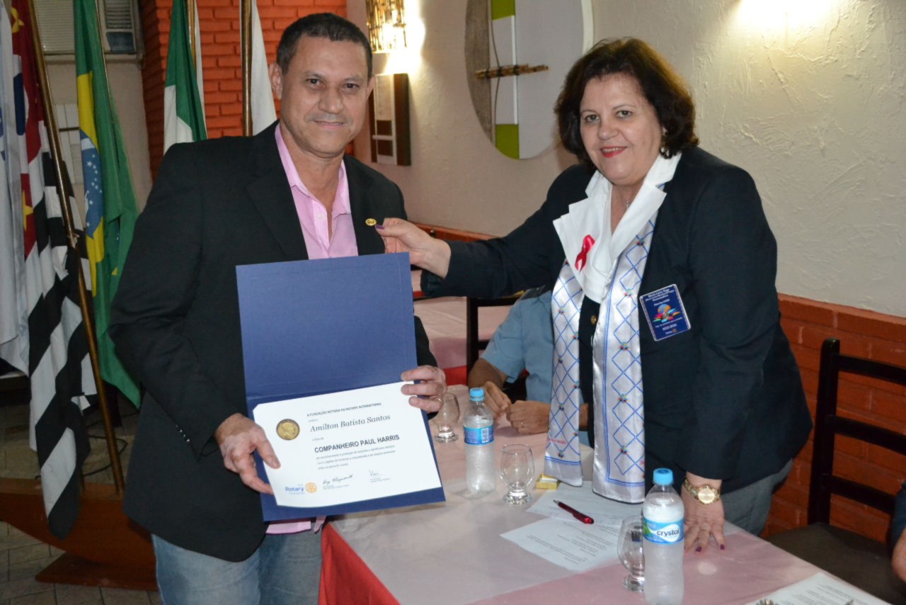 Os companheiros Jair Braz e Enio Xavier receberam seus Títulos Paul Harris e Amilton Batista Santos, sua 1ª Safira. Foram empossados os companheiros Diogo e Fabrício, que receberam as boas vindas da governadora Maria Luíza e dos companheiros.