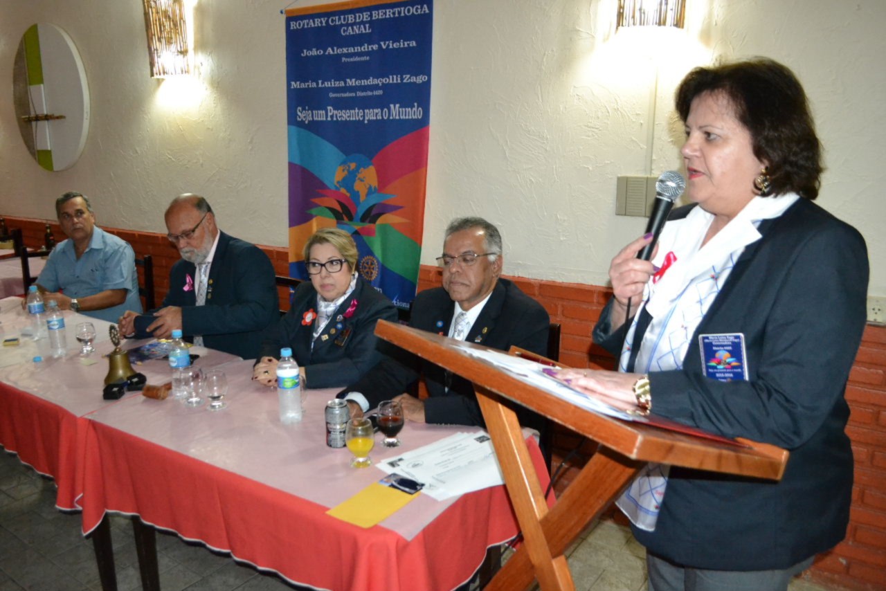 A governadora Maria Luíza parabenizou o clube pelas ações desenvolvidas e pela oportunidade de falar sobre Rotary para a comunidade, tendo como referência o RC Bertioga Canal e demais clubes de Rotary que tem transformado a vida de muitas pessoas através de seus projetos, ações beneficentes e envolvimento com as causas rotárias, como o combate a Pólio, principal objetivo de Rotary Internacional. A missão de ser um presente para o mundo é a meta deste ano rotário e Maria Luíza espera contar com os companheiros para alcança-la!