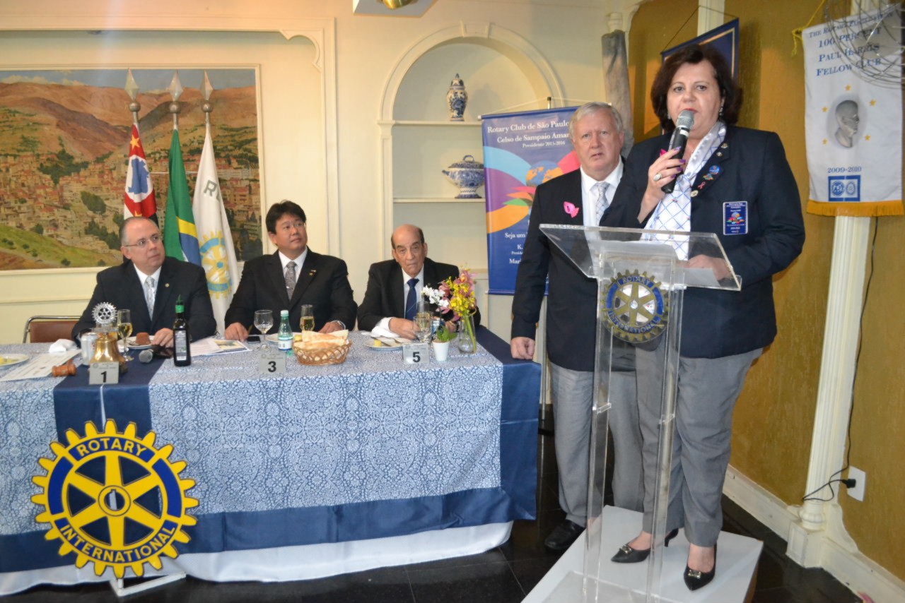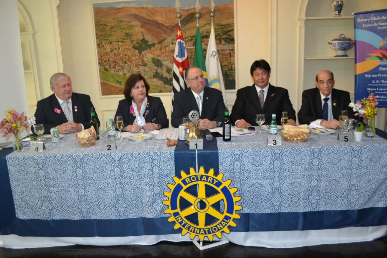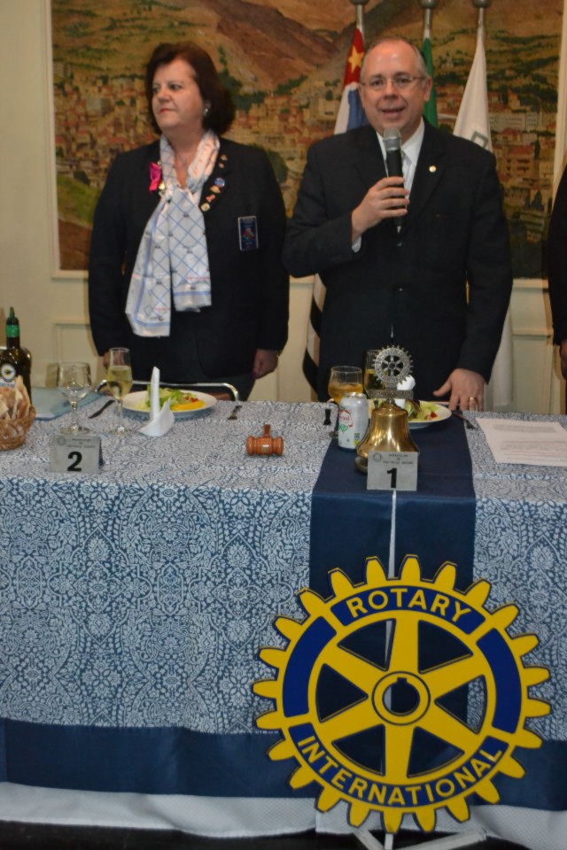 Em seu pronunciamento, o presidente agradeceu a presença do casal no clube e todos os convidados, entre eles o governador indicado Cláudio Takata, que compôs a mesa diretora. Celso falou da importância de mobilizar o clube para o trabalho voluntário, que deve ser feito para a comunidade. Ele ressaltou que, essa missão não é fácil para o presidente, mas acredita que está conseguindo agregar os companheiros para que esse trabalho e todos os projetos voltados para a comunidade, tenham êxito.