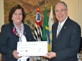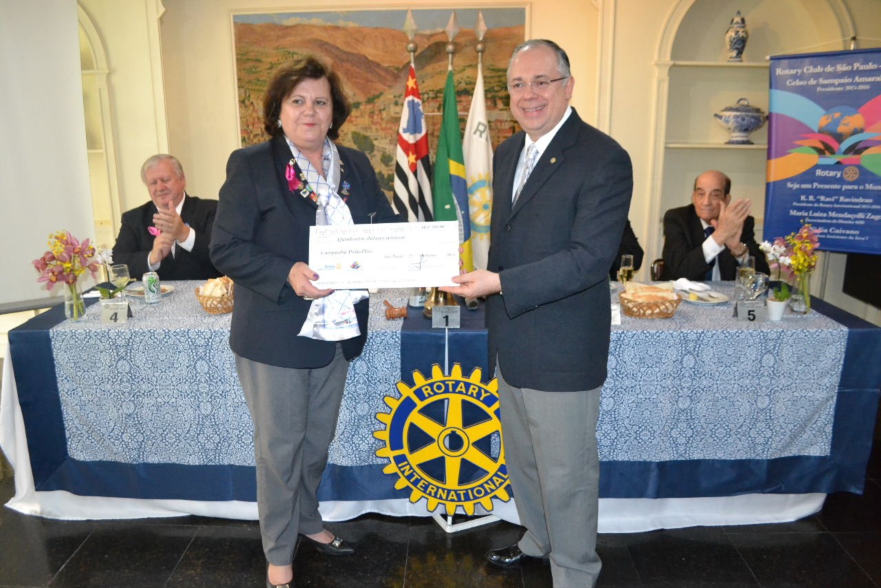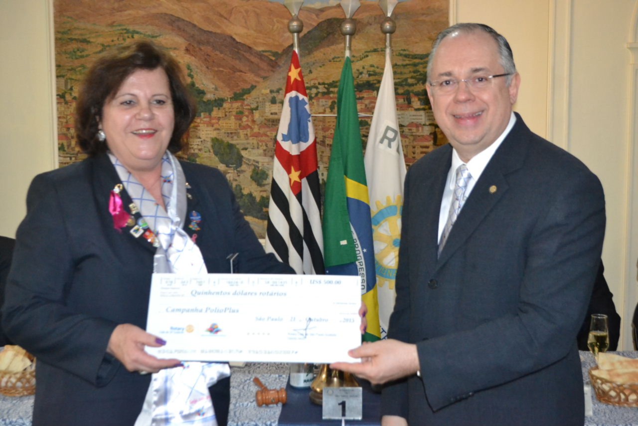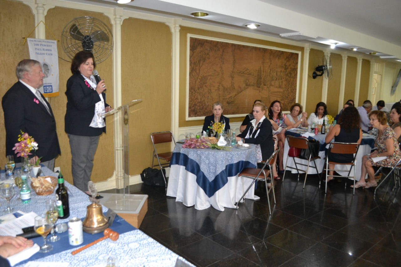 O almoço festivo promoveu momentos de companheirismo e homenagens, como a outorga do Título Paul Harris ao presidente Celso Sampaio, que dessa forma, contribui para o crescimento das ações conduzidas pela Fundação Rotária. Destaque para a doação de um cheque, feita pelo clube, no valor de US$500.00 para a Campanha Pólio Plus, entregue para a governadora.