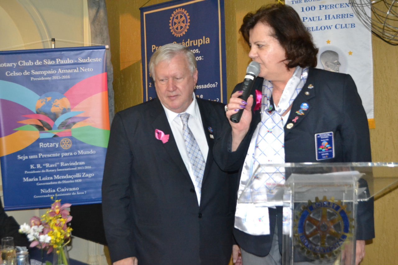 Mantendo a sequência de compromissos rotários, o casal governador Maria Luíza Mendaçolli Zago e Cláudio esteve em Visita Oficial ao Rotary Club de São Paulo Sudeste,realizada no Clube Zahle, onde o casal presidente presente Celso Sampaio do Amaral Neto e Terezinha os recepcionou, junto aos demais companheiros e convidados.