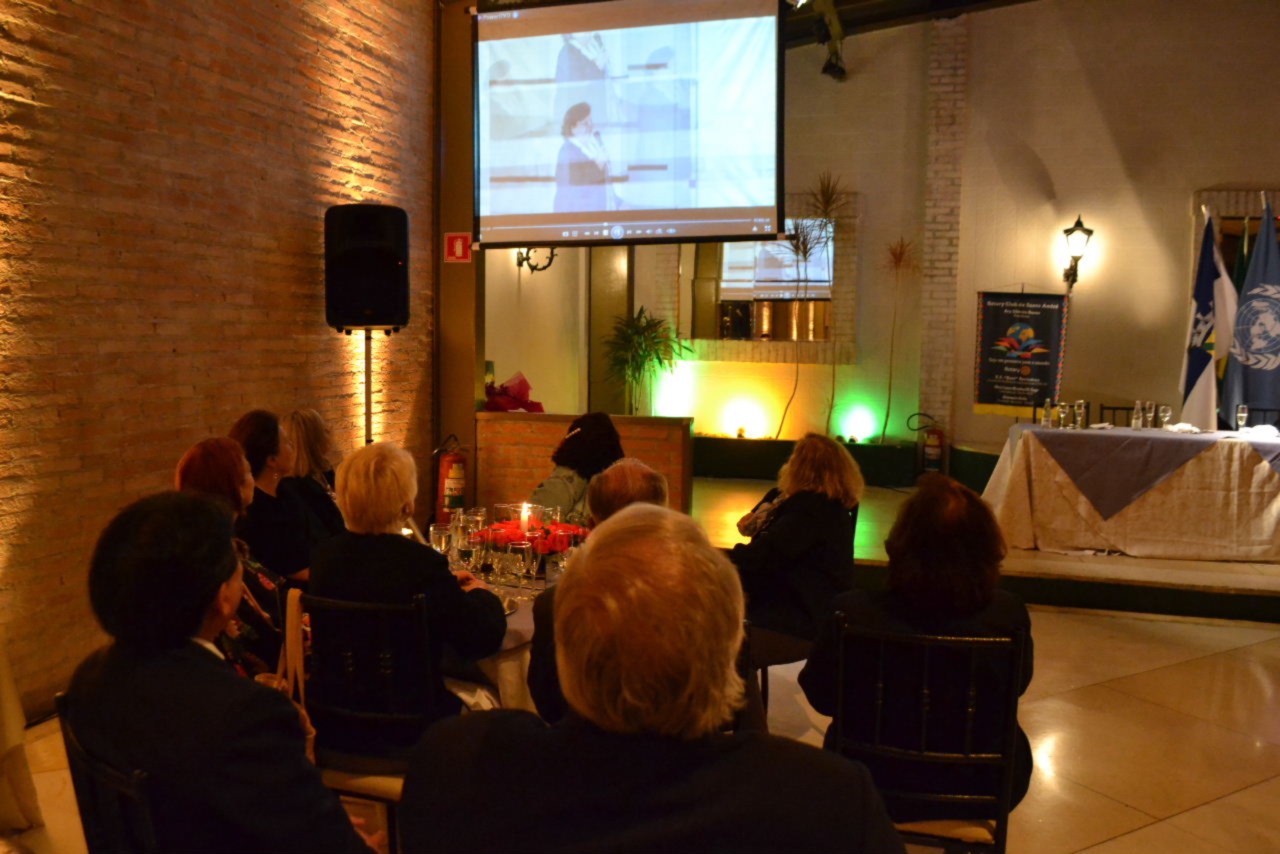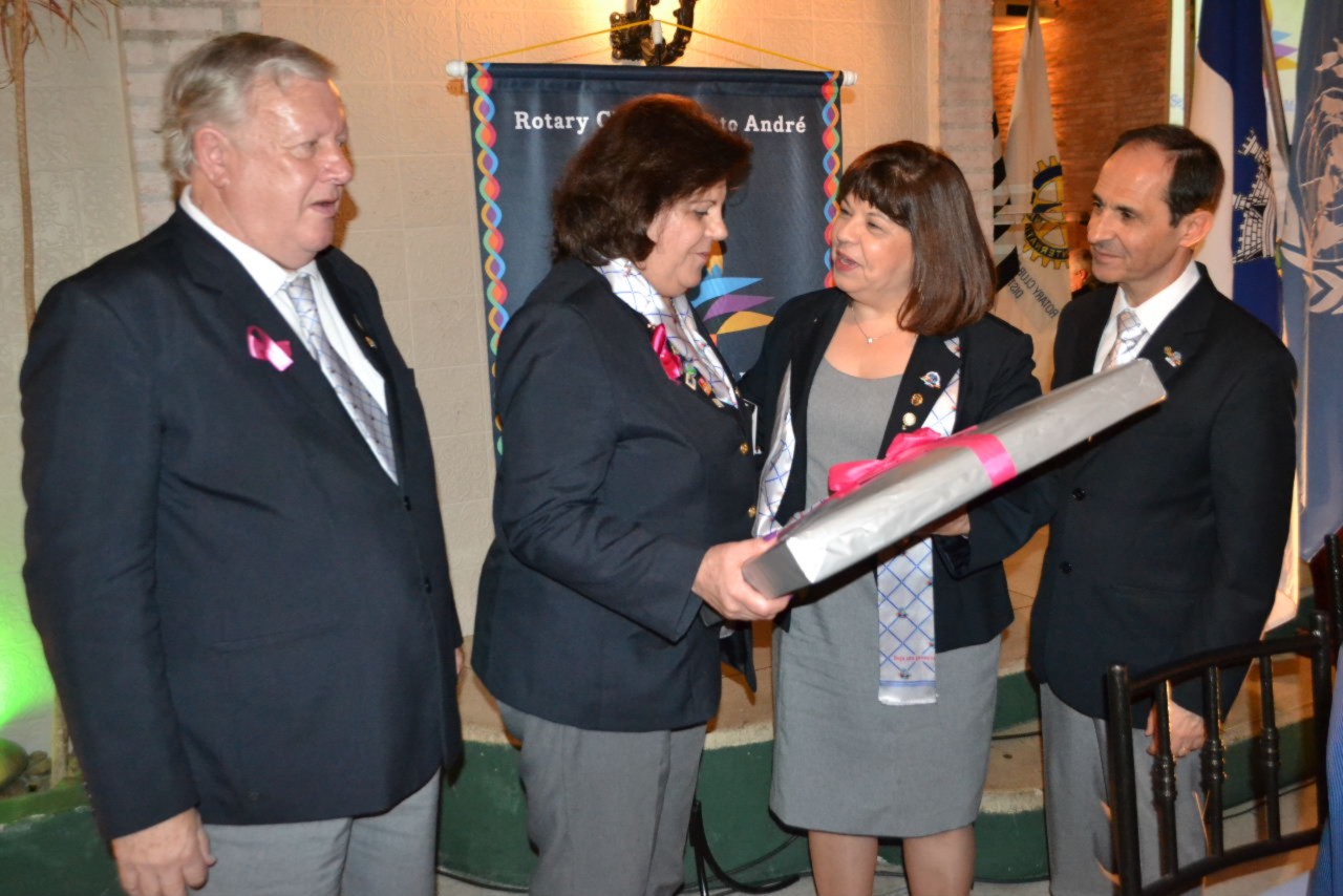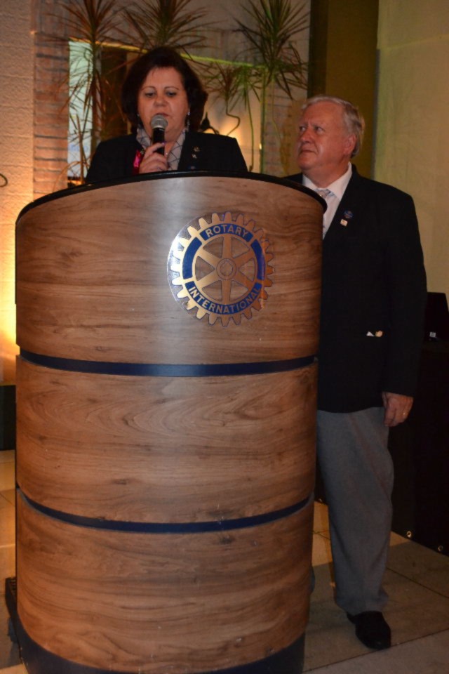 A posse da nova companheira Tatiana de Moura Guerschman foi o destaque da noite que se abrilhantou mais ainda, com a apresentação de um vídeo em homenagem à governadora presente, primeira mulher a assumir a governadoria do Distrito 4420.