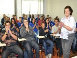Depois de conhecer toda a estrutura da casa, o casal governador esteve no Corpo de Patrulheiros Mirins de Santo André, onde estudantes participavam de aulas de capacitação para o mercado de trabalho. Maria Luíza fez questão de deixar sua mensagem de incentivo aos jovens, desejando muito sucesso em suas escolhas profissionais. Ainda na sede, a governadora se reuniu com as senhoras da ASFAR de Santo André, que ofereceram um chá ao companheiro Cláudio Zago, cônjuge da governadora que foi presenteada pelas asfarianas, com uma lembrança confeccionada por voluntárias que desenvolvem trabalhos artesanais no local.